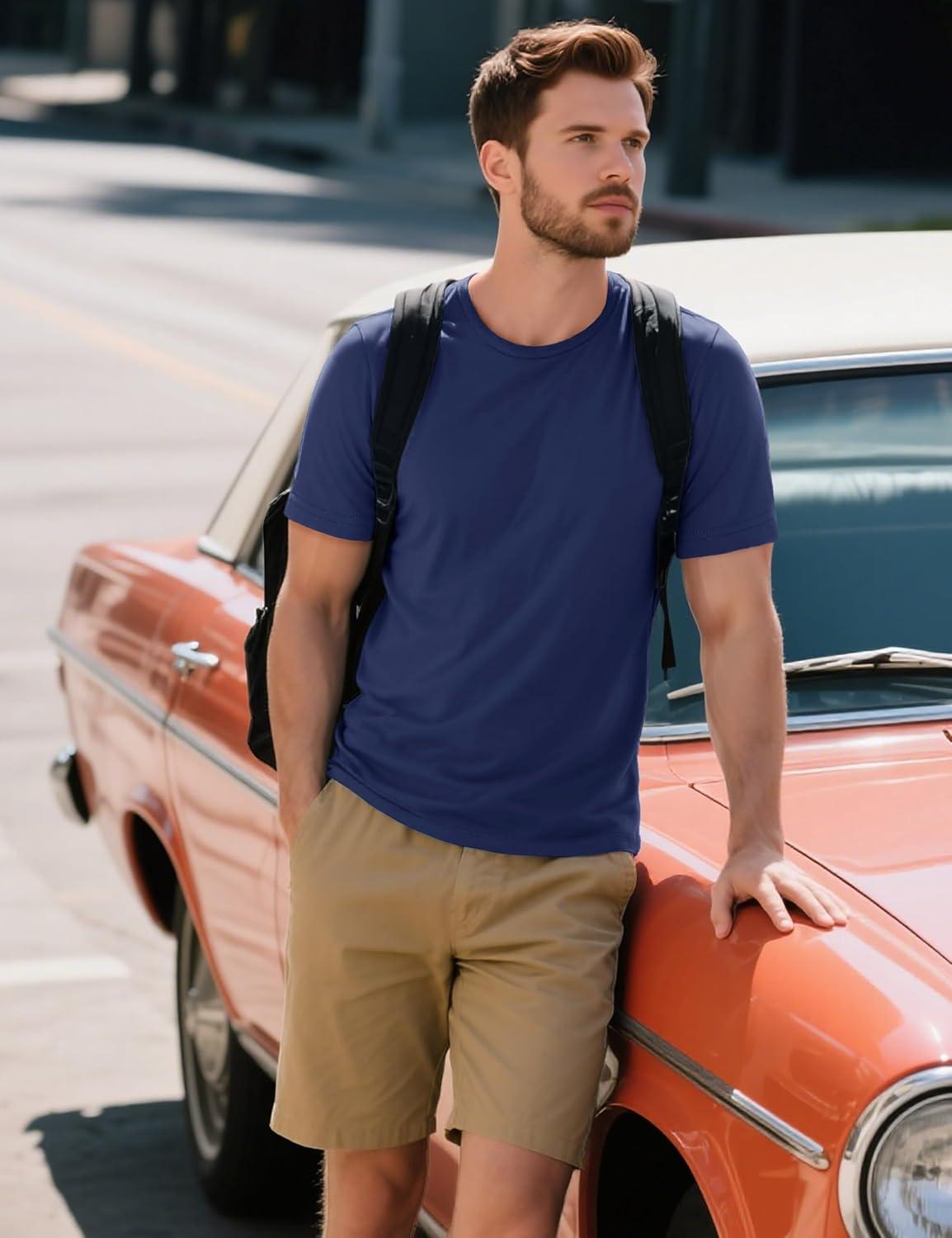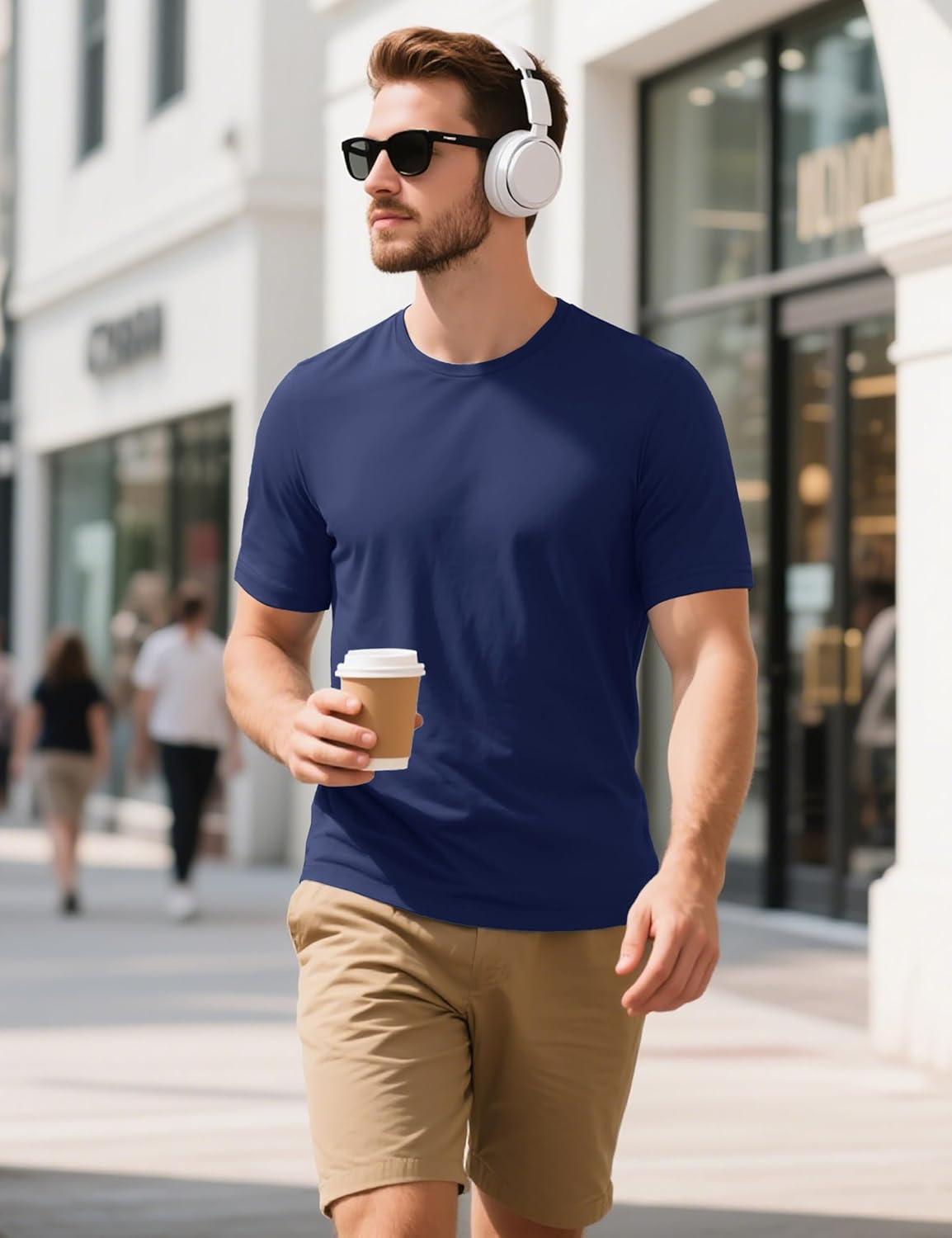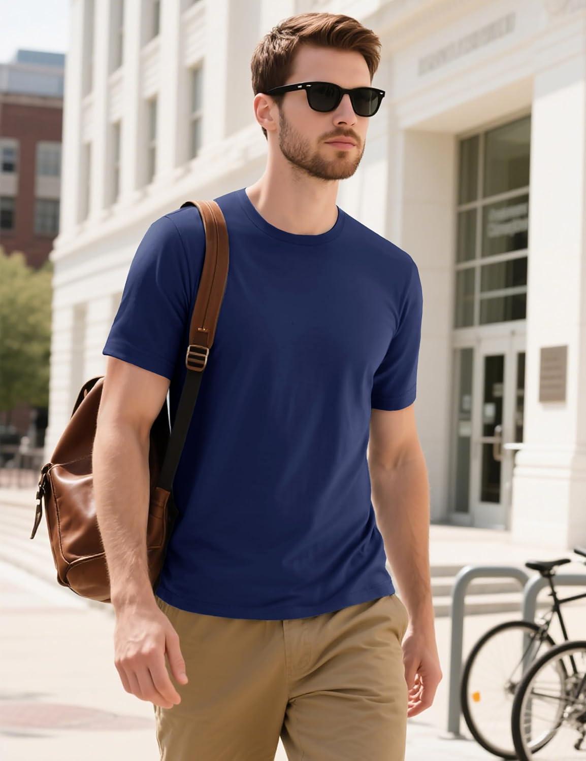 MAGCOMSEN Men’s T-Shirts Short Sleeve Cotton Crew Neck Soft Breathable T Shirts Casual Plain Classic Summer Tees(Navy)