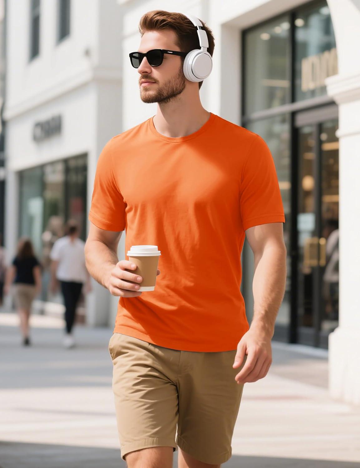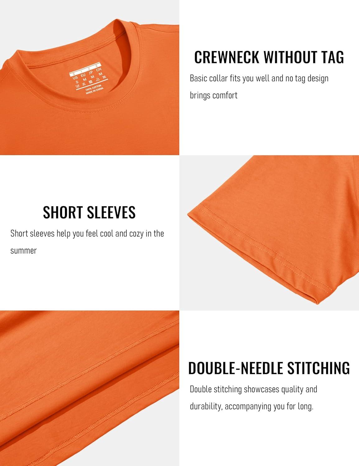 MAGCOMSEN Men’s T-Shirts Short Sleeve Cotton Crew Neck Soft Breathable T Shirts Casual Plain Classic Summer Tees(Orange)