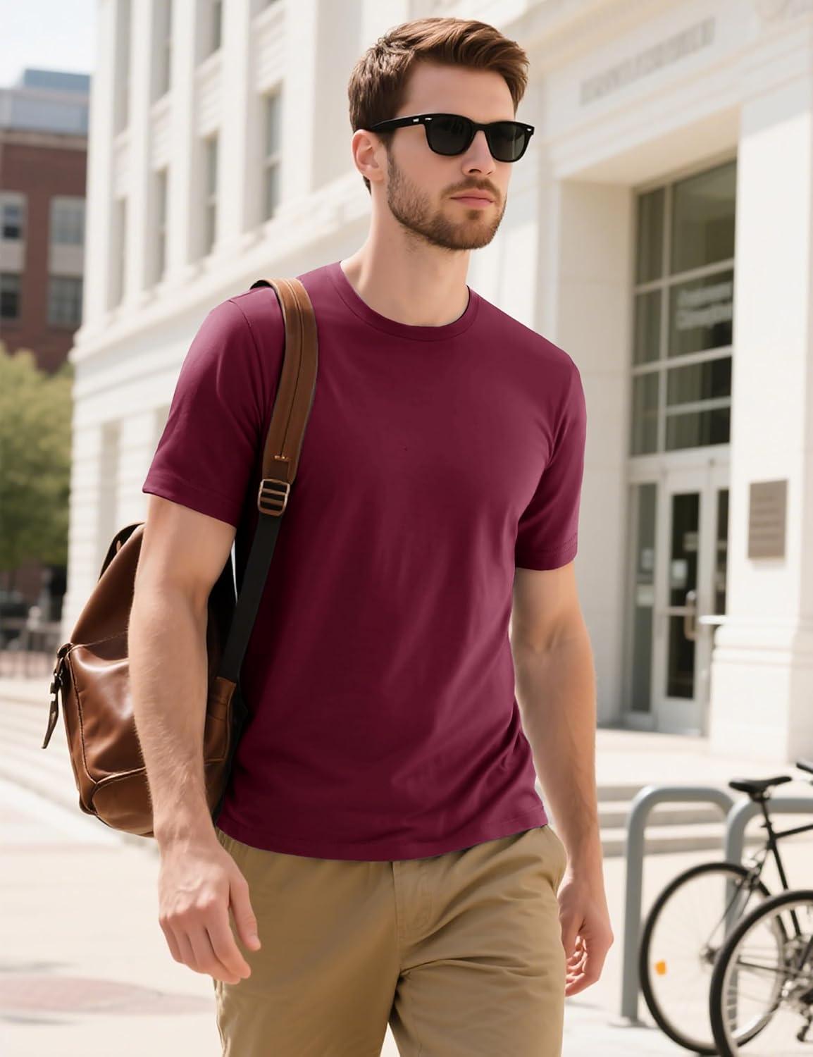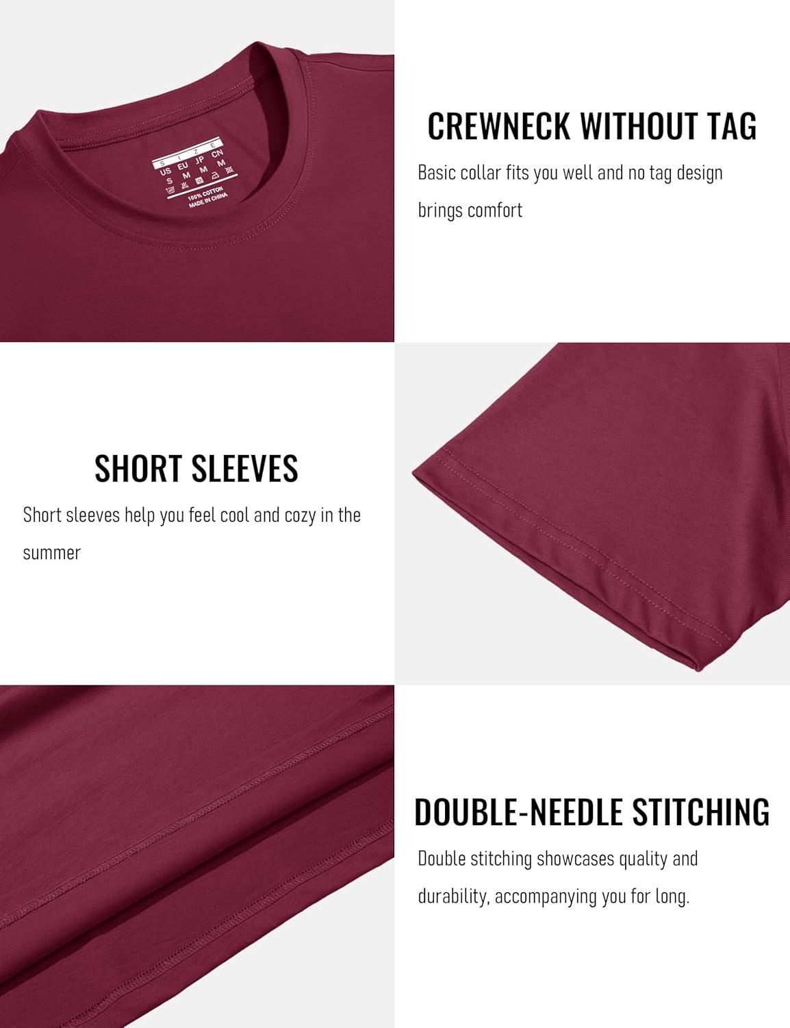 MAGCOMSEN Men’s T-Shirts Short Sleeve Cotton Crew Neck Soft Breathable T Shirts Casual Plain Classic Summer Tees(Wine Red)