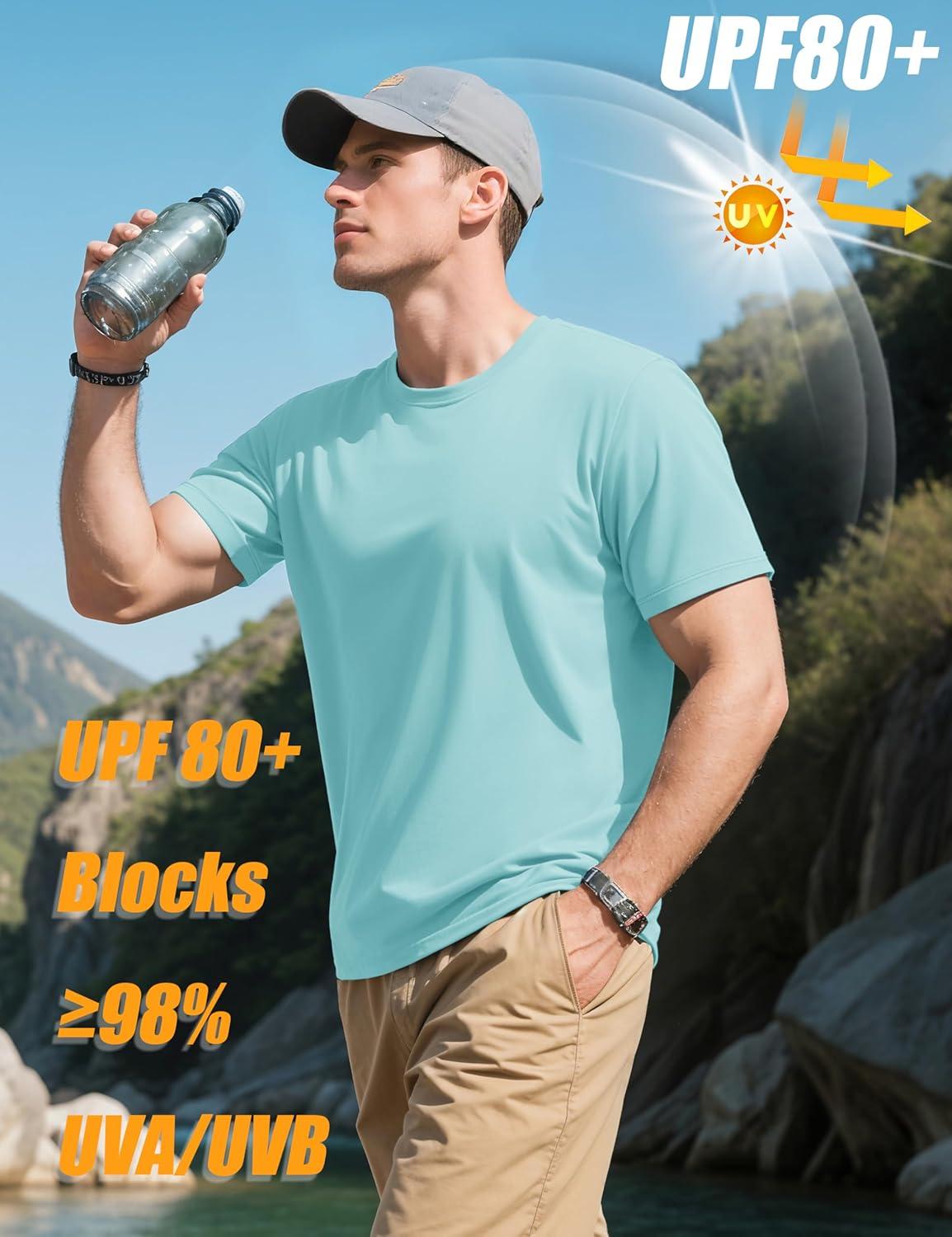 MAGCOMSEN Mens T-Shirts Short Sleeve UPF 80+ Sun Protection Lightweight Moisture Wicking Casual Crew Neck Basic Tees(Blue)