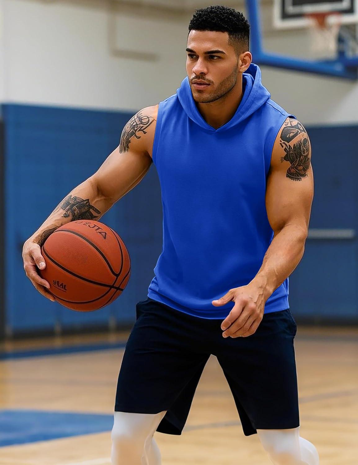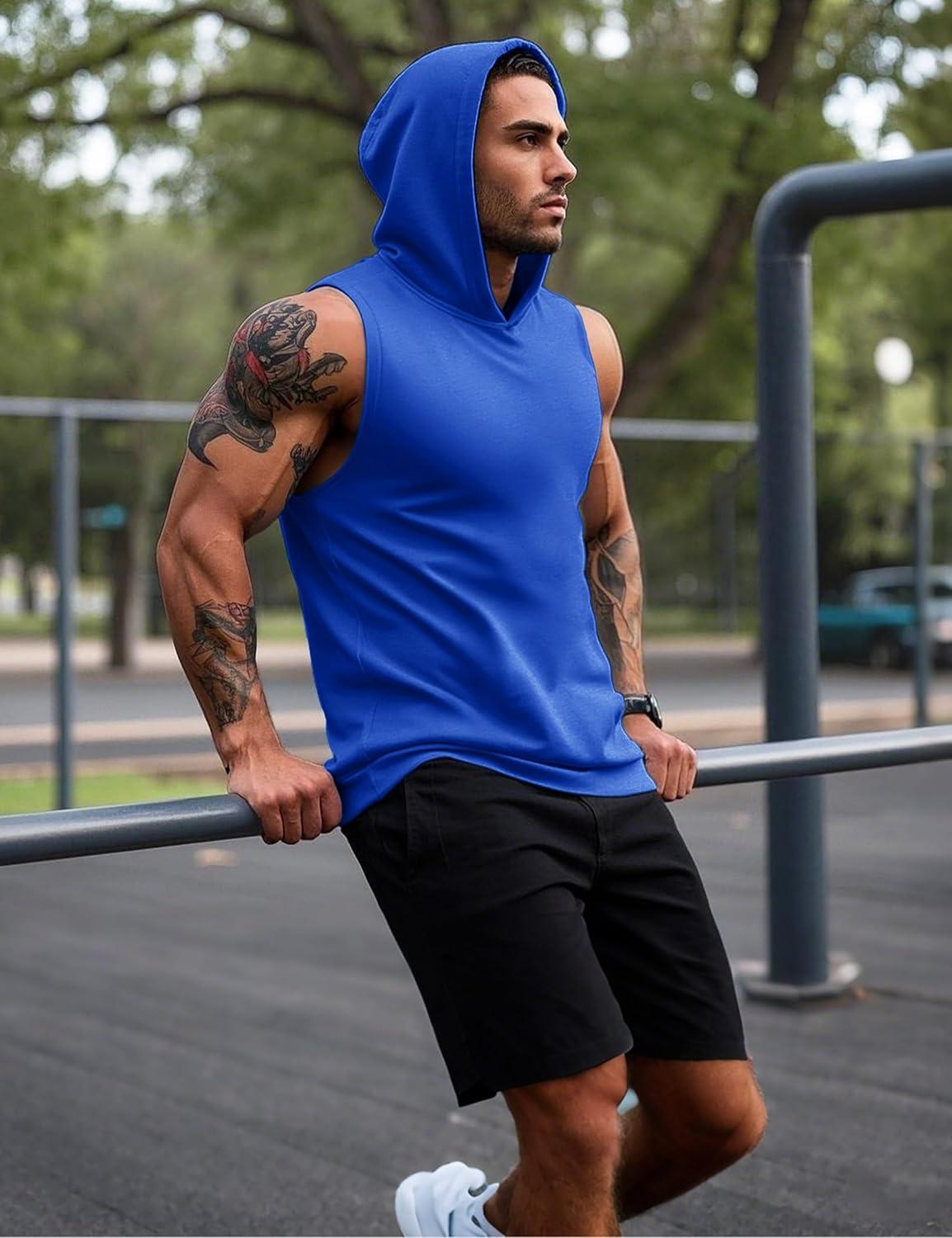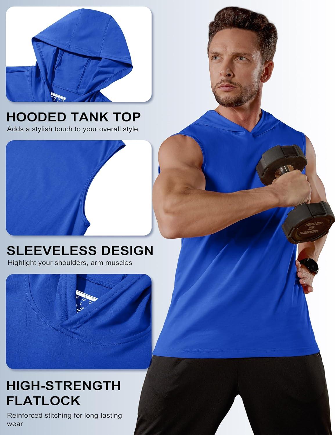 MAGCOMSEN Mens Tank Top Sleeveless Hoodie Cotton T-Shirt Summer Casual Shirt Muscle Tee(Color Blue)