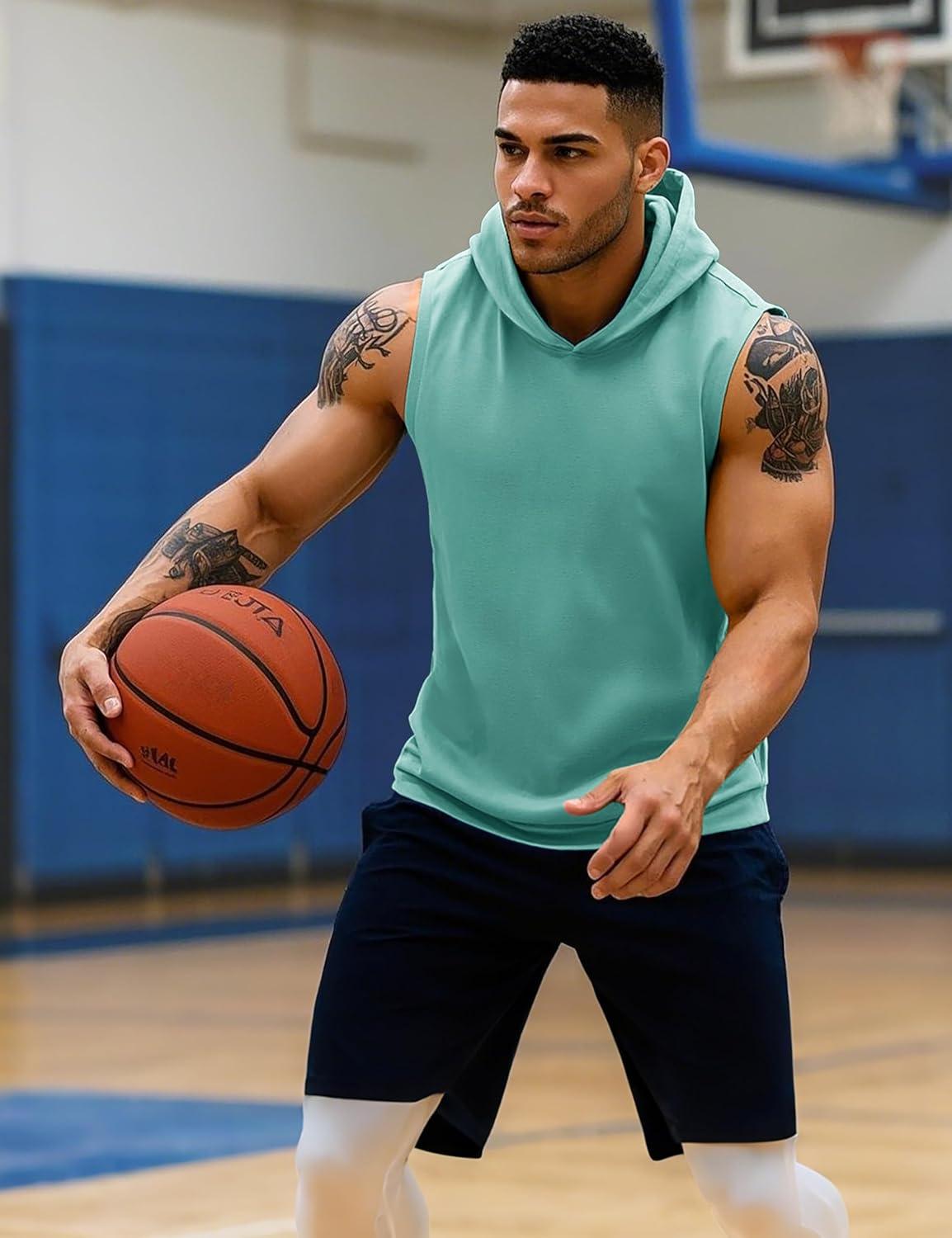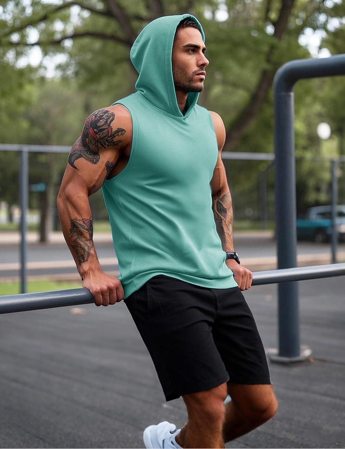 MAGCOMSEN Mens Tank Top Sleeveless Hoodie Cotton T-Shirt Summer Casual Shirt Muscle Tee(Grey Green)