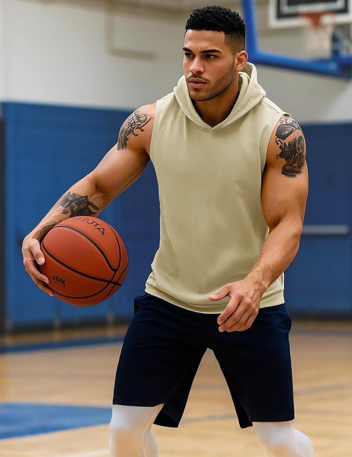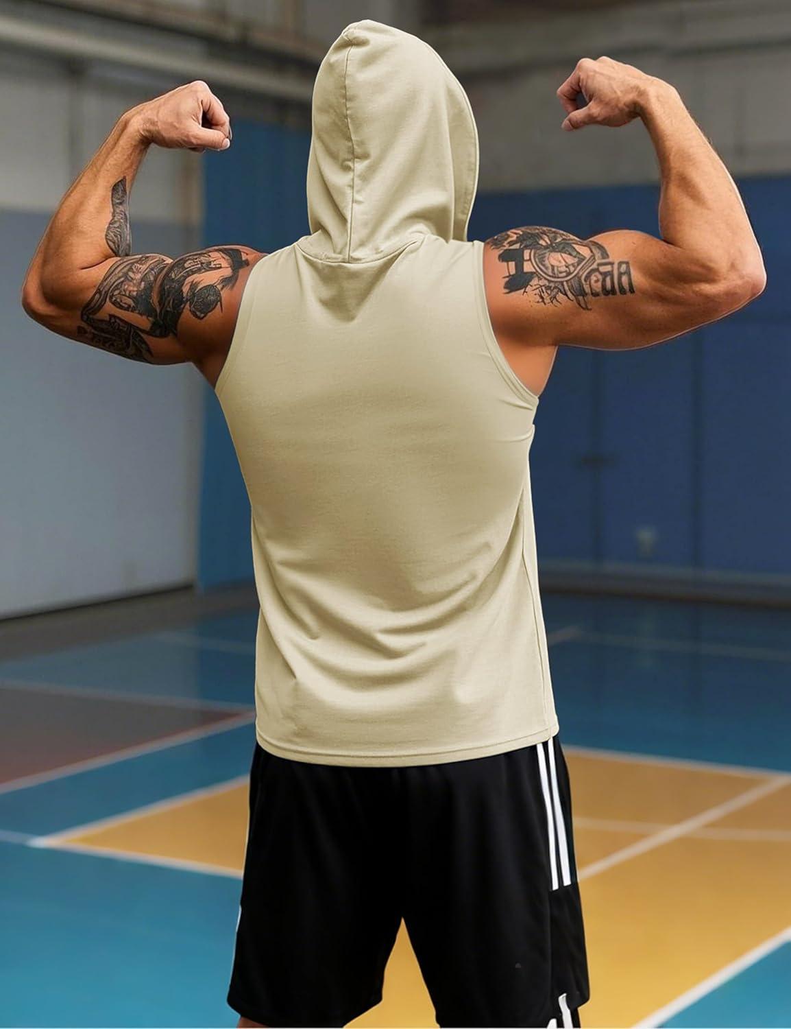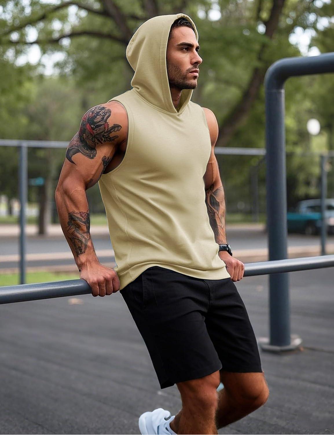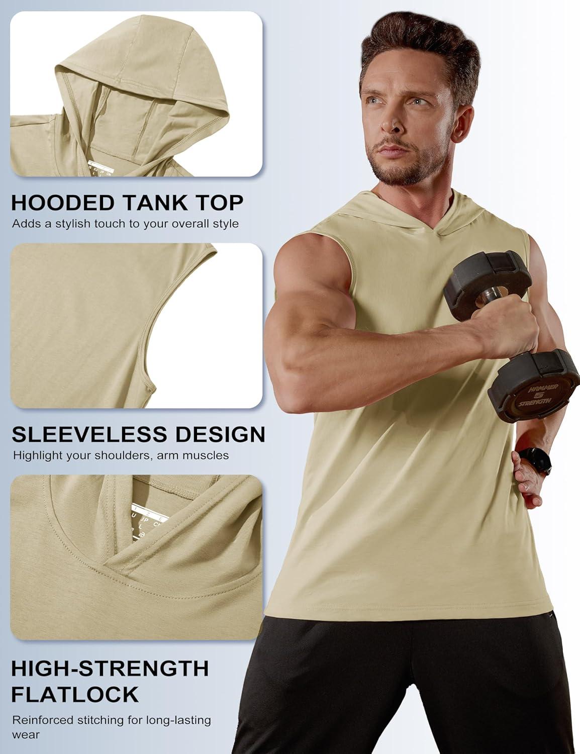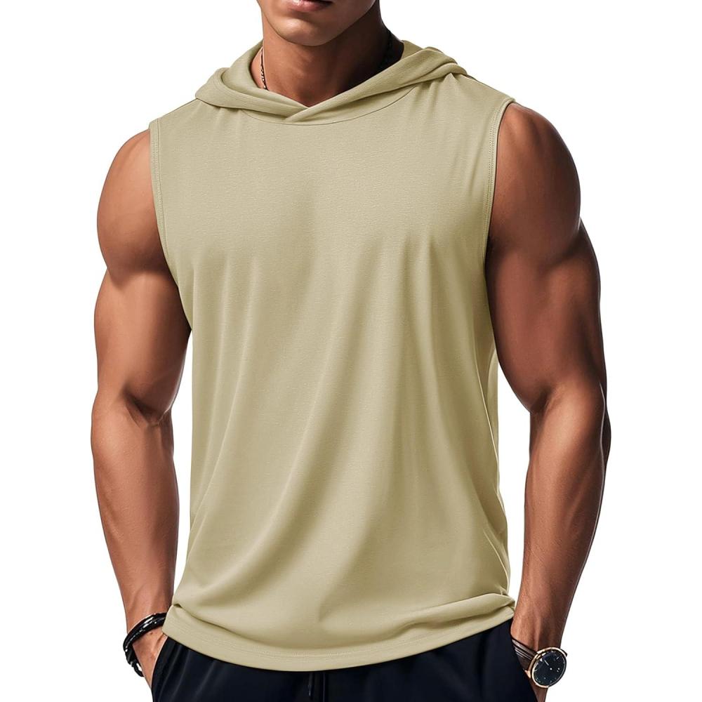 MAGCOMSEN Mens Tank Top Sleeveless Hoodie Cotton T-Shirt Summer Casual Shirt Muscle Tee(Light Apricot)
