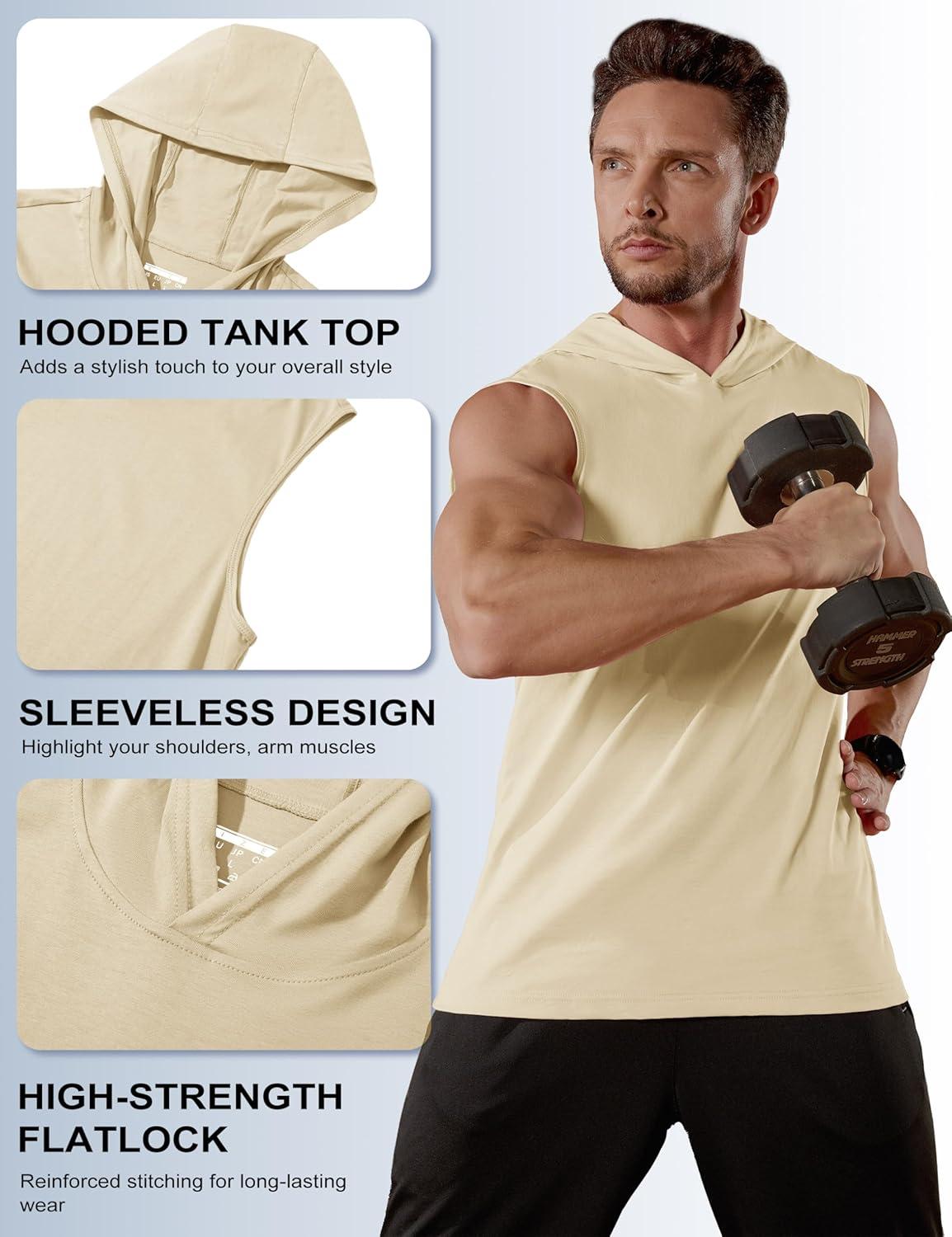 MAGCOMSEN Mens Tank Top Sleeveless Hoodie Cotton T-Shirt Summer Casual Shirt Muscle Tee(Light Apricot)