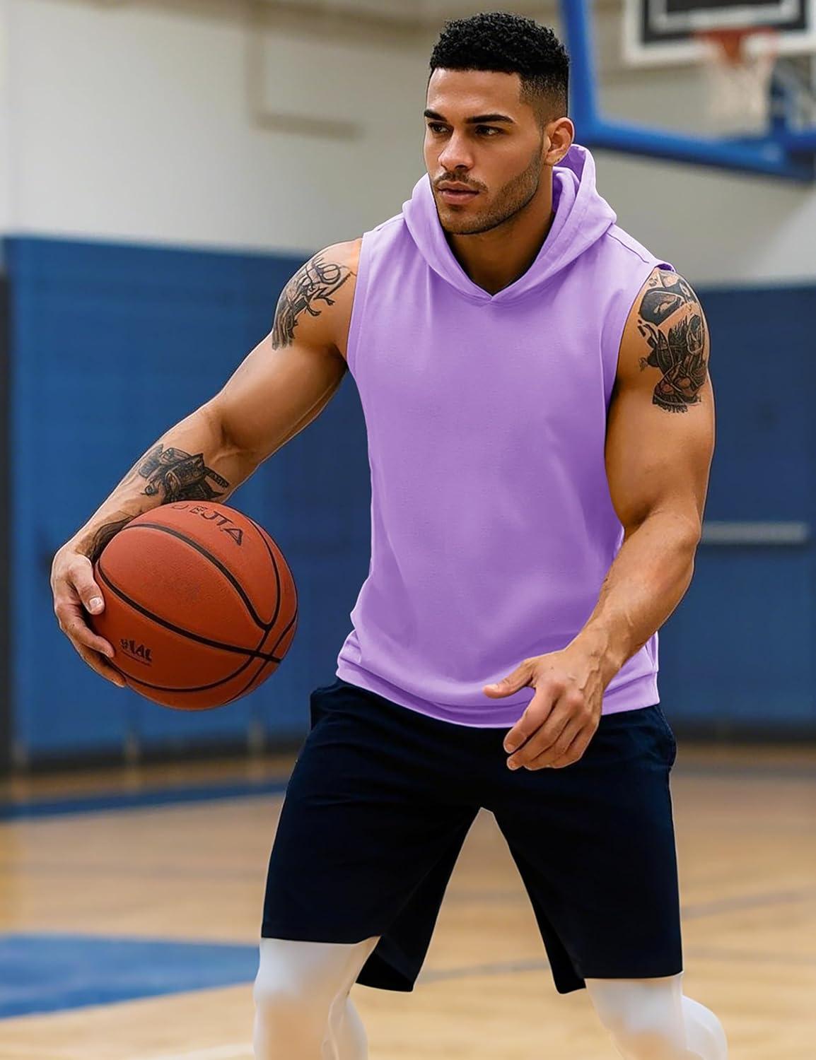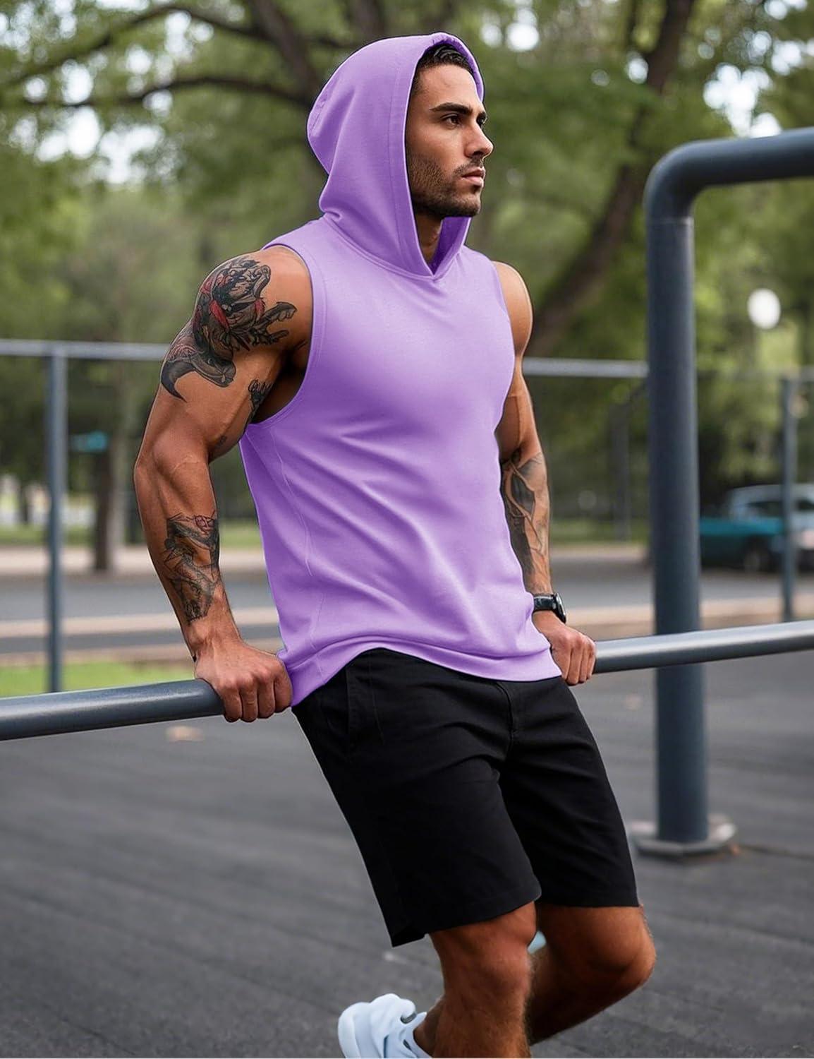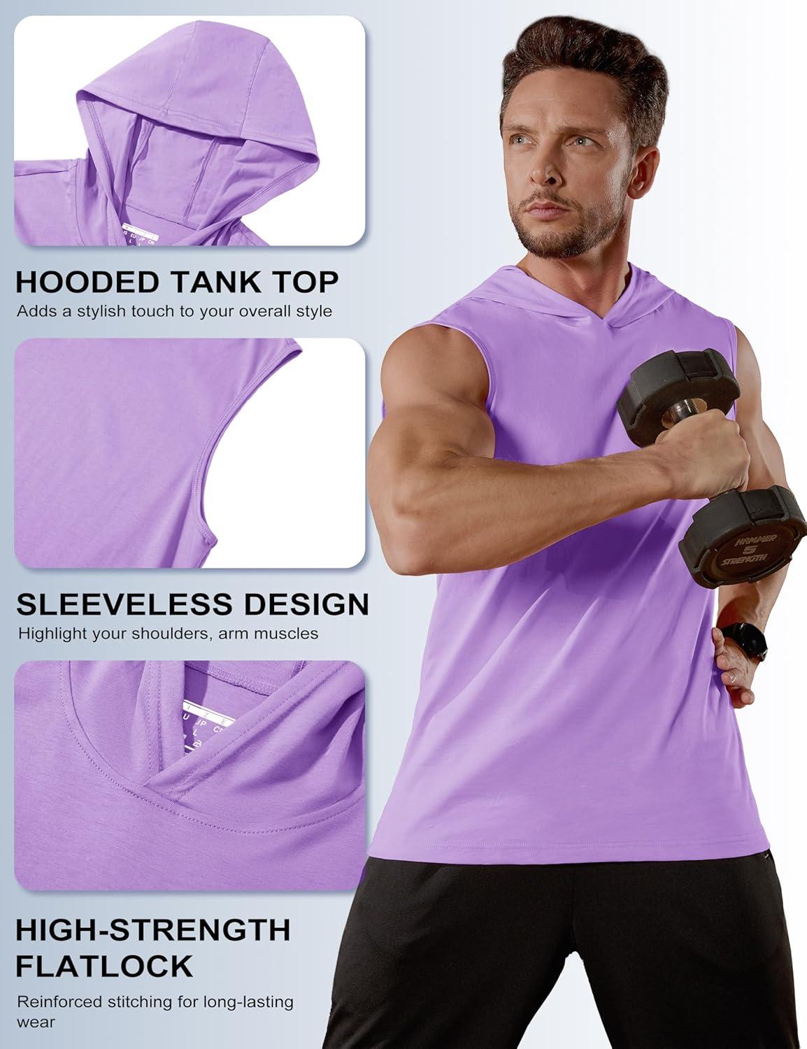 MAGCOMSEN Mens Tank Top Sleeveless Hoodie Cotton T-Shirt Summer Casual Shirt Muscle Tee(Light Purple)