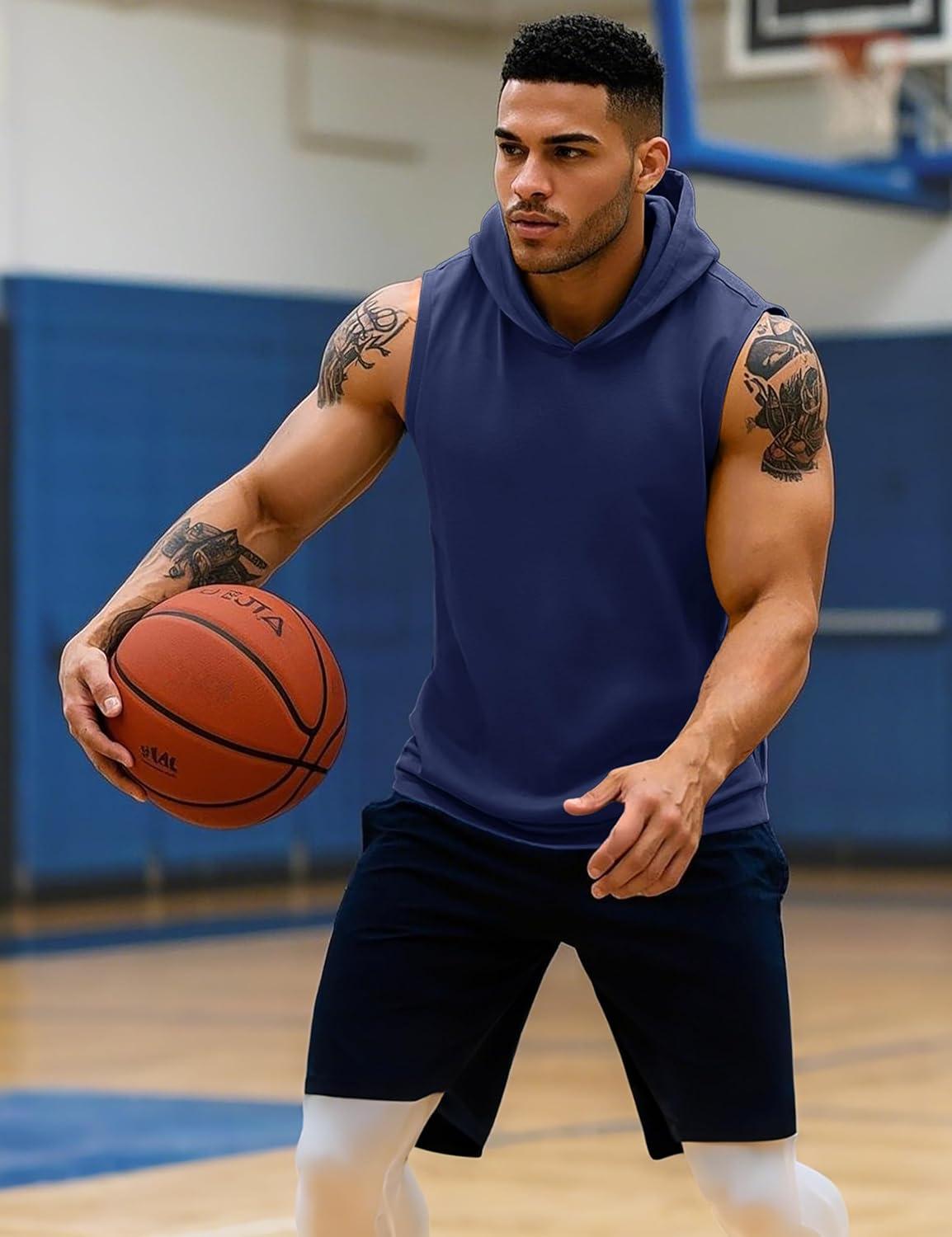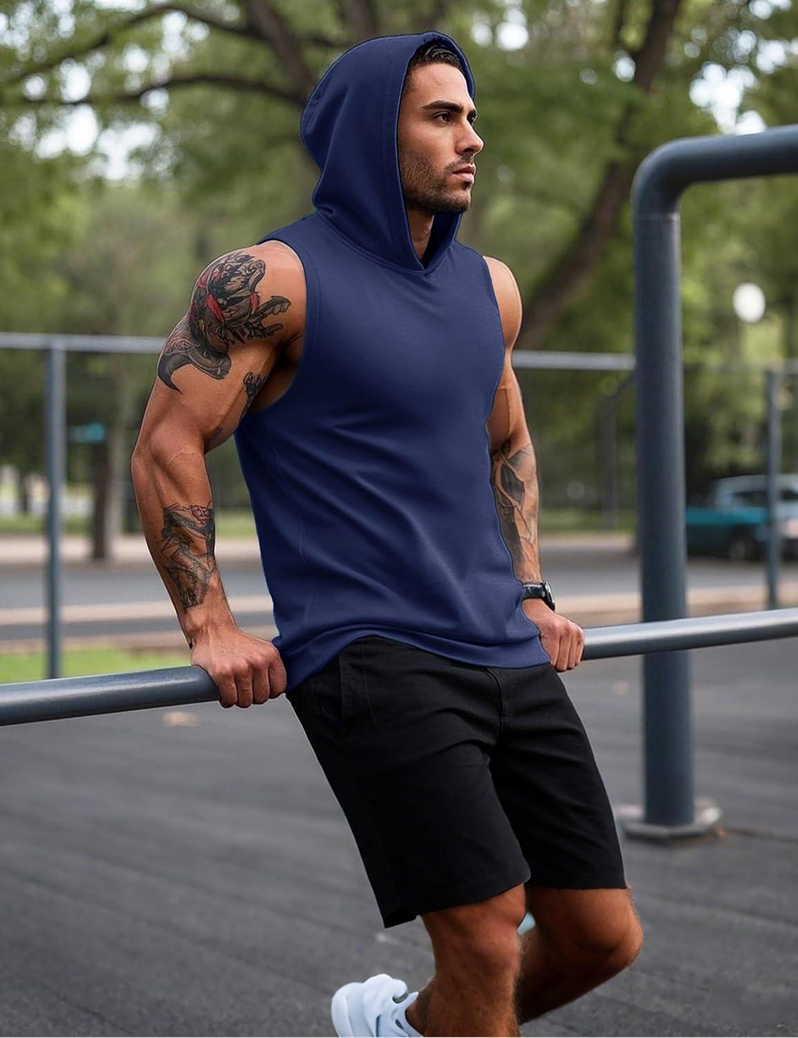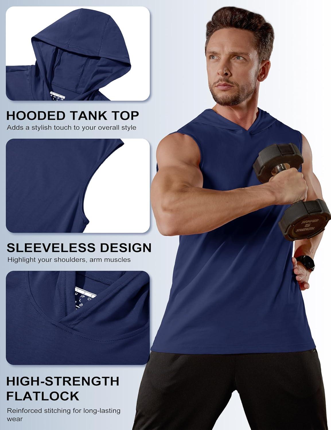 MAGCOMSEN Mens Tank Top Sleeveless Hoodie Cotton T-Shirt Summer Casual Shirt Muscle Tee(Navy)