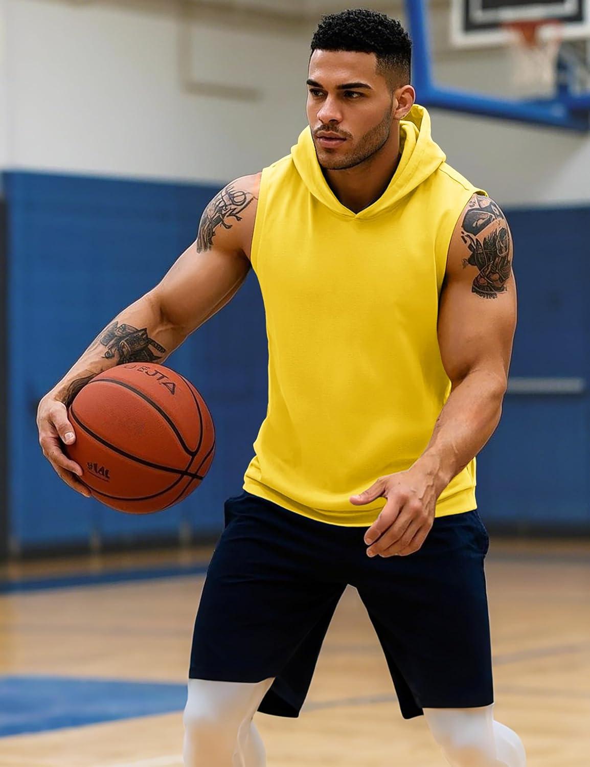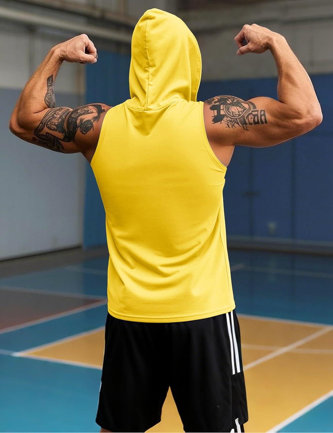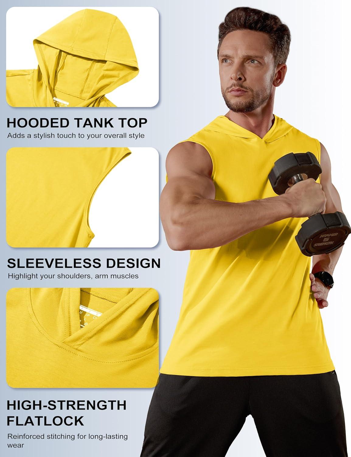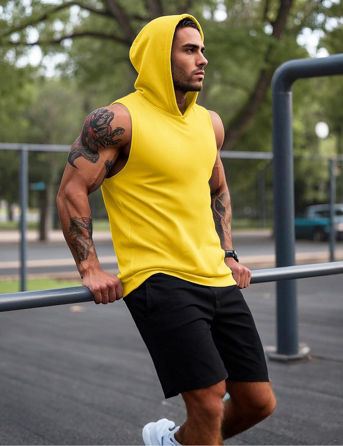 MAGCOMSEN Mens Tank Top Sleeveless Hoodie Cotton T-Shirt Summer Casual Shirt Muscle Tee(Yellow)
