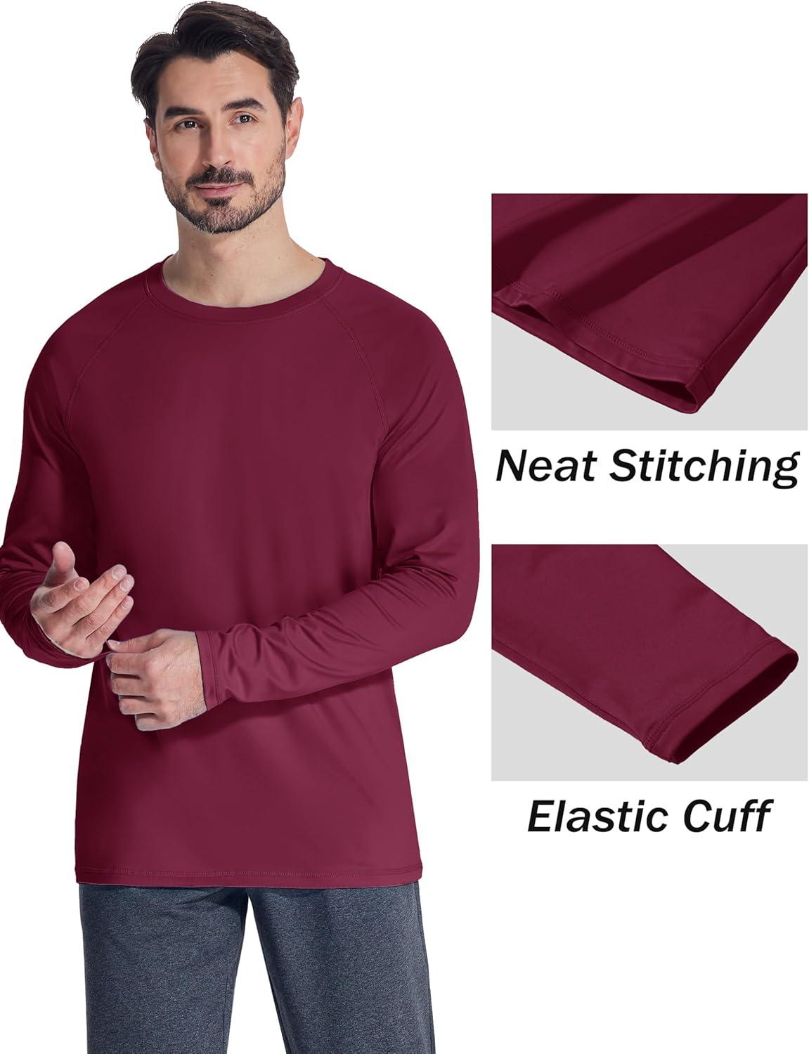 MAGCOMSEN Men’s Thermal Shirt Fleece Lined Long Sleeve Athletic Base Layer Workout Top(Wine Red)