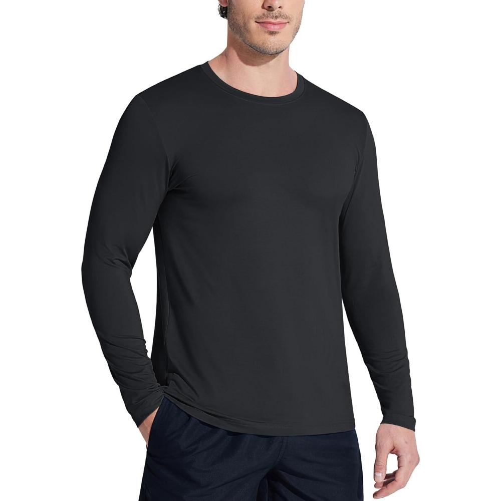 MAGCOMSEN Men’s UPF 50+ Shirts Long Sleeve UV Protection Quick Dry T-Shirt Rash Guard for Fishing Running Beach(Black)