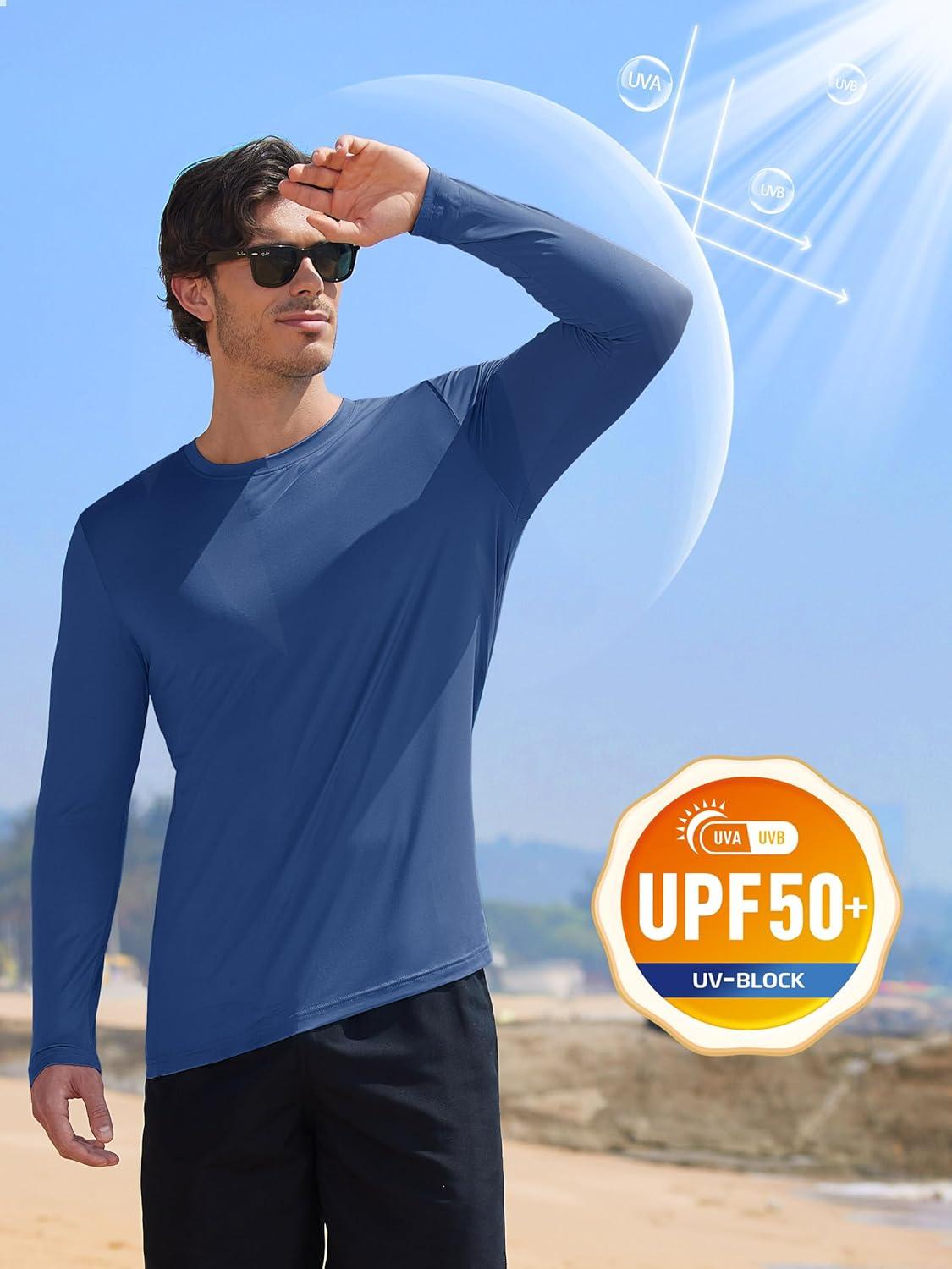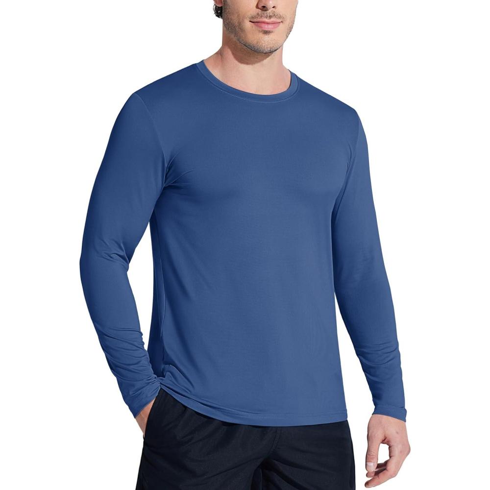 MAGCOMSEN Men’s UPF 50+ Shirts Long Sleeve UV Protection Quick Dry T-Shirt Rash Guard for Fishing Running Beach(Blue Grey)