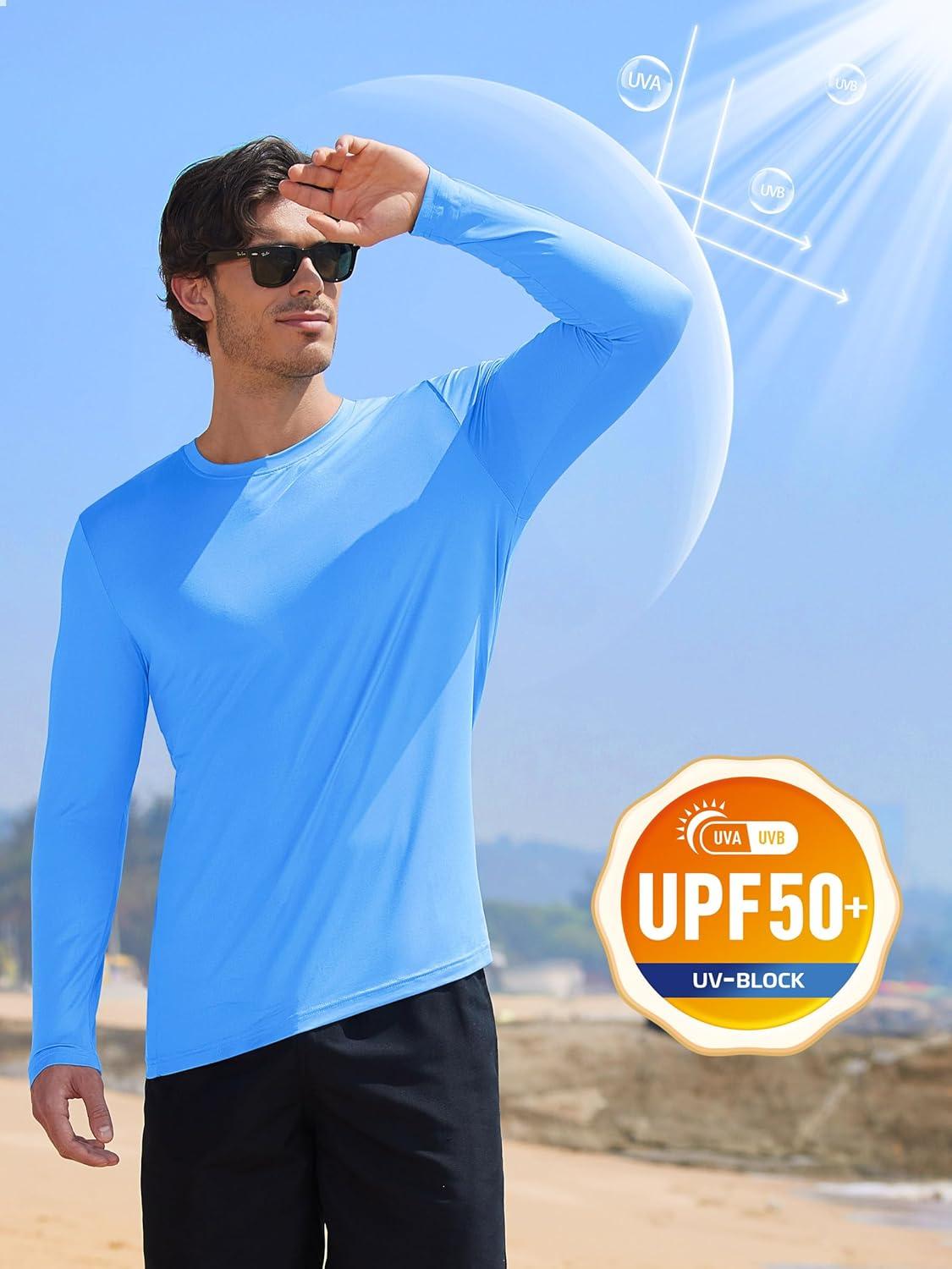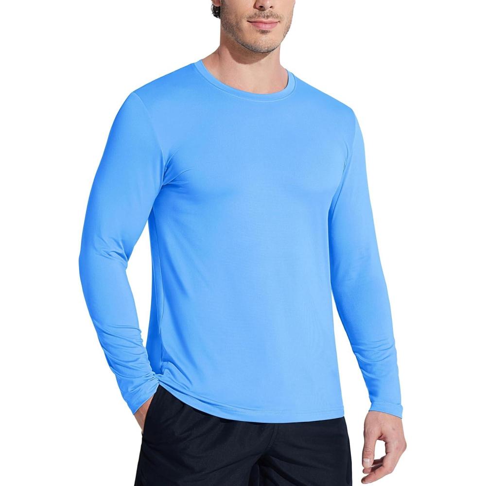 MAGCOMSEN Men’s UPF 50+ Shirts Long Sleeve UV Protection Quick Dry T-Shirt Rash Guard for Fishing Running Beach(Water Blue)