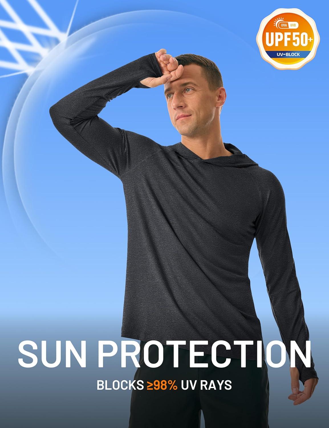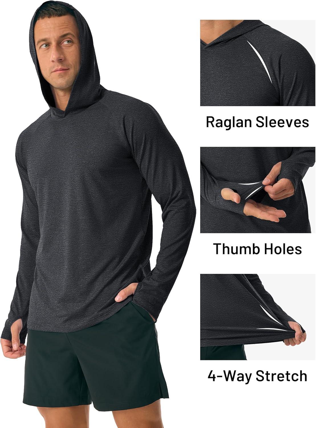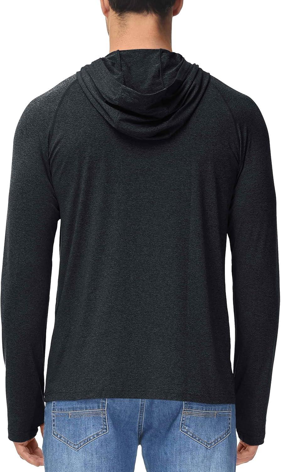 MAGCOMSEN Men’s UPF 50+ Sun Protection Hoodie Lightweight Long Sleeve Rash Guard Shirts Fishing Swim Athletic Workout(Black)