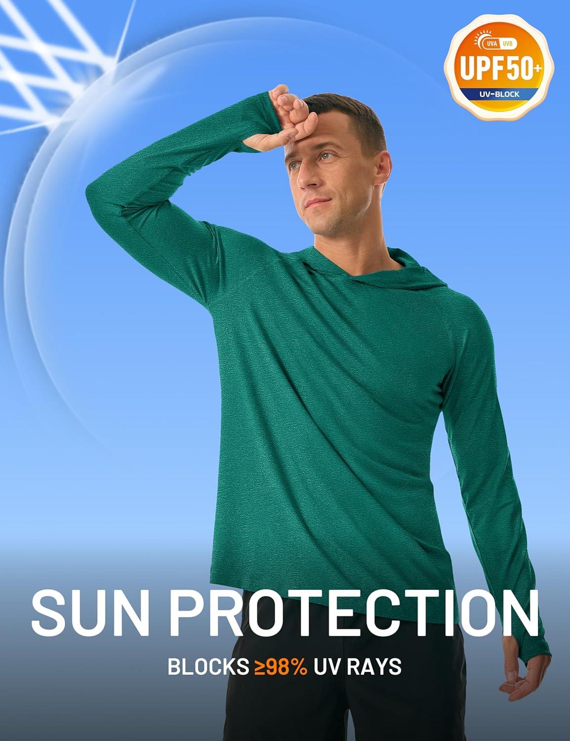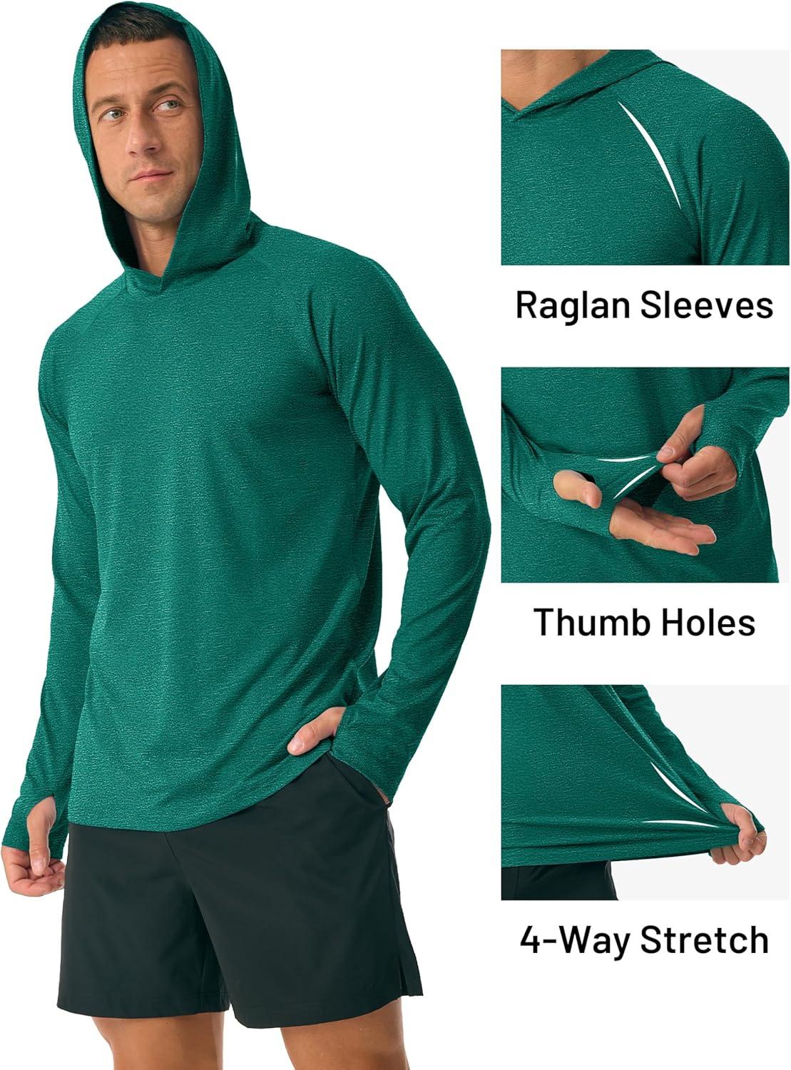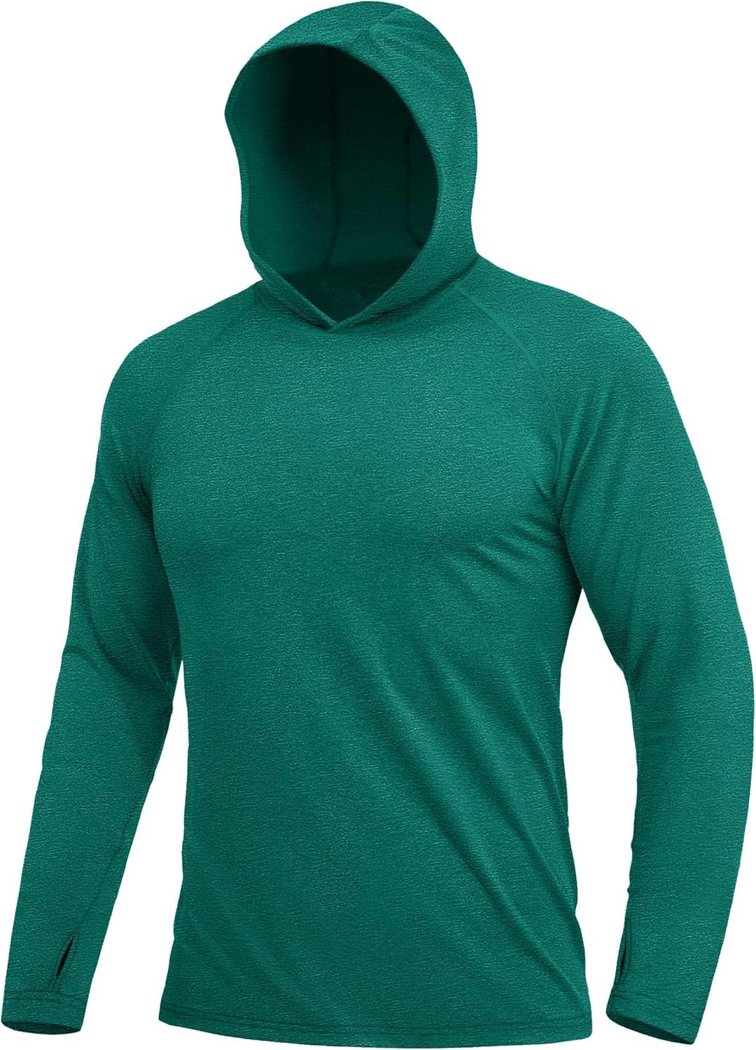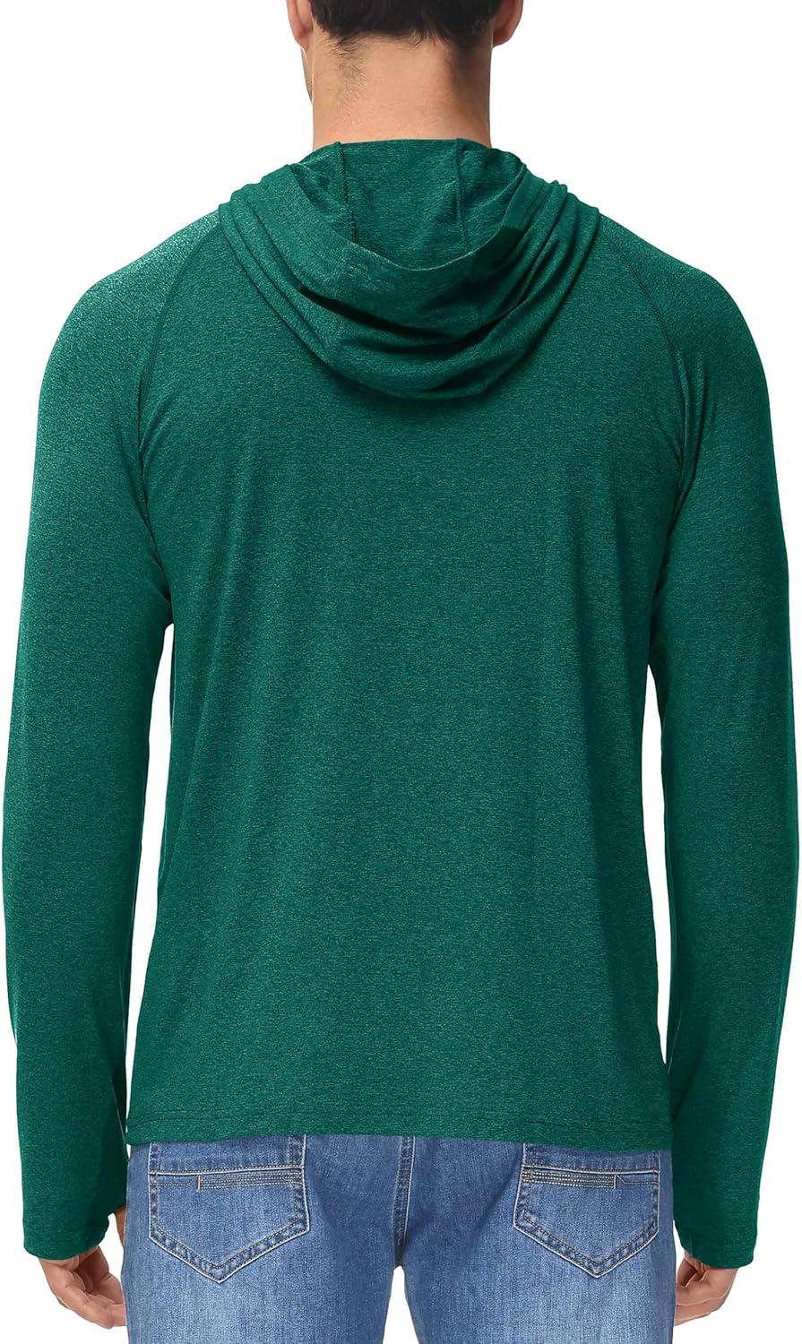 MAGCOMSEN Men’s UPF 50+ Sun Protection Hoodie Lightweight Long Sleeve Rash Guard Shirts Fishing Swim Athletic Workout(Emerald Green)