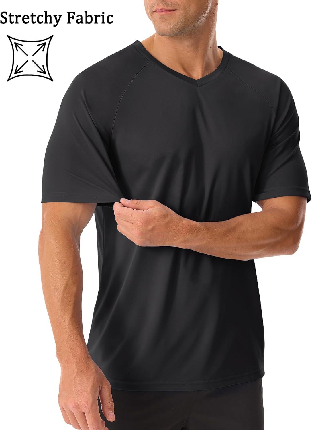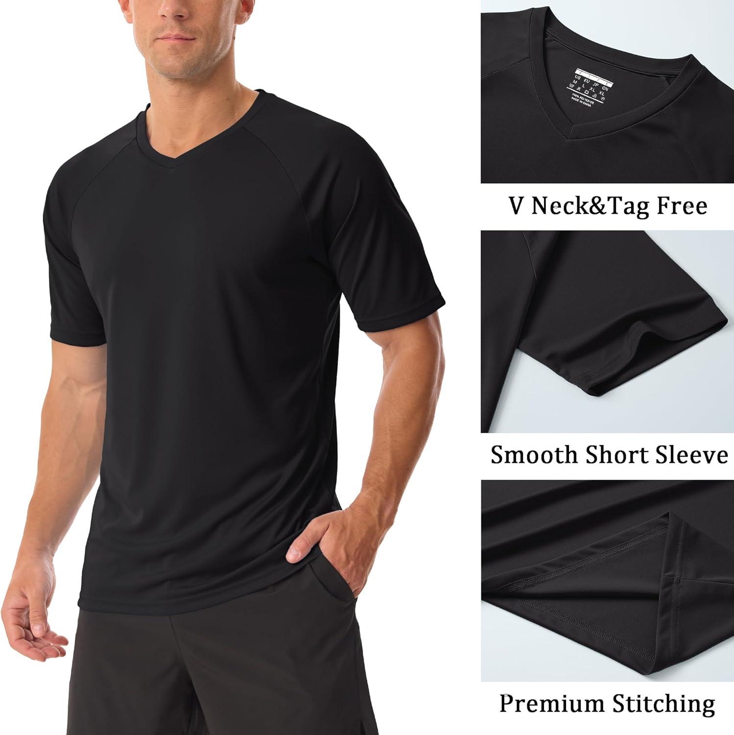 MAGCOMSEN Men’s UPF 50+ Sun Protection Shirts V Neck Short Sleeve T-Shirt Quick Dry Swim UV Shirt Summer Workout Rash Guard(Black)