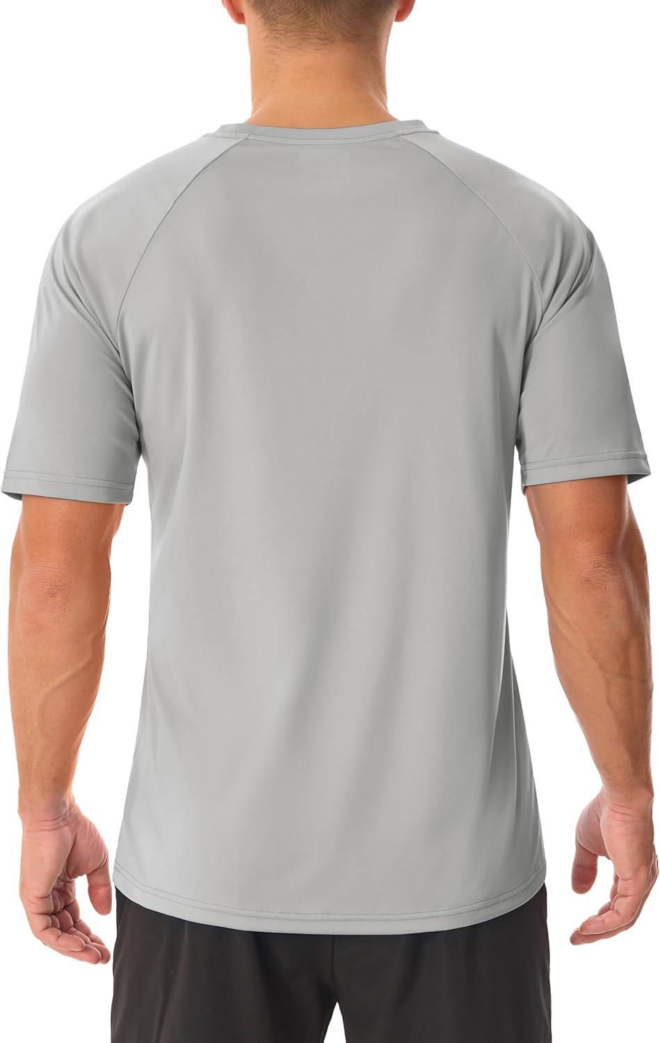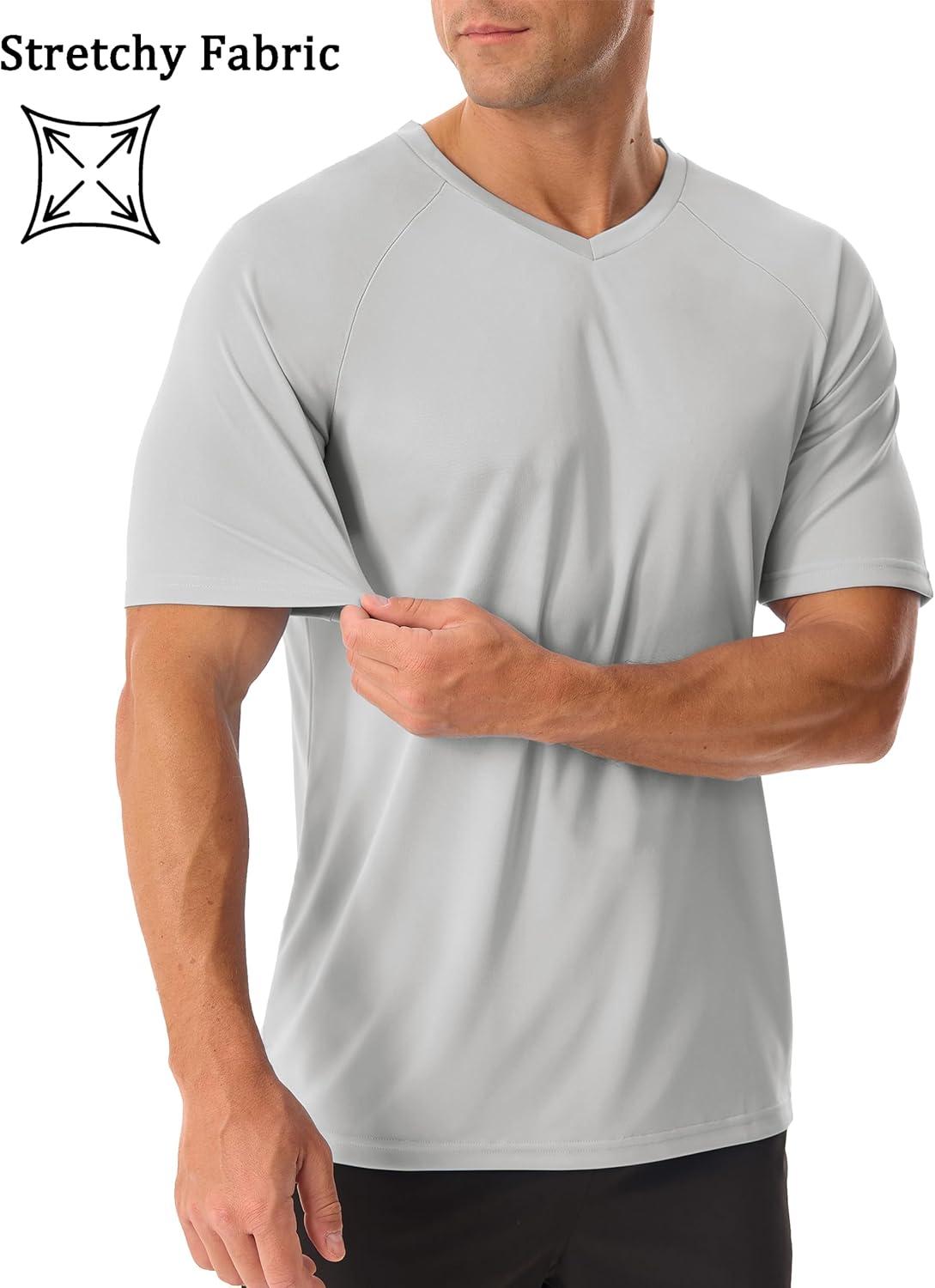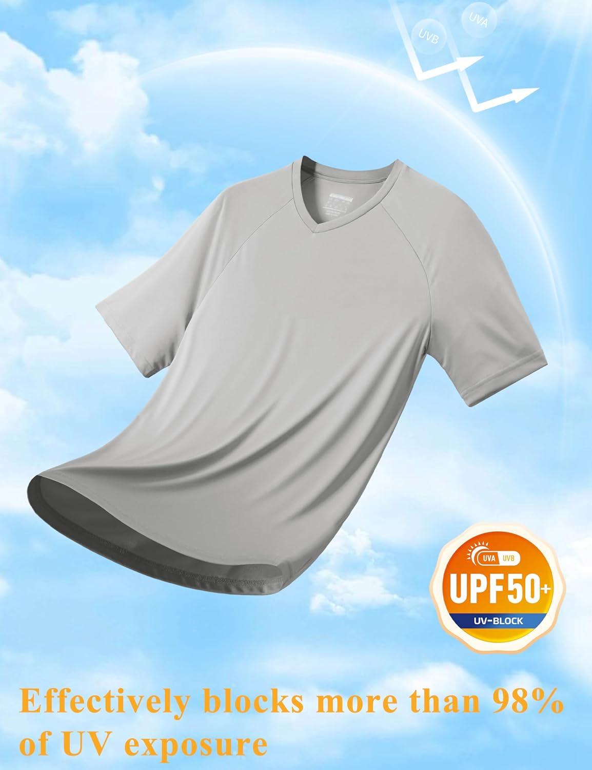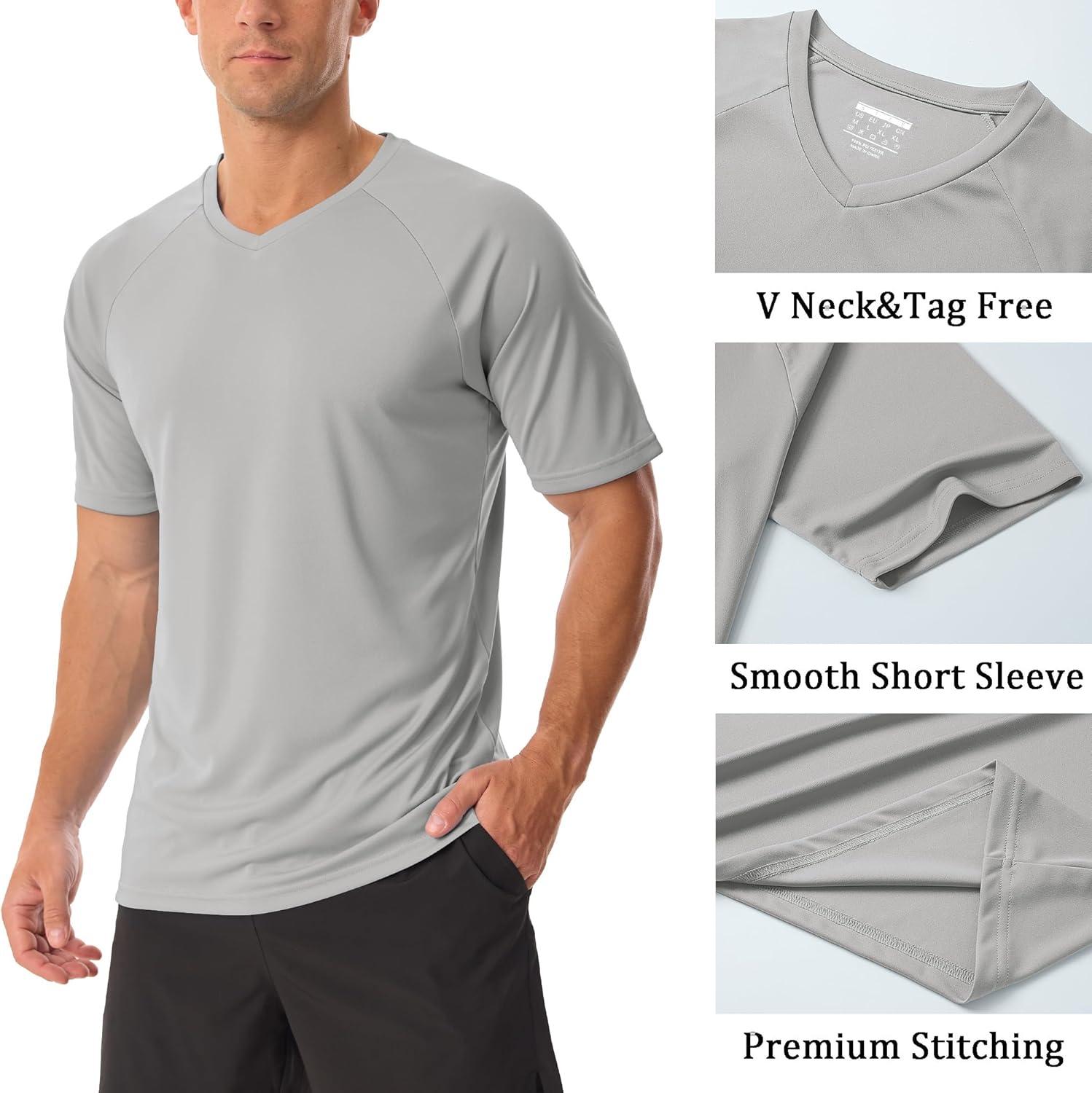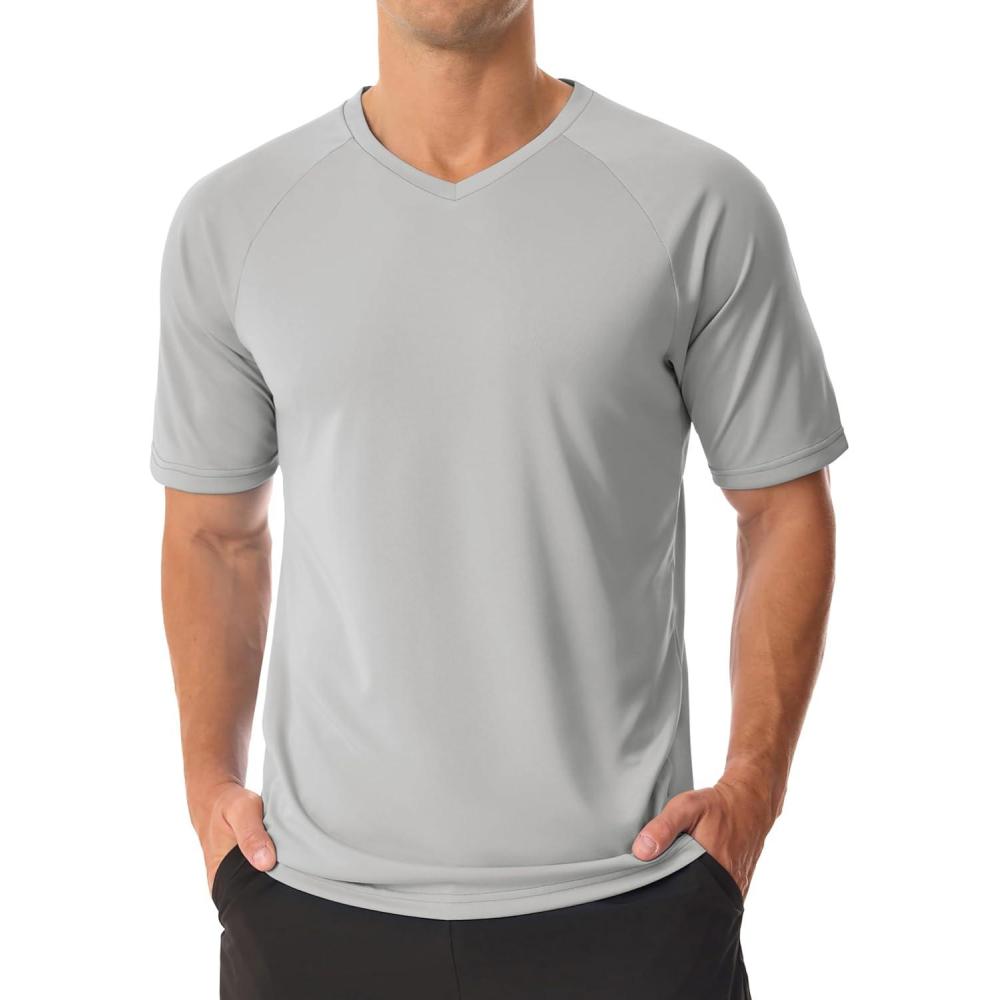 MAGCOMSEN Men’s UPF 50+ Sun Protection Shirts V Neck Short Sleeve T-Shirt Quick Dry Swim UV Shirt Summer Workout Rash Guard(Light Grey)