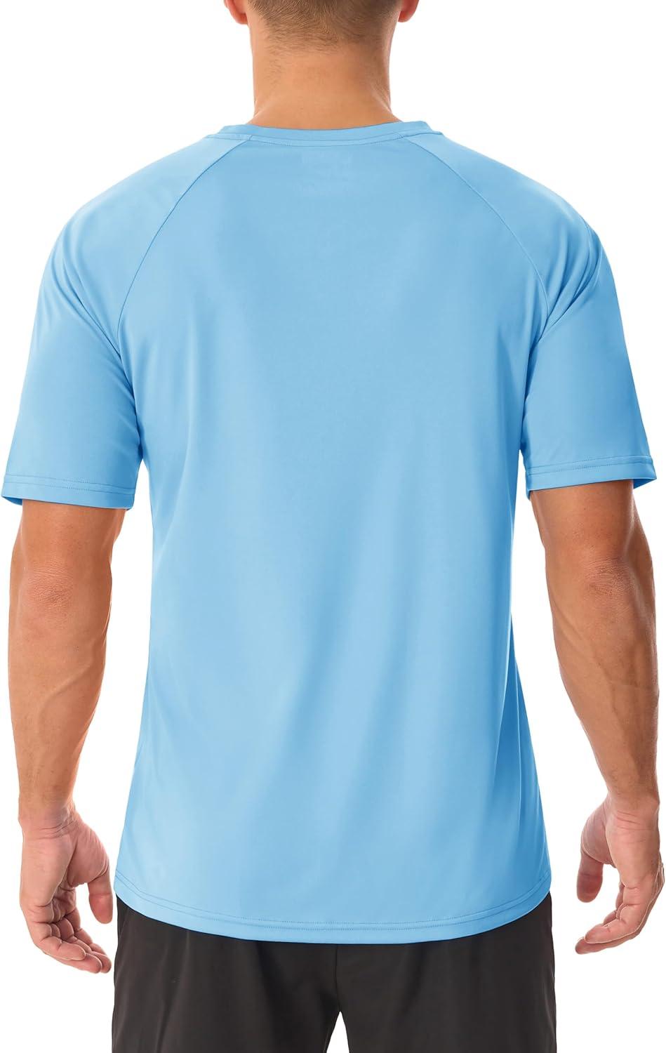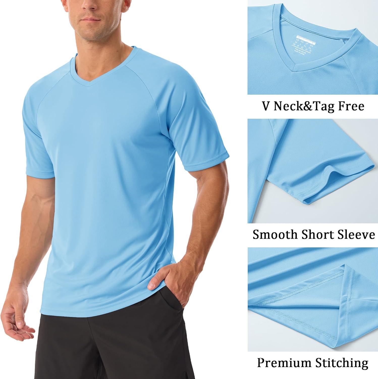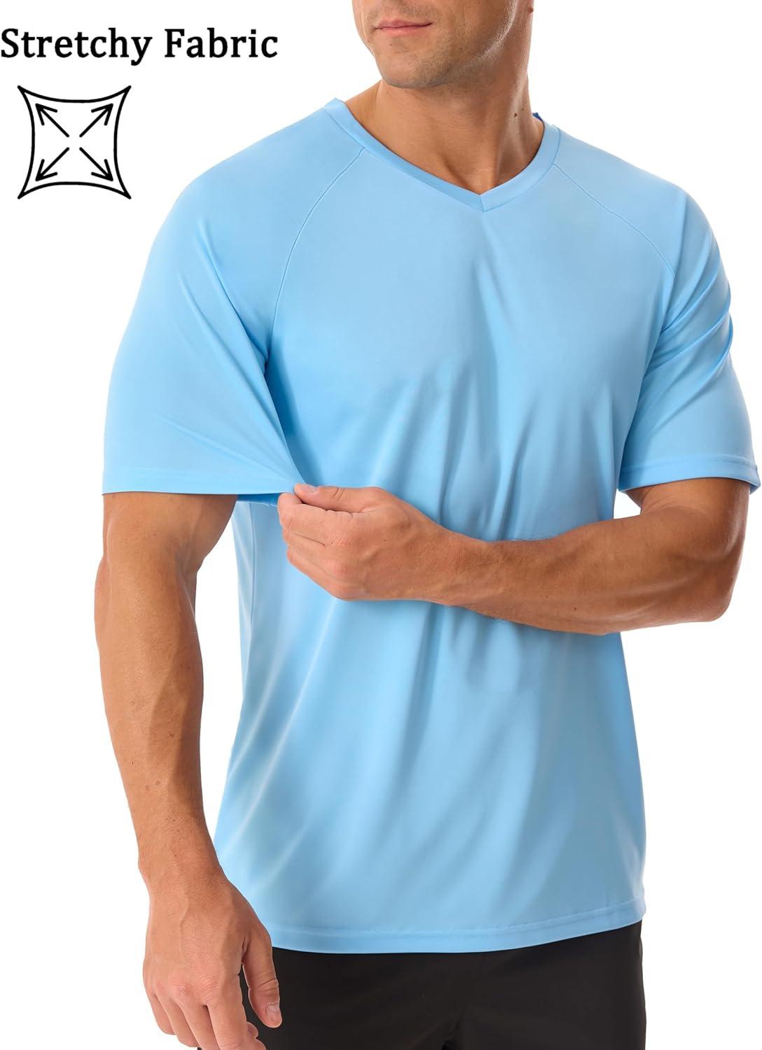 MAGCOMSEN Men’s UPF 50+ Sun Protection Shirts V Neck Short Sleeve T-Shirt Quick Dry Swim UV Shirt Summer Workout Rash Guard(Sky Blue)