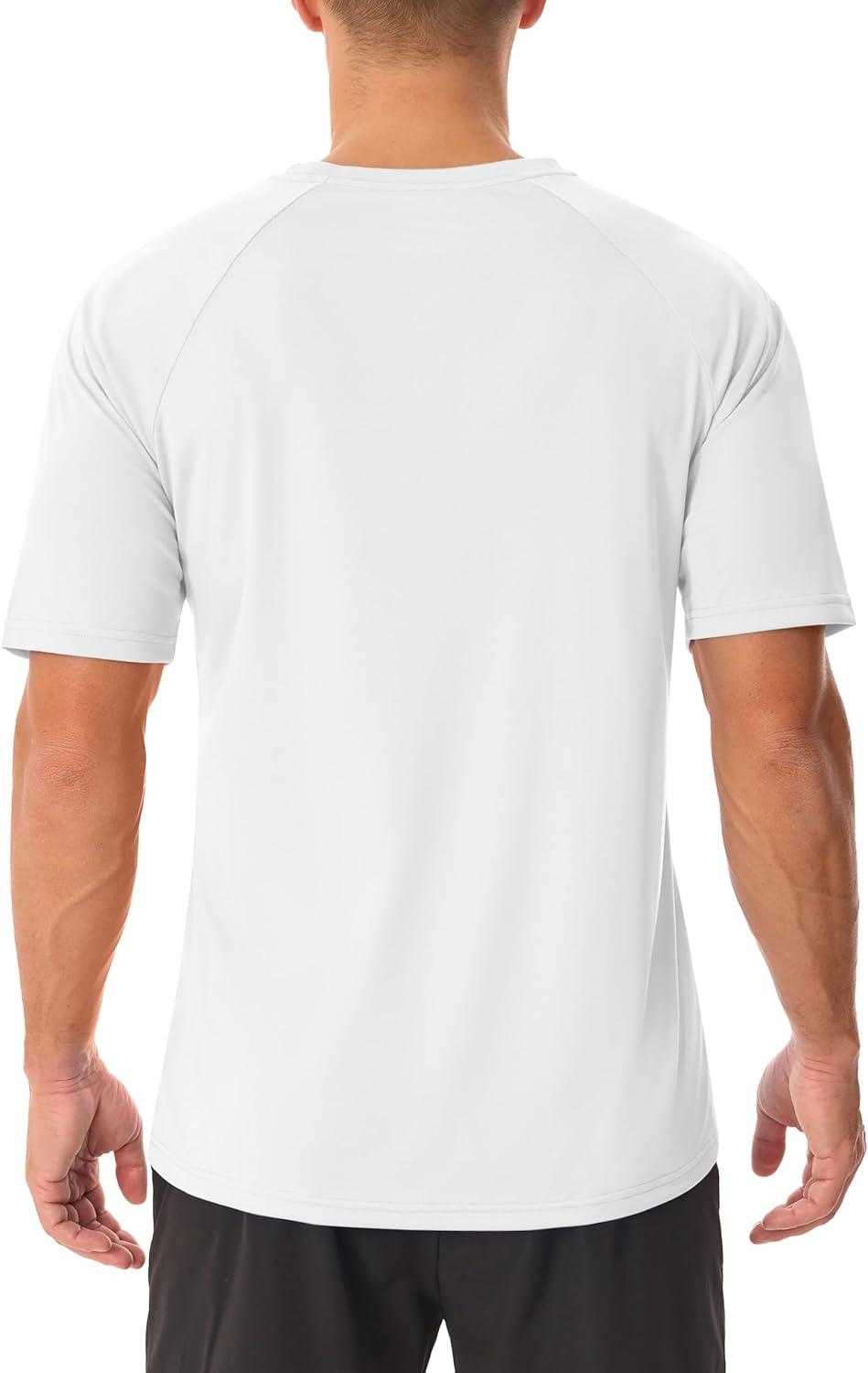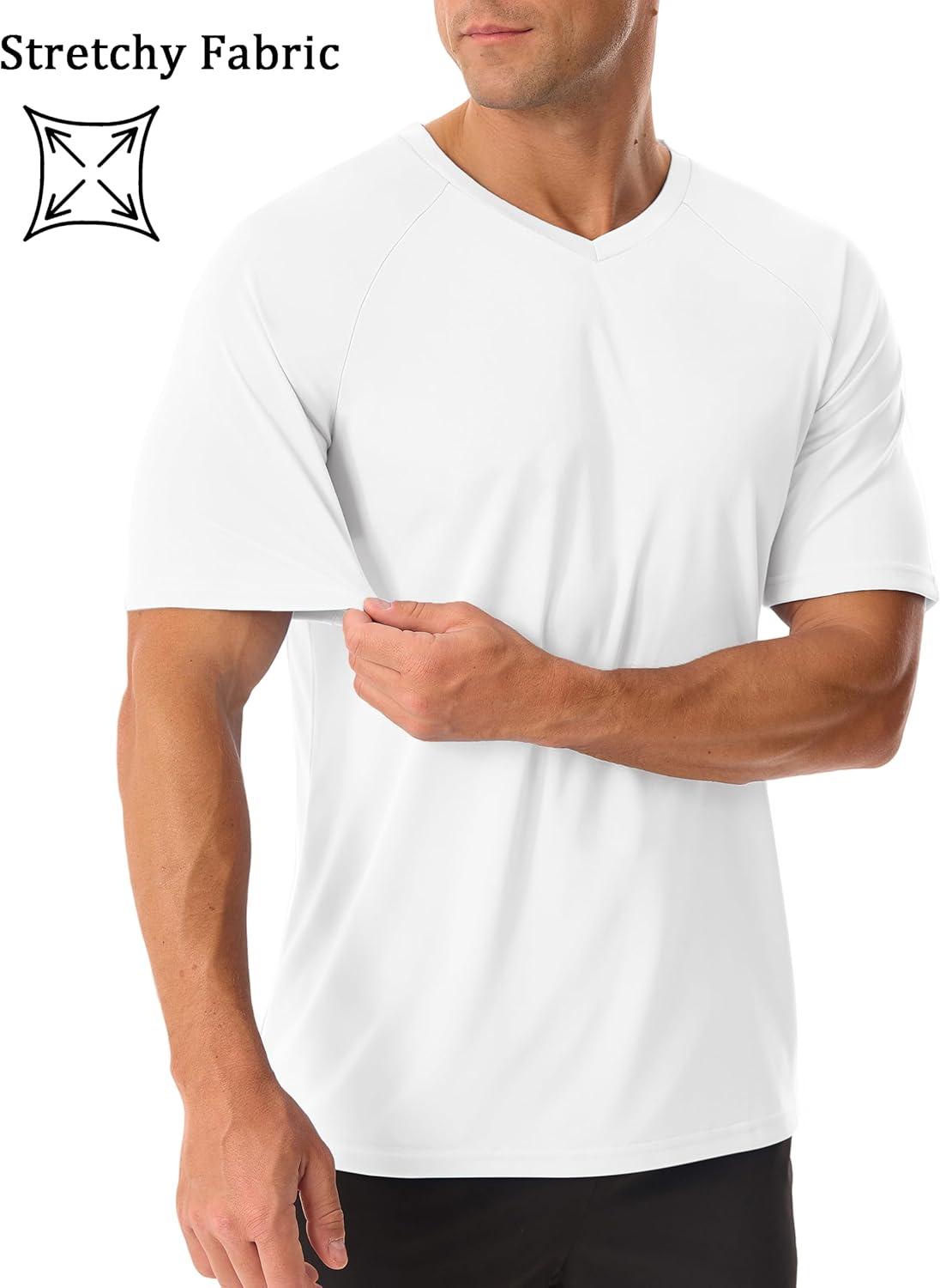 MAGCOMSEN Men’s UPF 50+ Sun Protection Shirts V Neck Short Sleeve T-Shirt Quick Dry Swim UV Shirt Summer Workout Rash Guard(White)