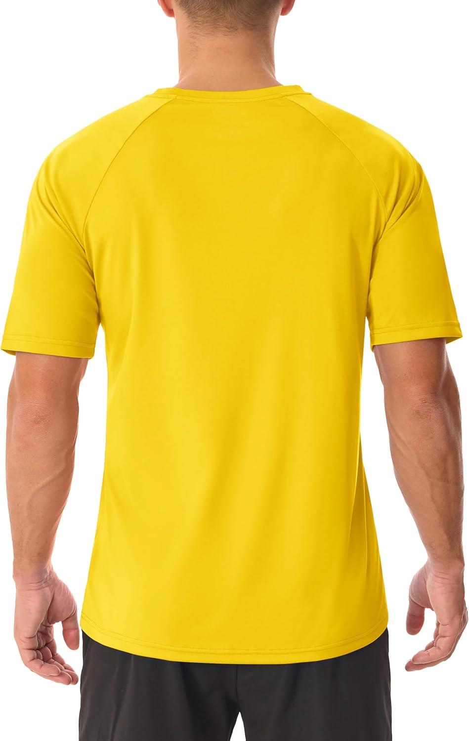 MAGCOMSEN Men’s UPF 50+ Sun Protection Shirts V Neck Short Sleeve T-Shirt Quick Dry Swim UV Shirt Summer Workout Rash Guard(Yellow)