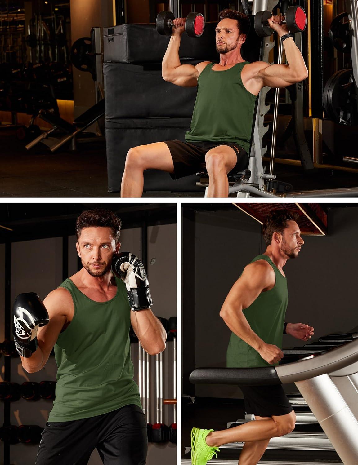 MAGCOMSEN Men’s UPF 50+ Tank Top Gym Workout Sleeveless Muscle Shirts Sun Protection Cut Off Shirts Summer Sleeveless T Shirt(Armygreen)