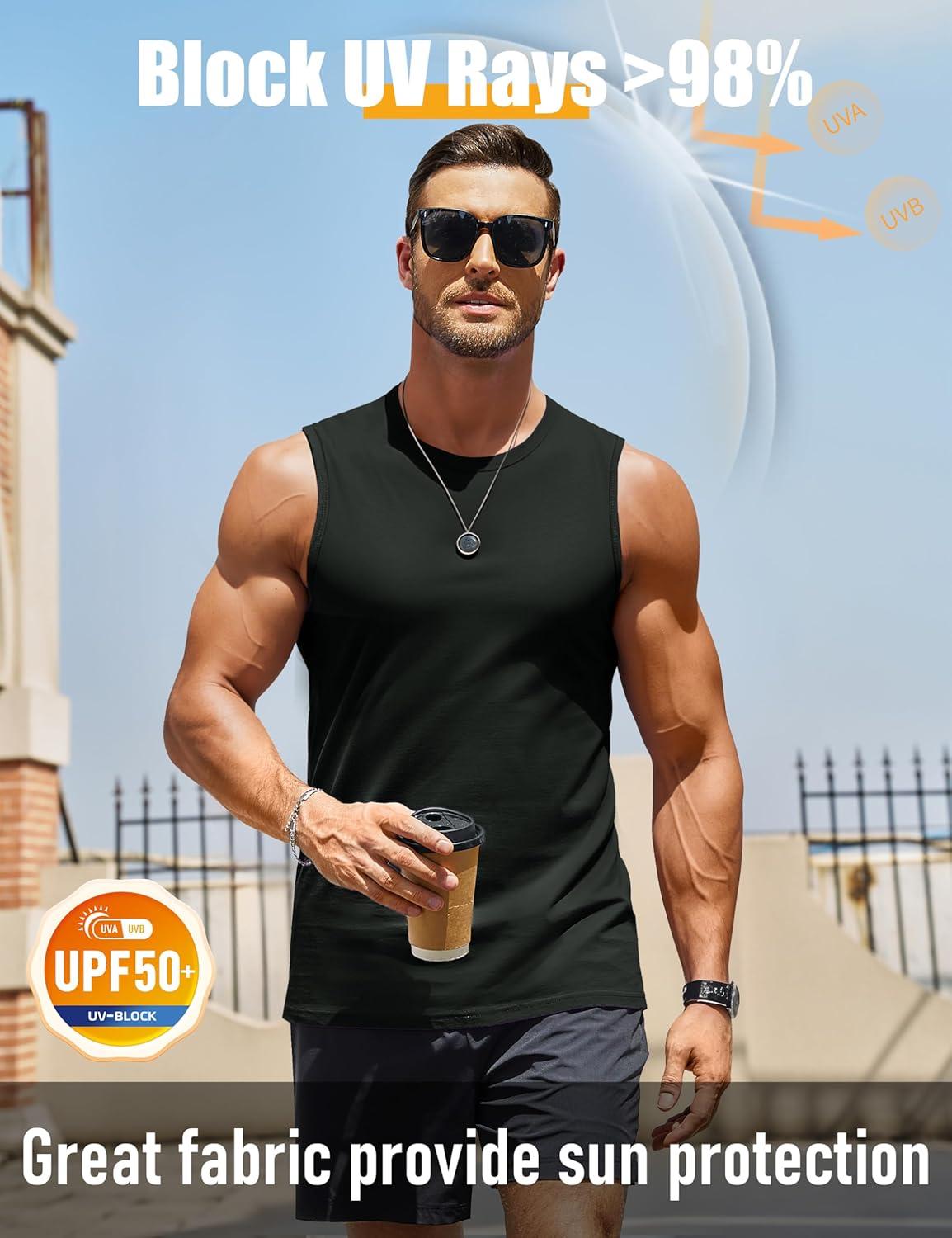 MAGCOMSEN Men’s UPF 50+ Tank Top Workout Sleeveless Muscle Shirts Lightweight Casual Cooling Sleeveless Shirt for Gym Beach(Black)