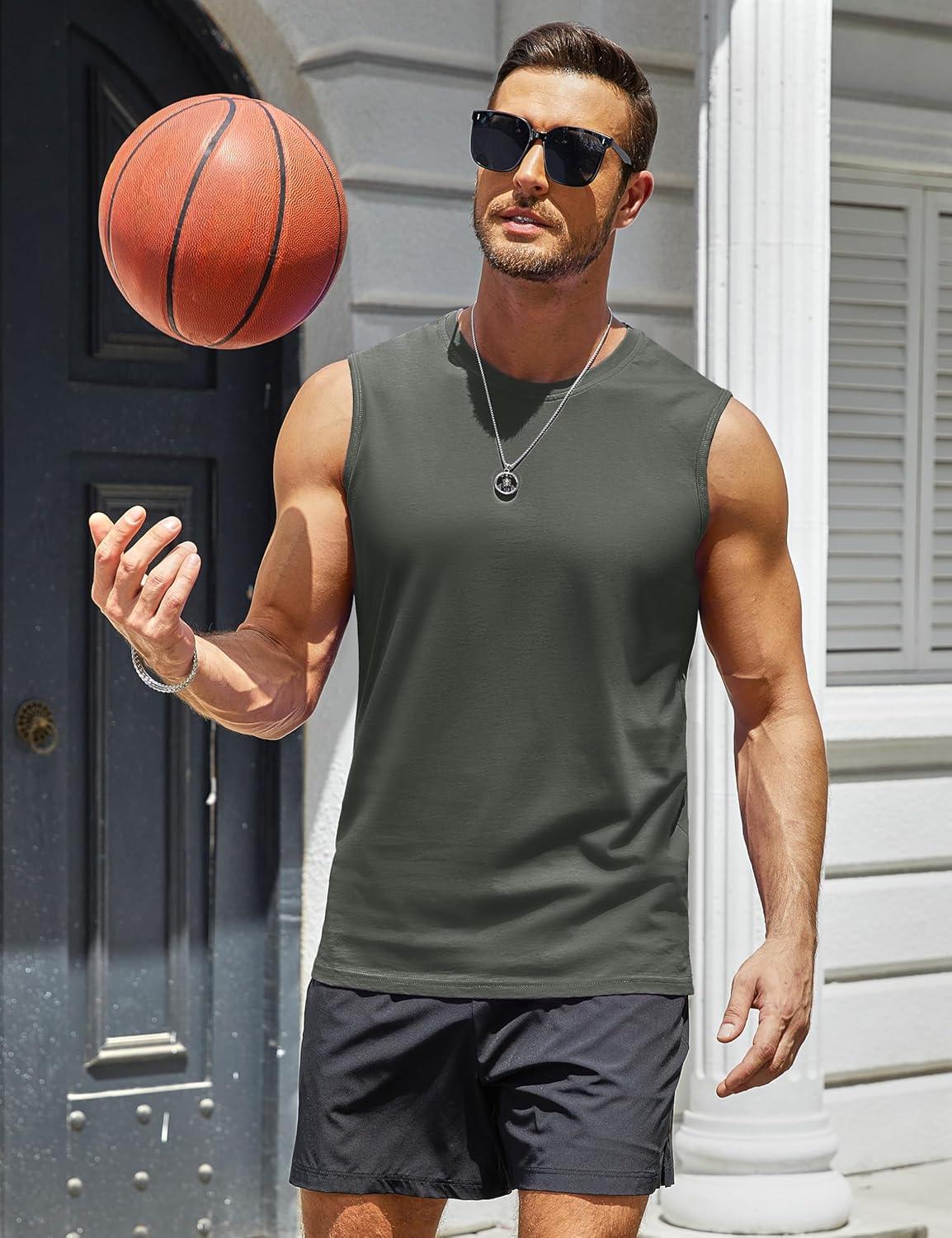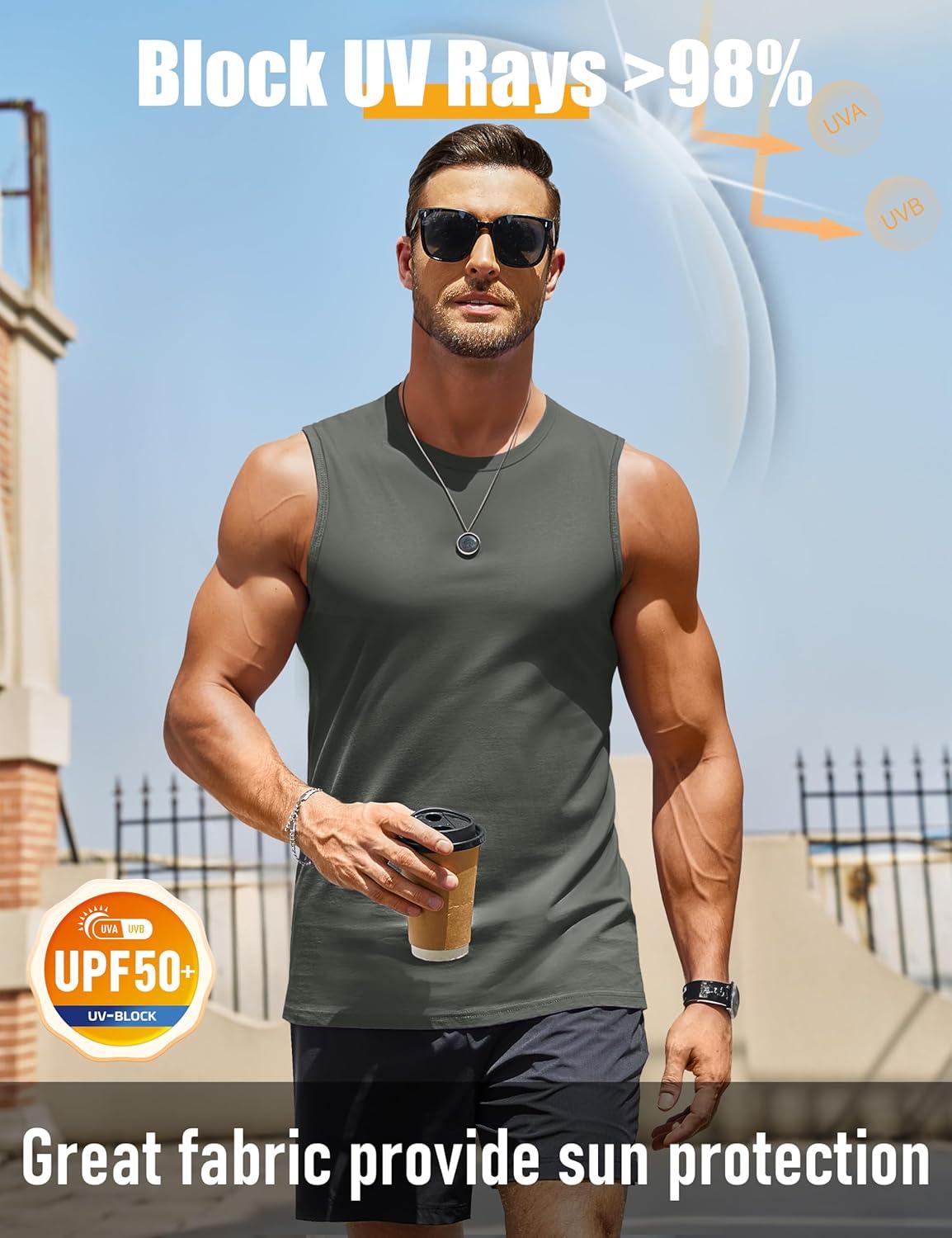 MAGCOMSEN Men’s UPF 50+ Tank Top Workout Sleeveless Muscle Shirts Lightweight Casual Cooling Sleeveless Shirt for Gym Beach(Dark Grey)