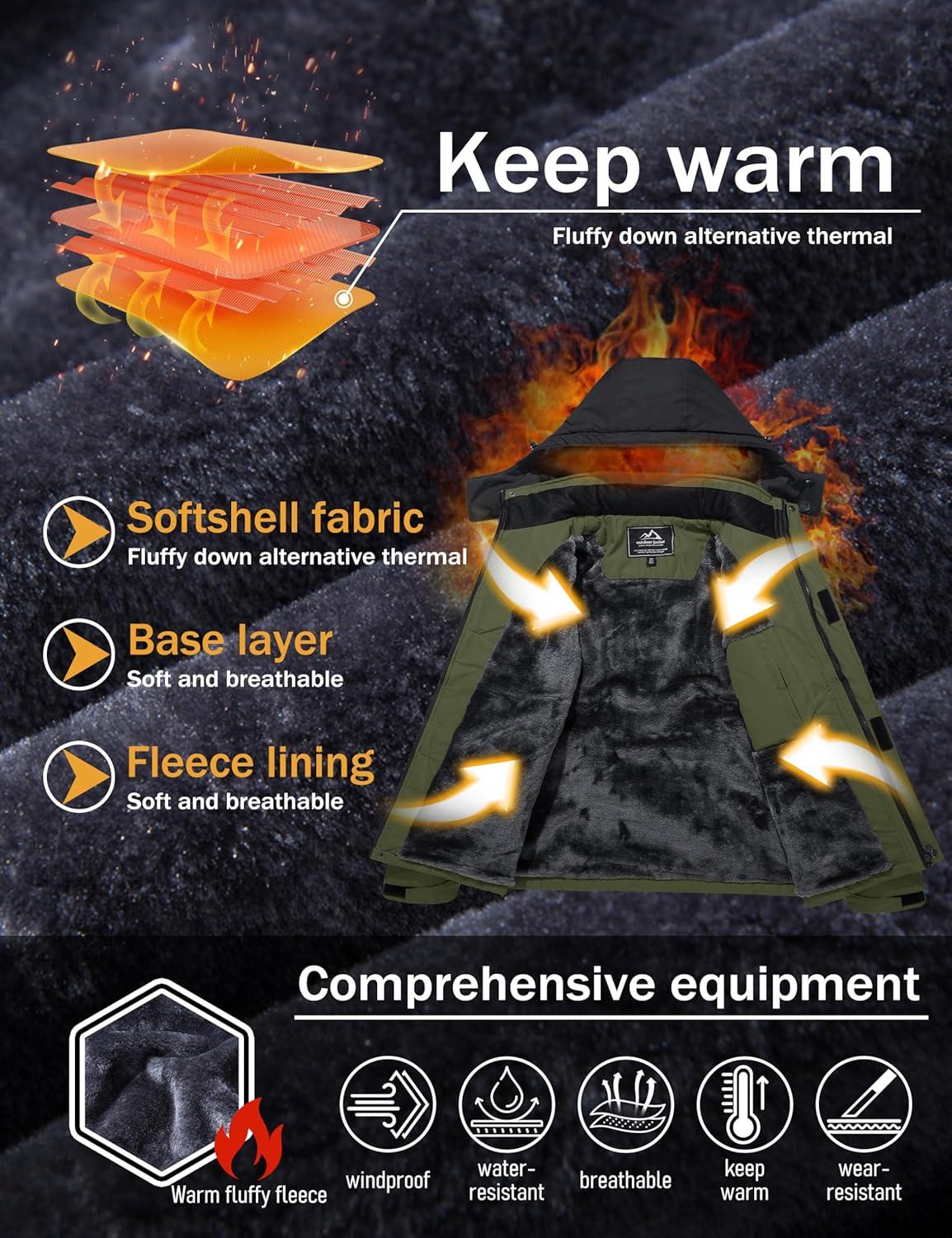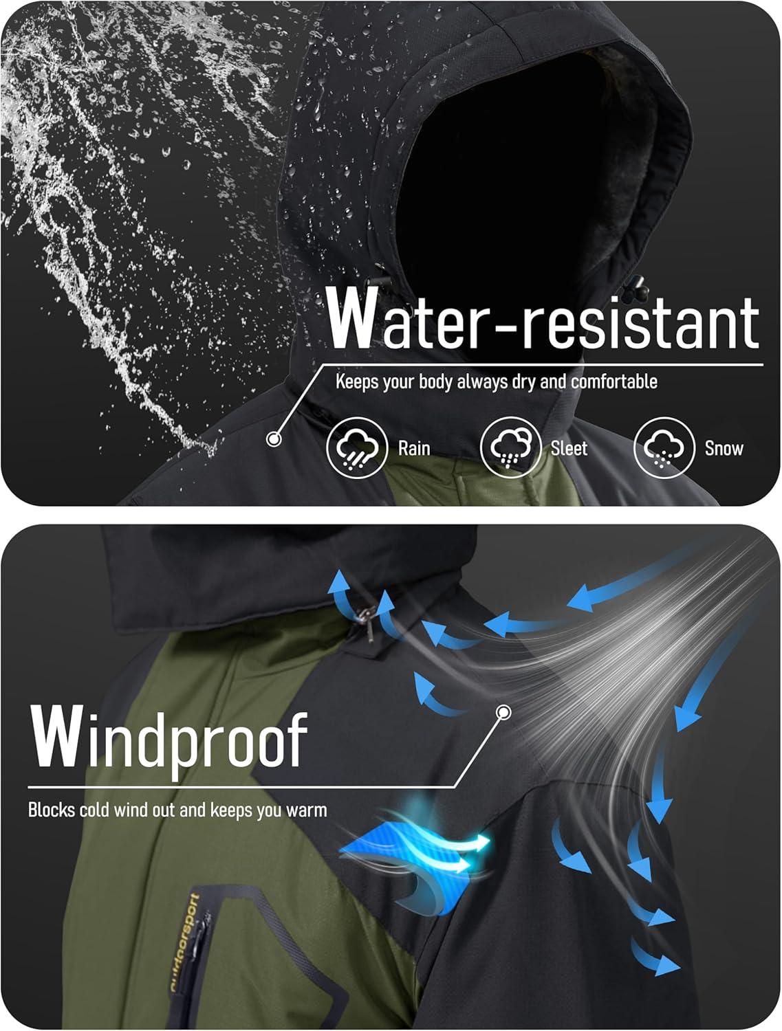 MAGCOMSEN Men’s Winter Coats Water Resistant Ski Snow Jacket Warm Fleece Jacket Parka Raincoats With Hood Multi-Pockets(Army Green)