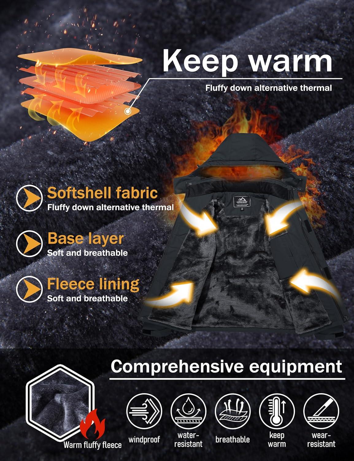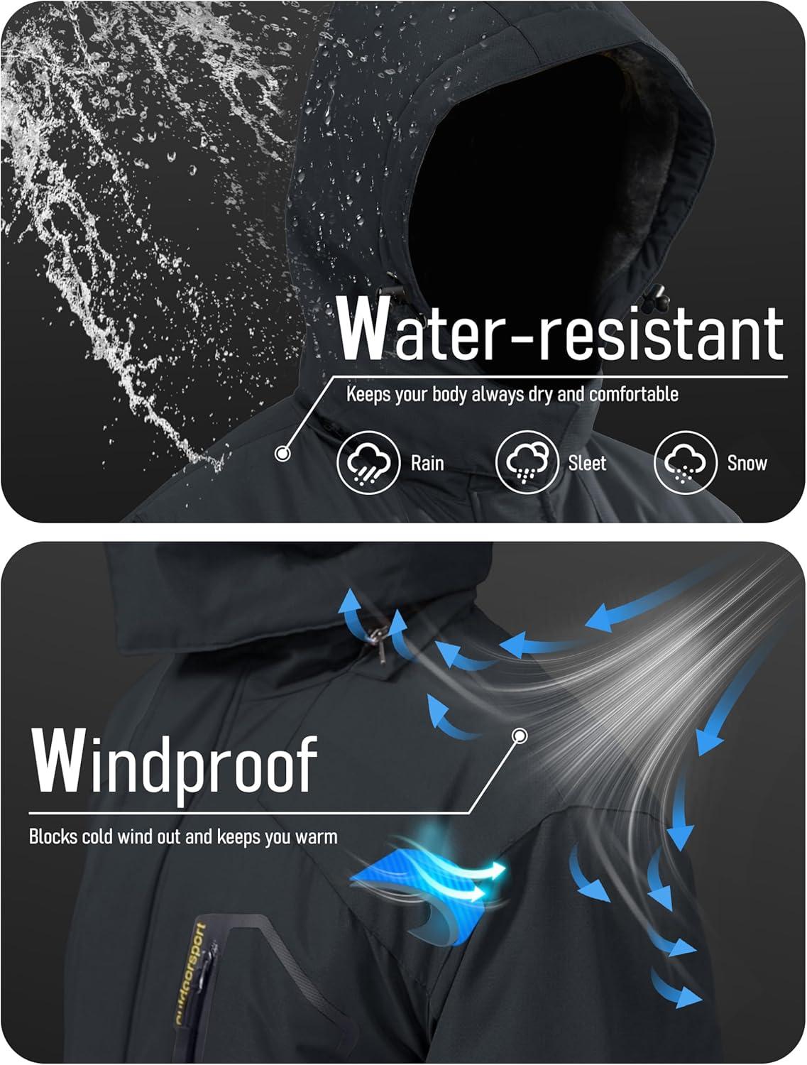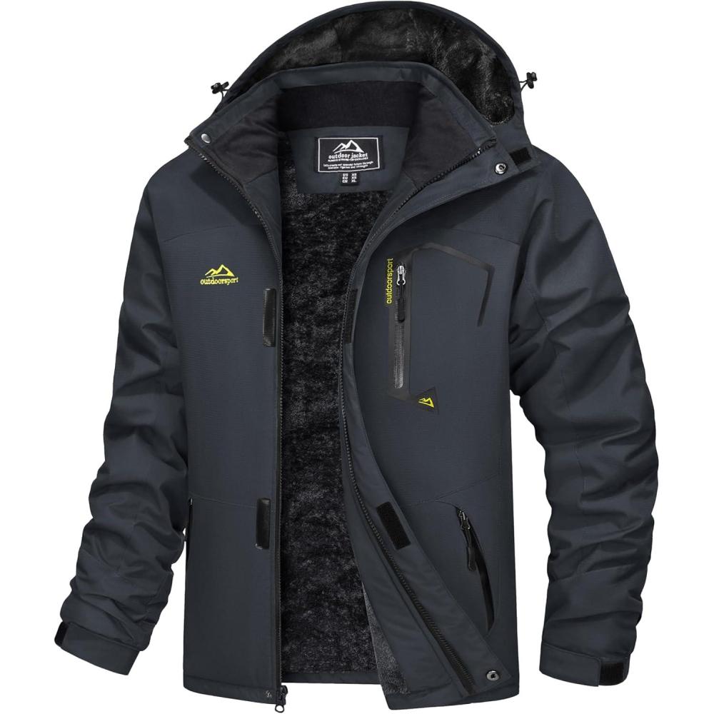 MAGCOMSEN Men’s Winter Coats Water Resistant Ski Snow Jacket Warm Fleece Jacket Parka Raincoats With Hood Multi-Pockets(Charcoal Grey)