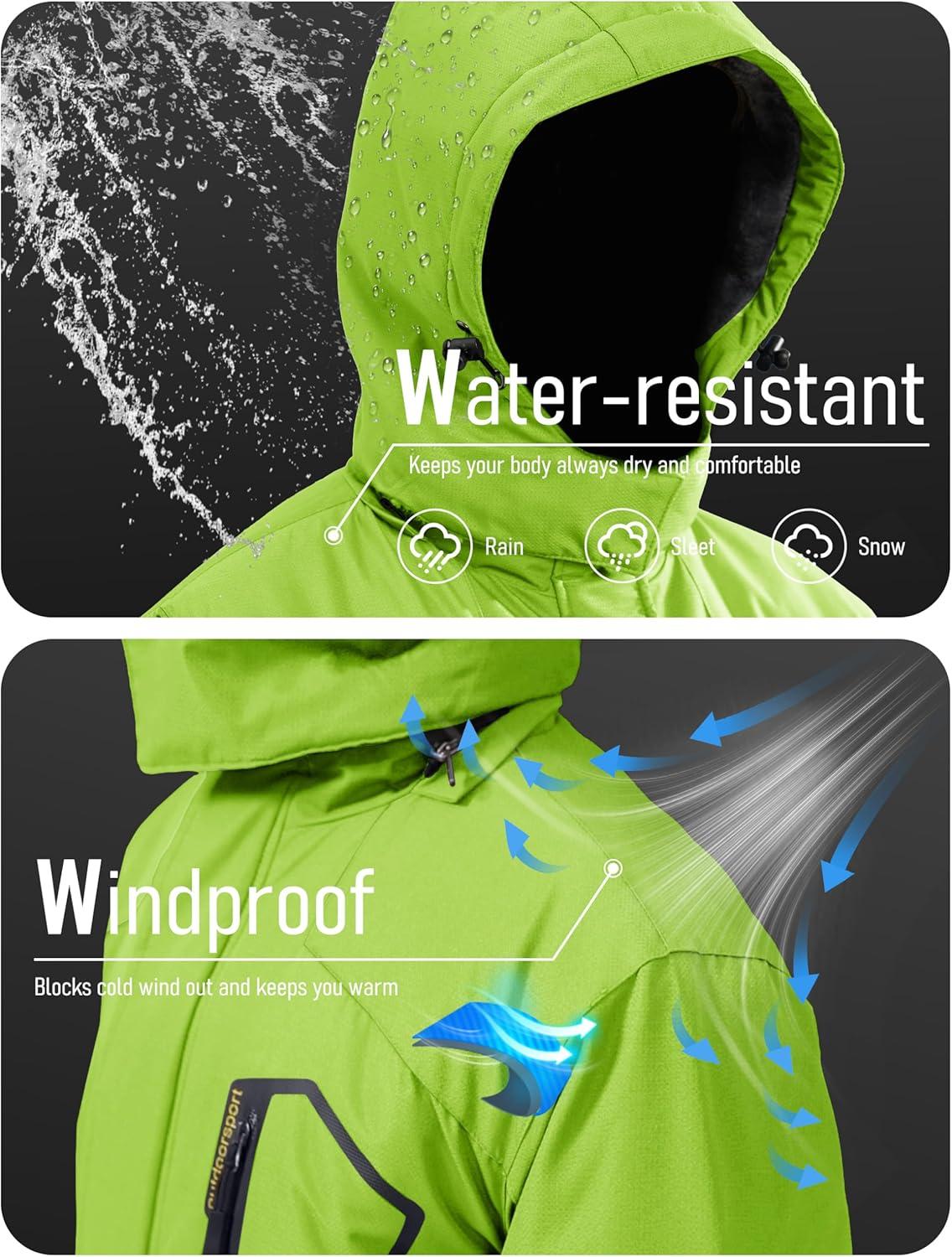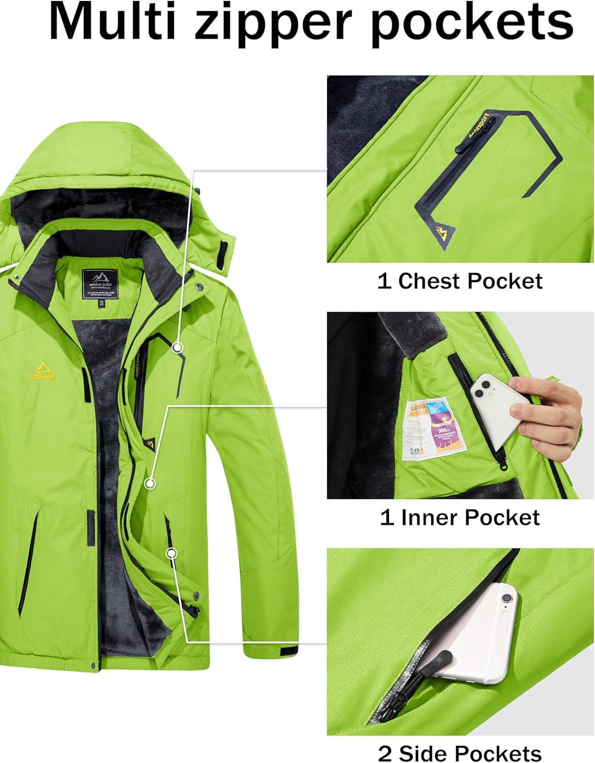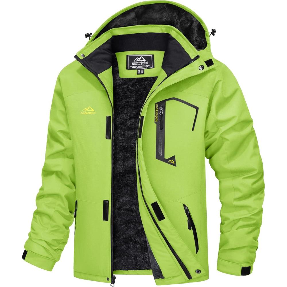 MAGCOMSEN Men’s Winter Coats Water Resistant Ski Snow Jacket Warm Fleece Jacket Parka Raincoats With Hood Multi-Pockets(Fl Green)