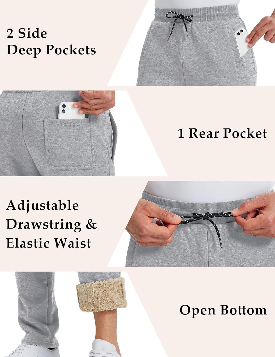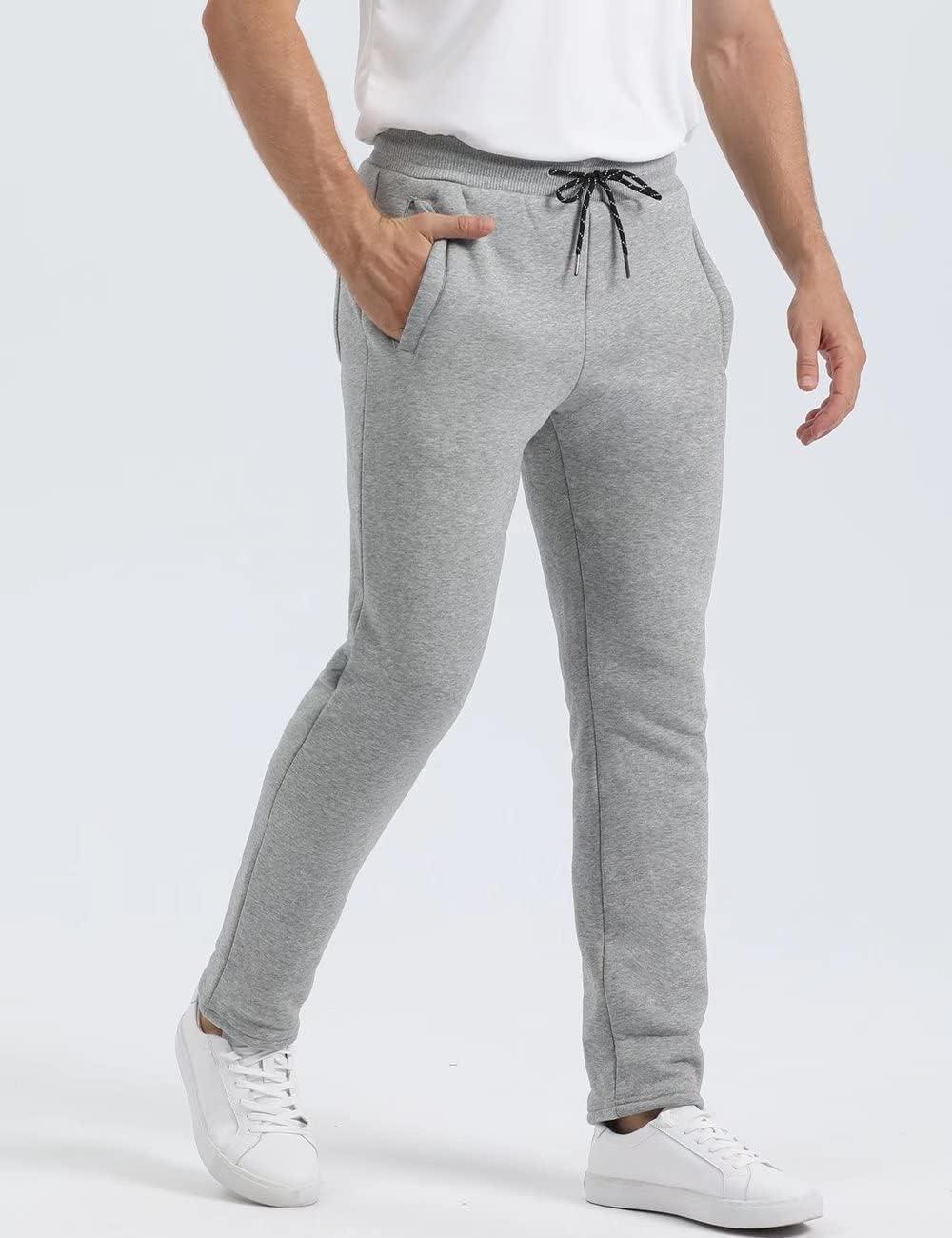 MAGCOMSEN Men’s Winter Fleece Pants Sherpa Lined Sweatpants Thermal Warm Thicken Pants Active Joggers with 3 Pockets(Light Grey)
