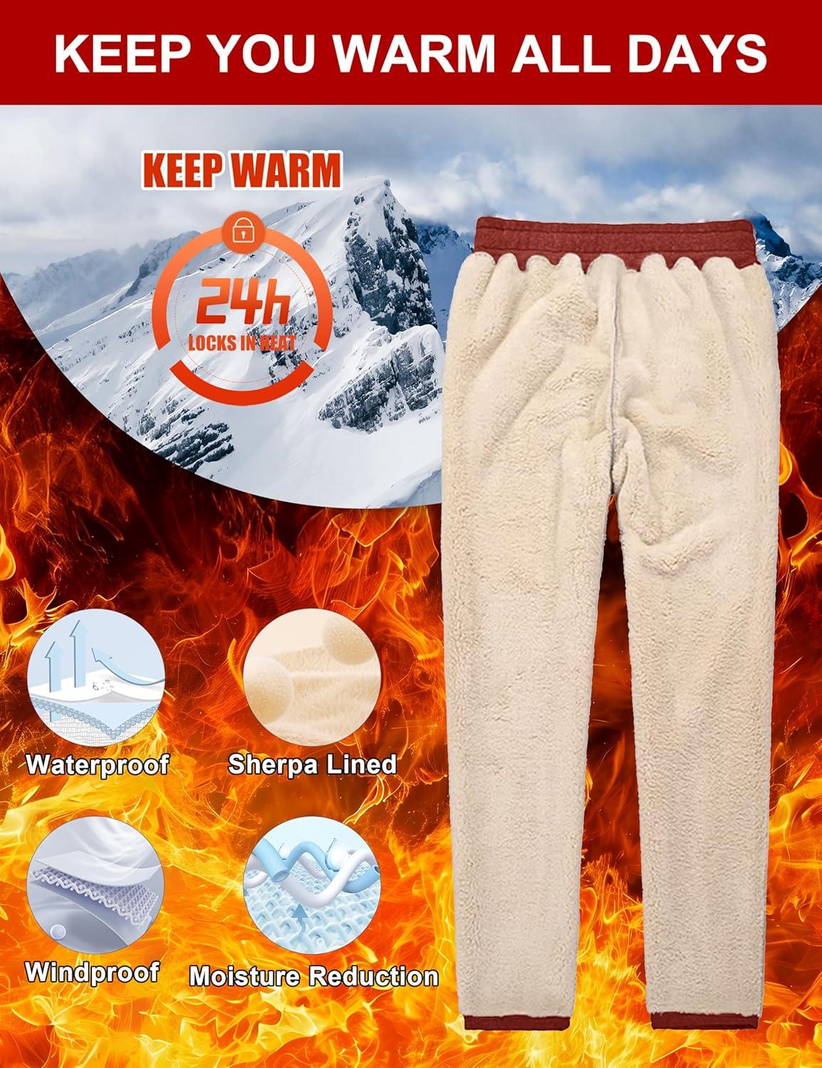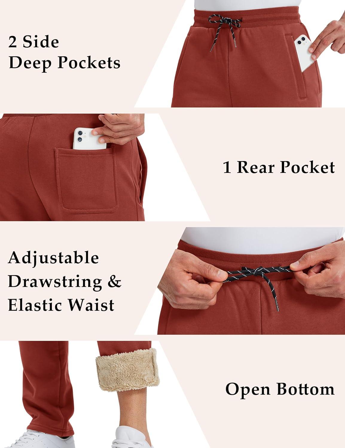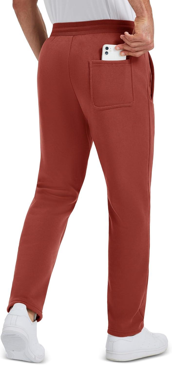 MAGCOMSEN Men’s Winter Fleece Pants Sherpa Lined Sweatpants Thermal Warm Thicken Pants Active Joggers with 3 Pockets(Orange Red)