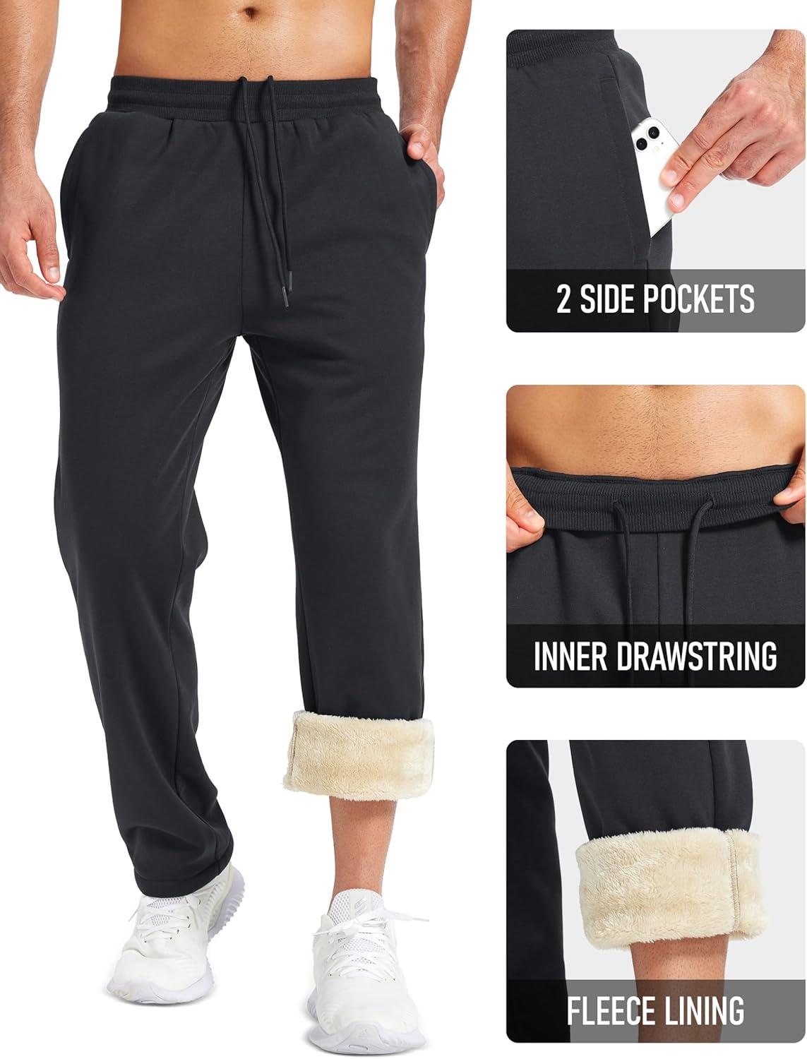 MAGCOMSEN Men’s Winter Fleece Pants Sherpa Lined Sweatpants with Pockets Drawstring Lounge Running Athletic Warm Pants(Black)