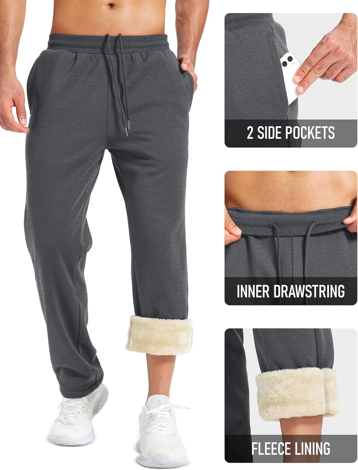 MAGCOMSEN Men’s Winter Fleece Pants Sherpa Lined Sweatpants with Pockets Drawstring Lounge Running Athletic Warm Pants(Dark Grey)