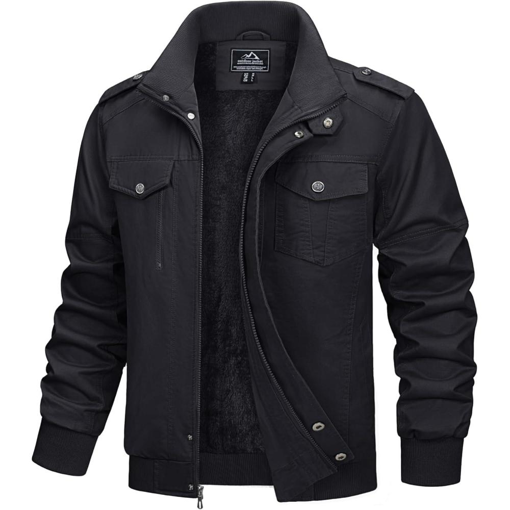 MAGCOMSEN Mens Winter Jacket Fleece Lined Work Jackets Waxed Canvas Shirt Jackets Warm Sherpa Trucker Military Jacket(Black)