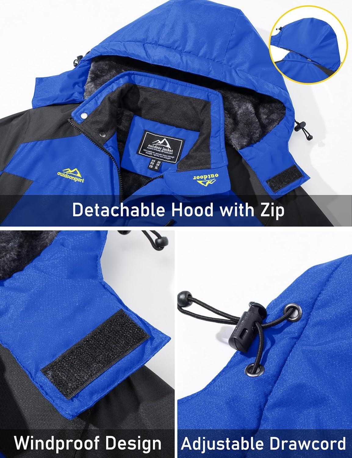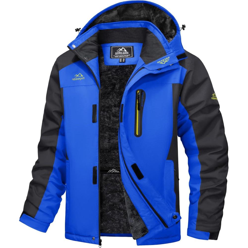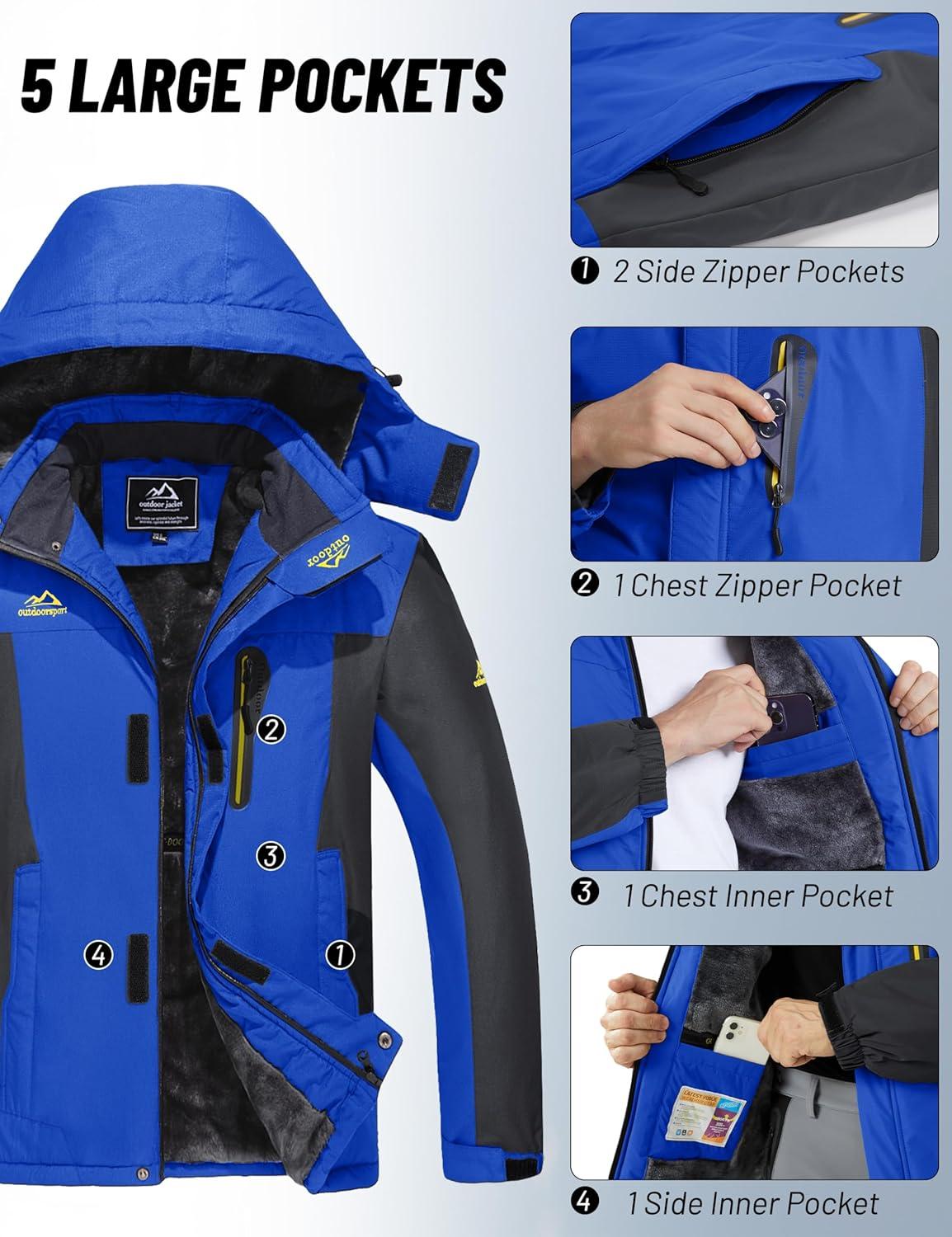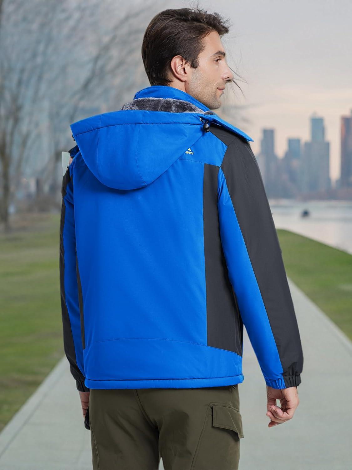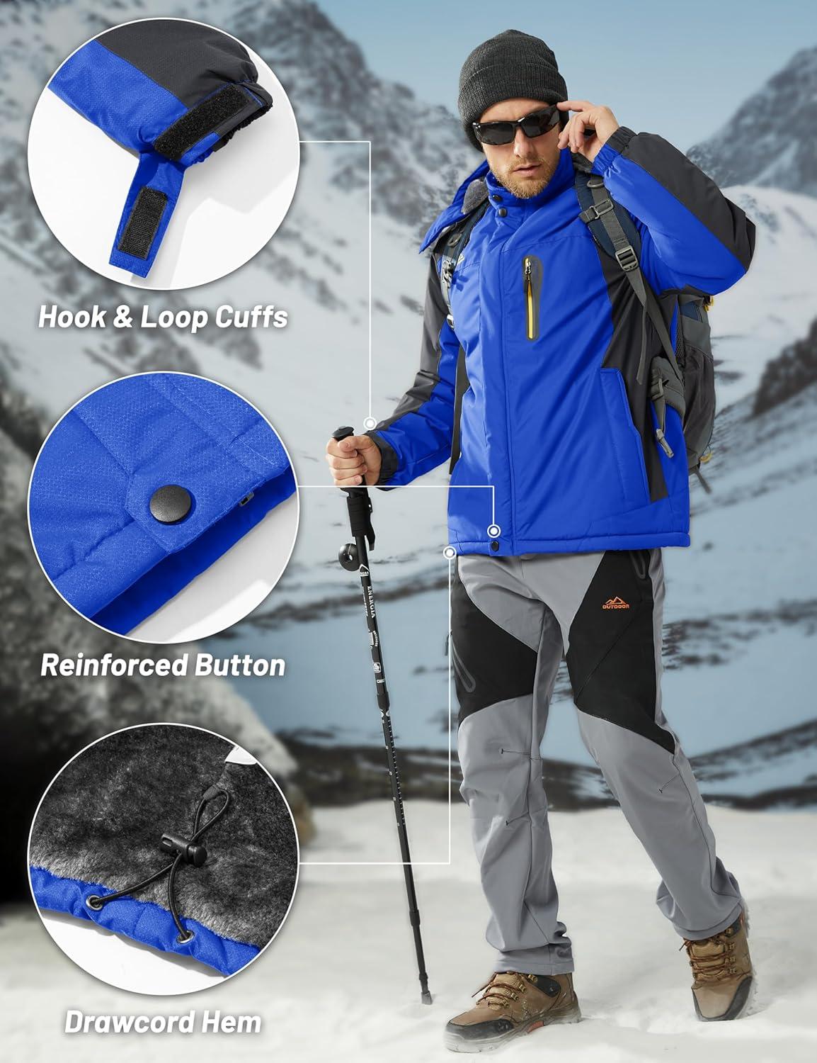 MAGCOMSEN Men’s Winter Jacket Ski Snow Waterproof Fleece Coats Snowboard Warm Parka Raincoats with Hood 5 Pockets(Blue)