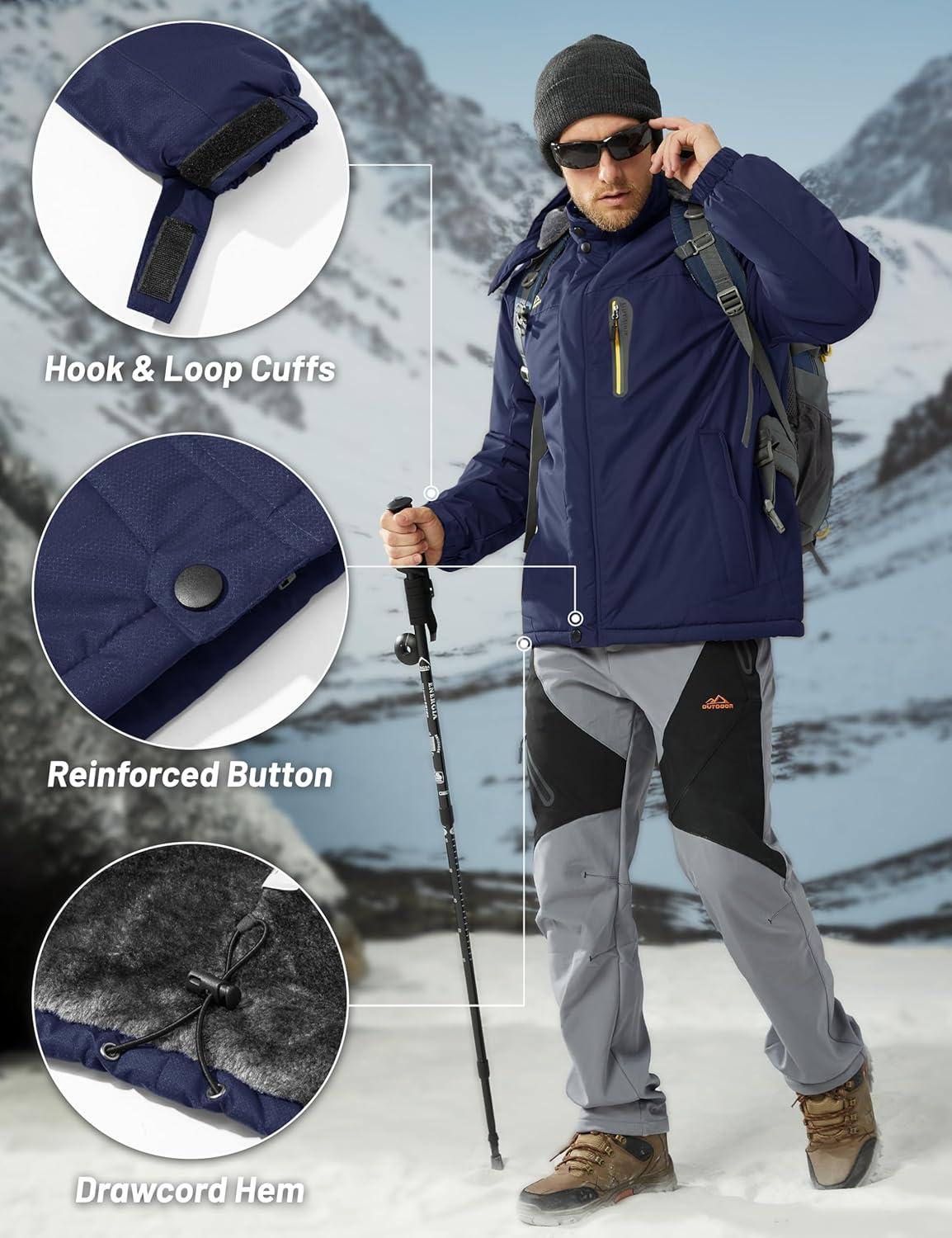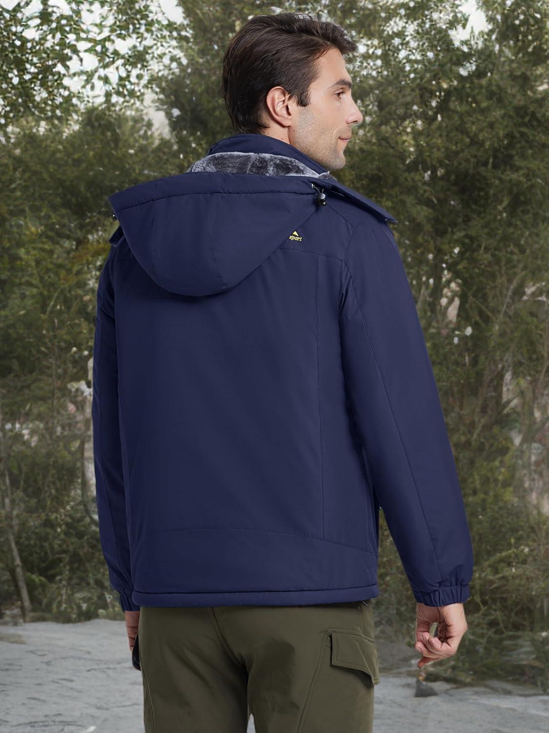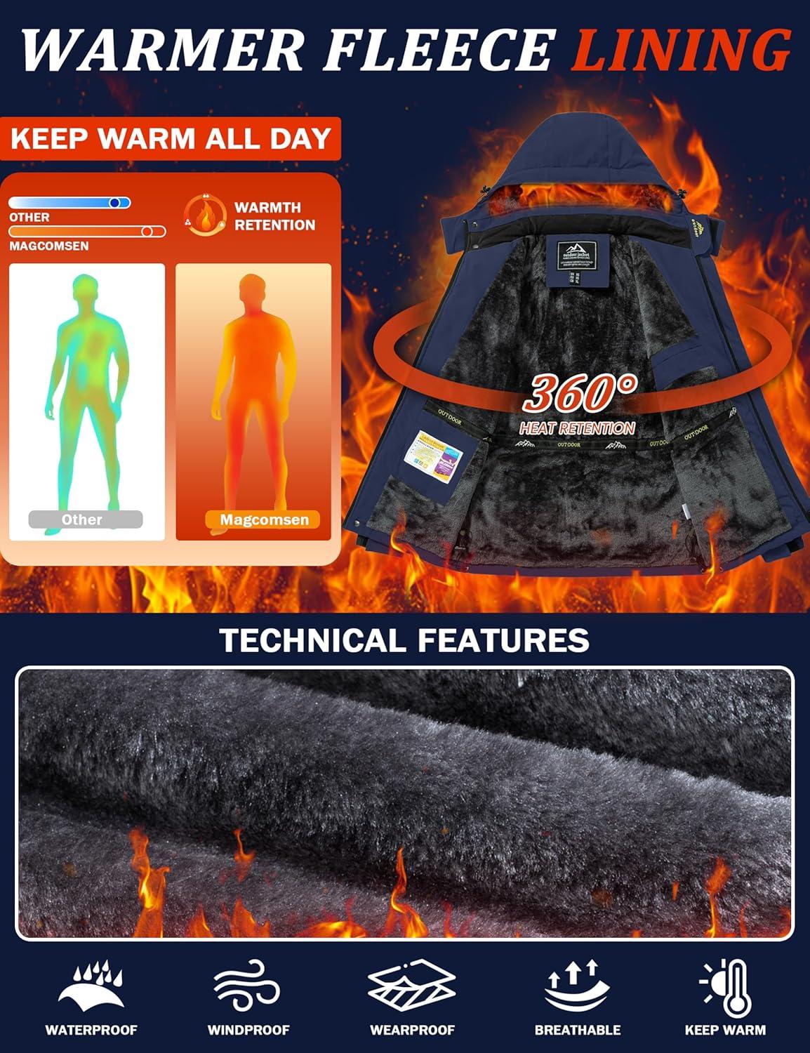 MAGCOMSEN Men’s Winter Jacket Ski Snow Waterproof Fleece Coats Snowboard Warm Parka Raincoats with Hood 5 Pockets(Dark Blue)