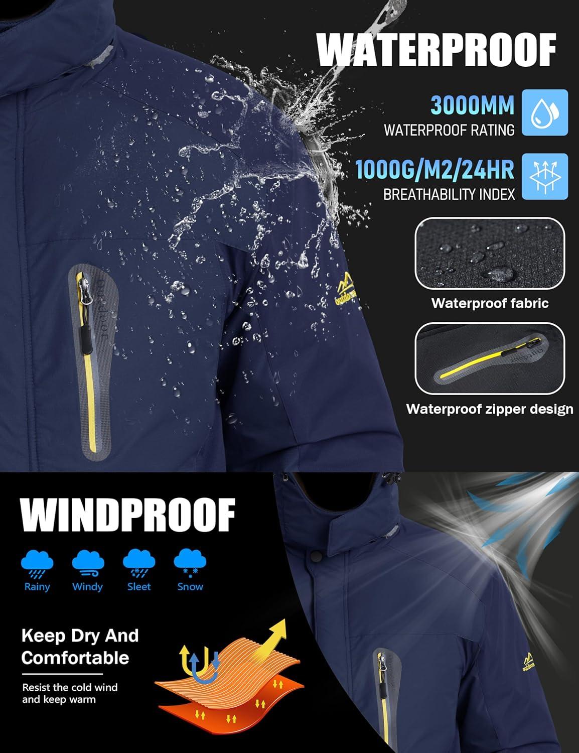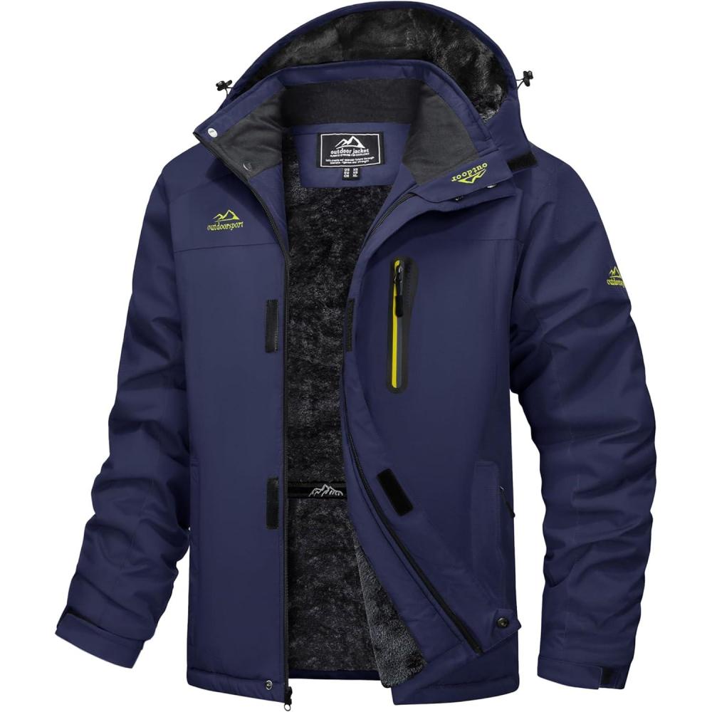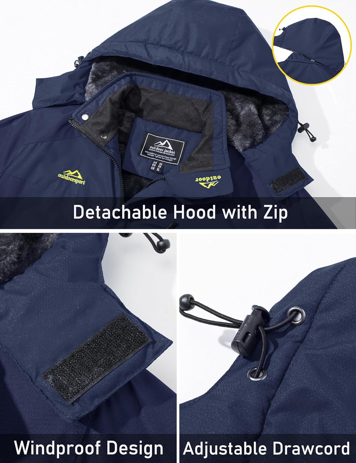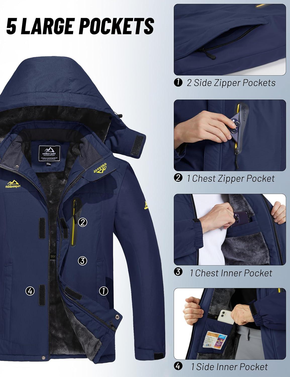 MAGCOMSEN Men’s Winter Jacket Ski Snow Waterproof Fleece Coats Snowboard Warm Parka Raincoats with Hood 5 Pockets(Dark Blue)