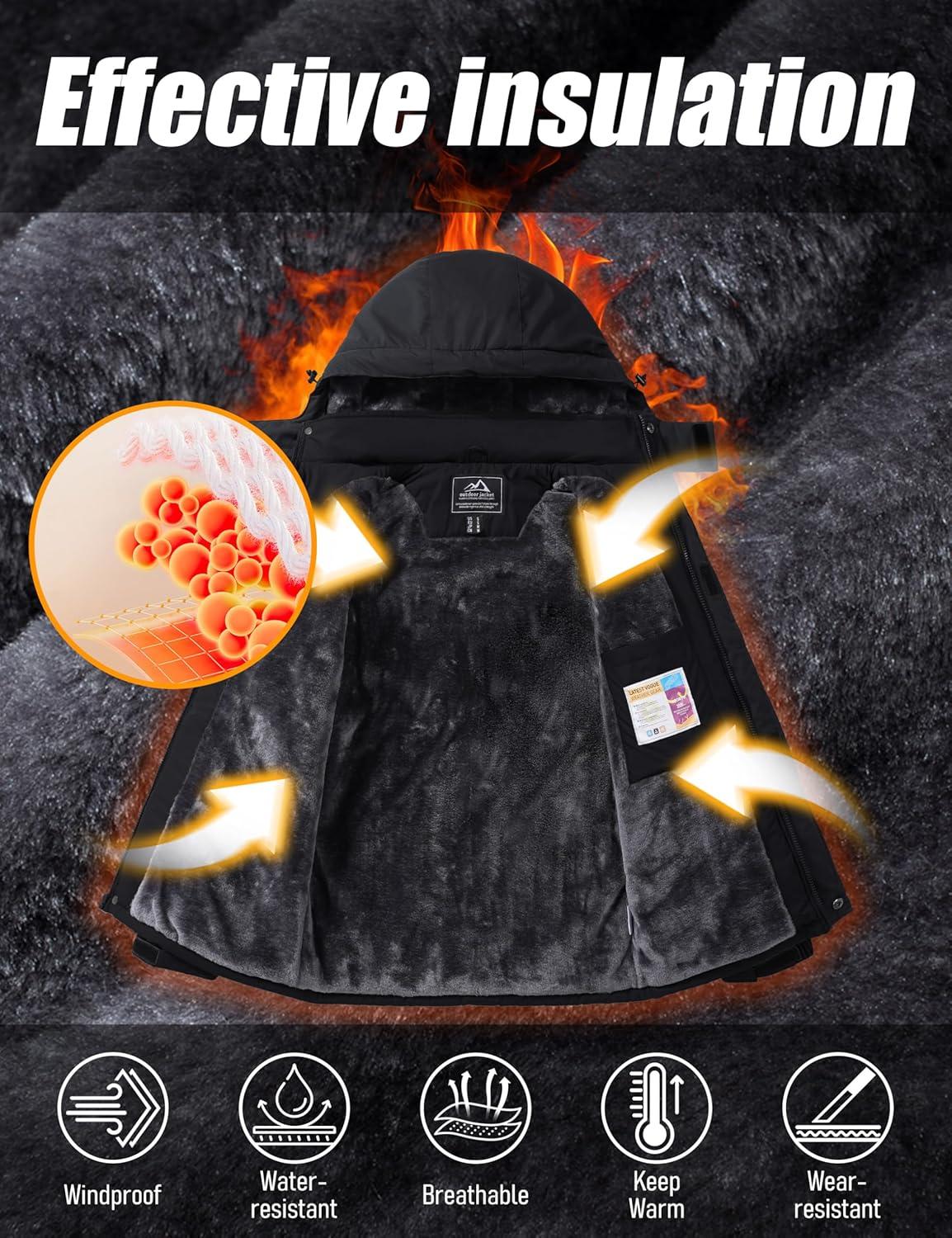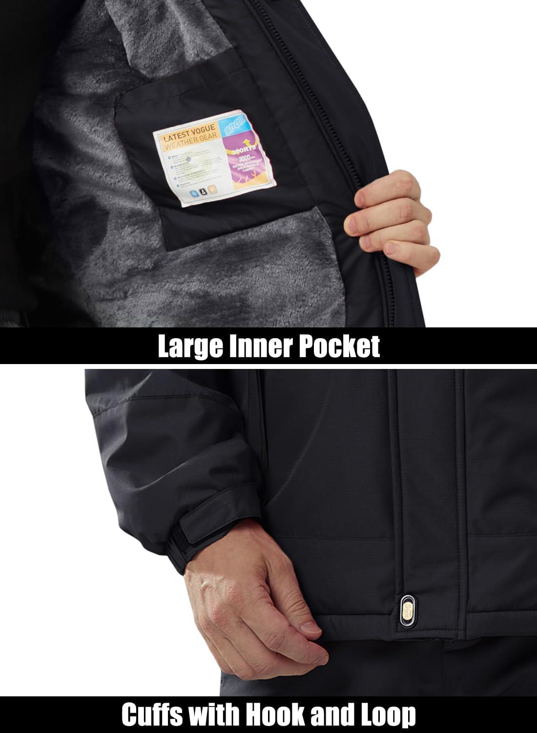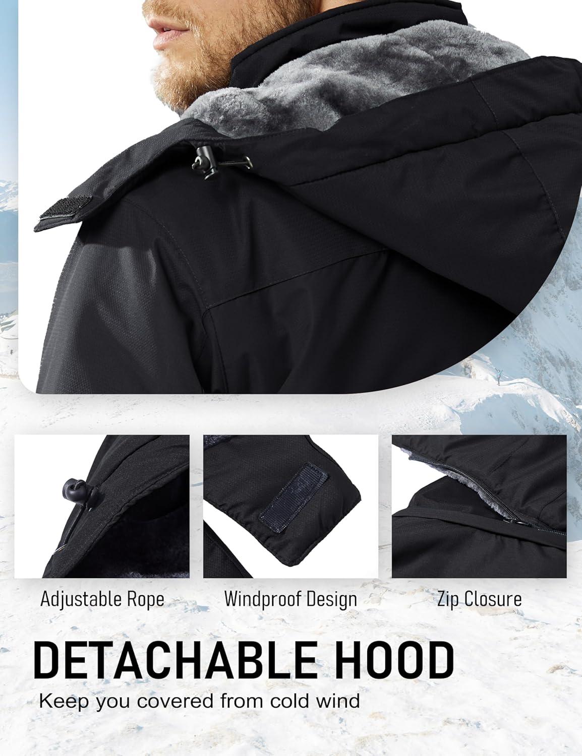 MAGCOMSEN Men’s Winter Jacket Water Resistant Ski Snow Coat Warm Fleece Parka Raincoats with Hood Multi-Pockets(Black)