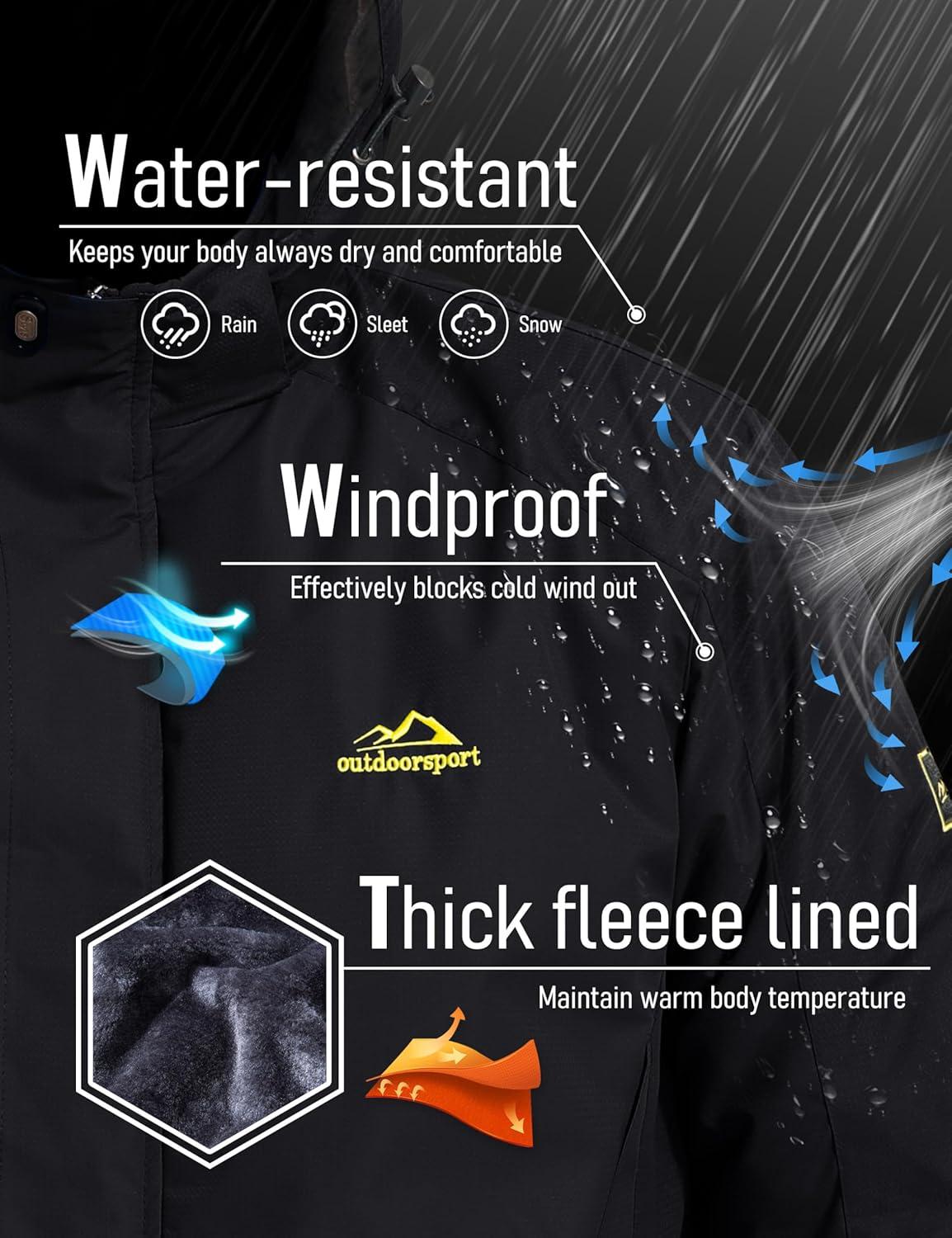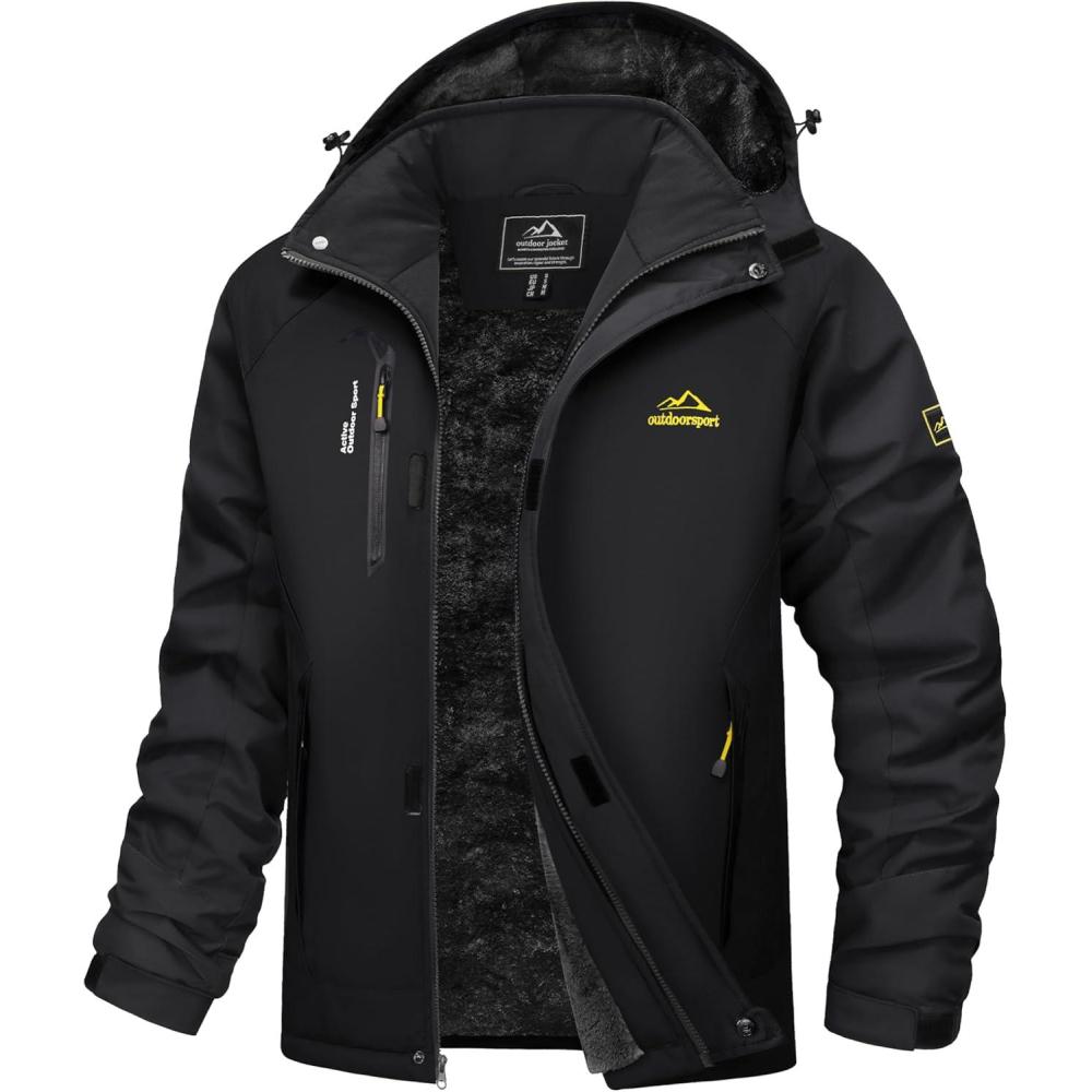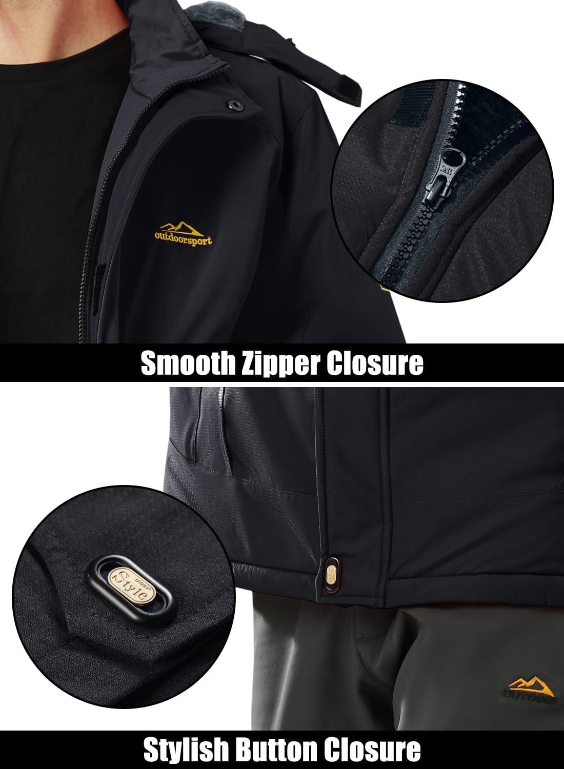 MAGCOMSEN Men’s Winter Jacket Water Resistant Ski Snow Coat Warm Fleece Parka Raincoats with Hood Multi-Pockets(Black)