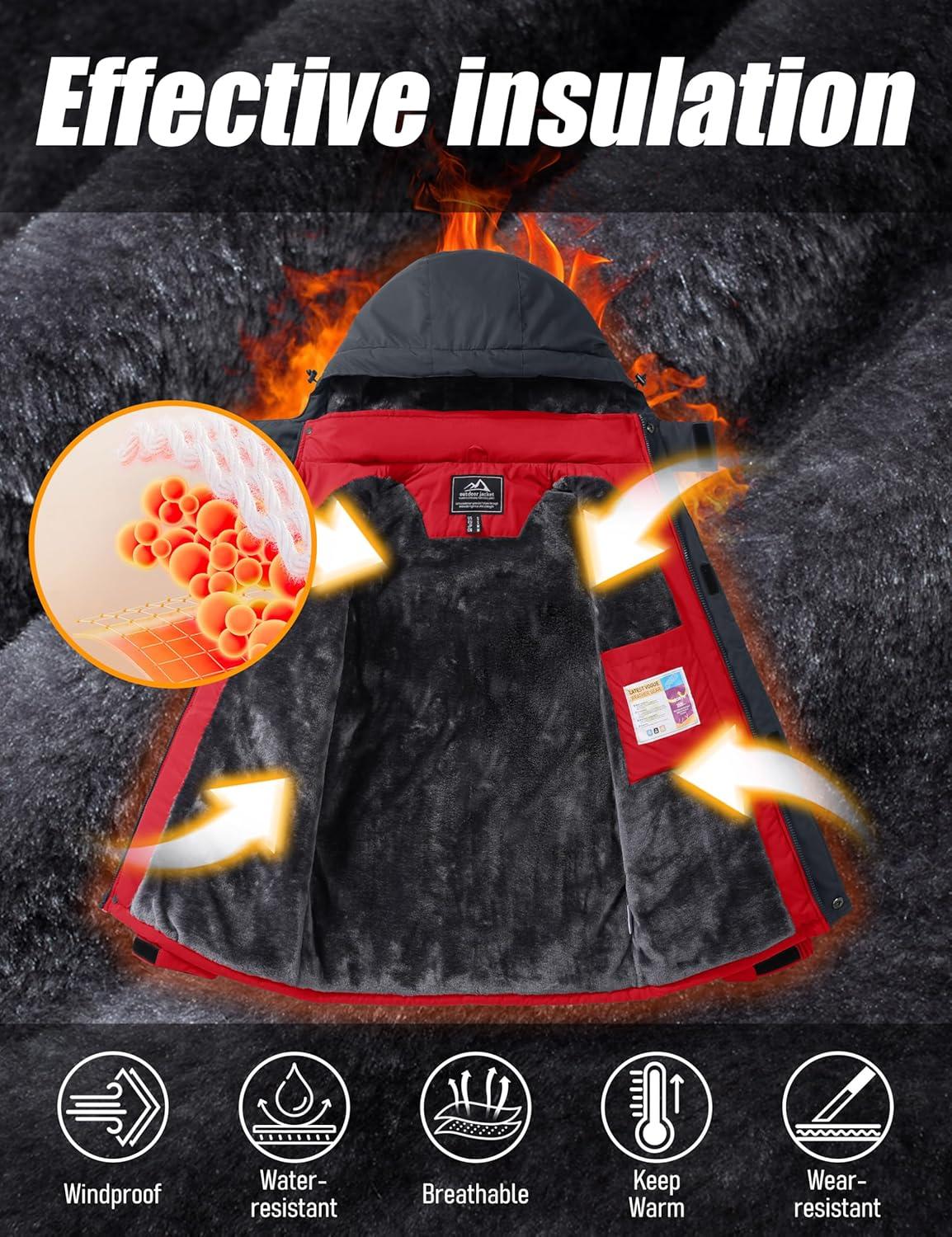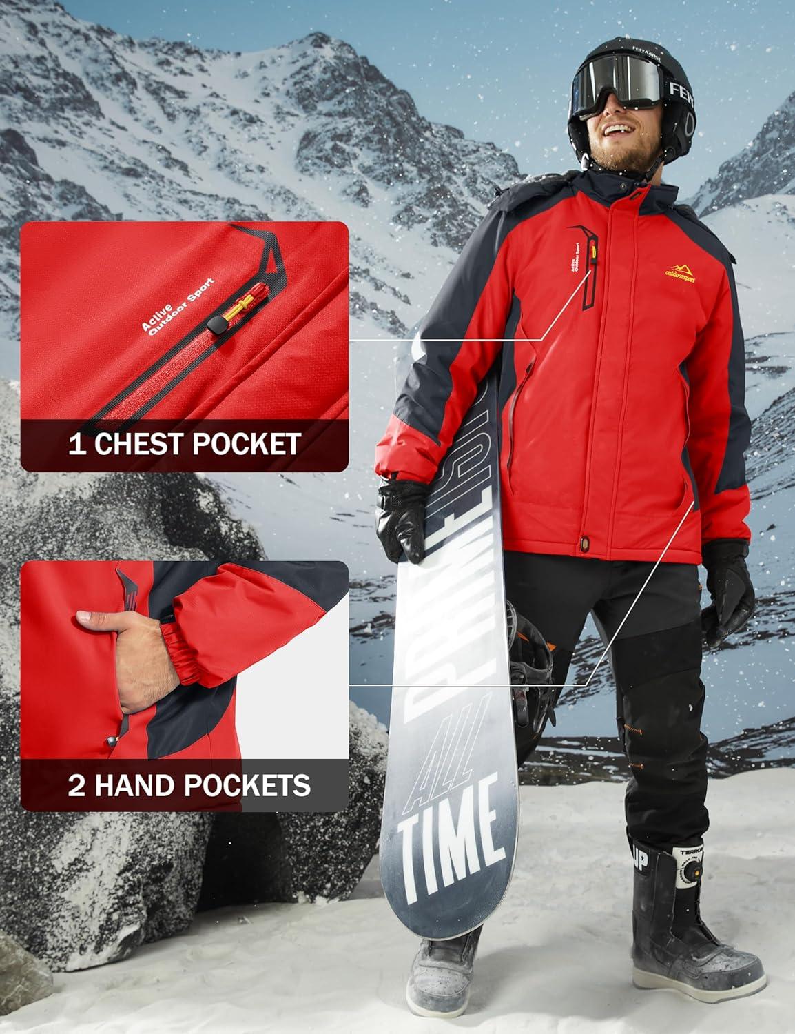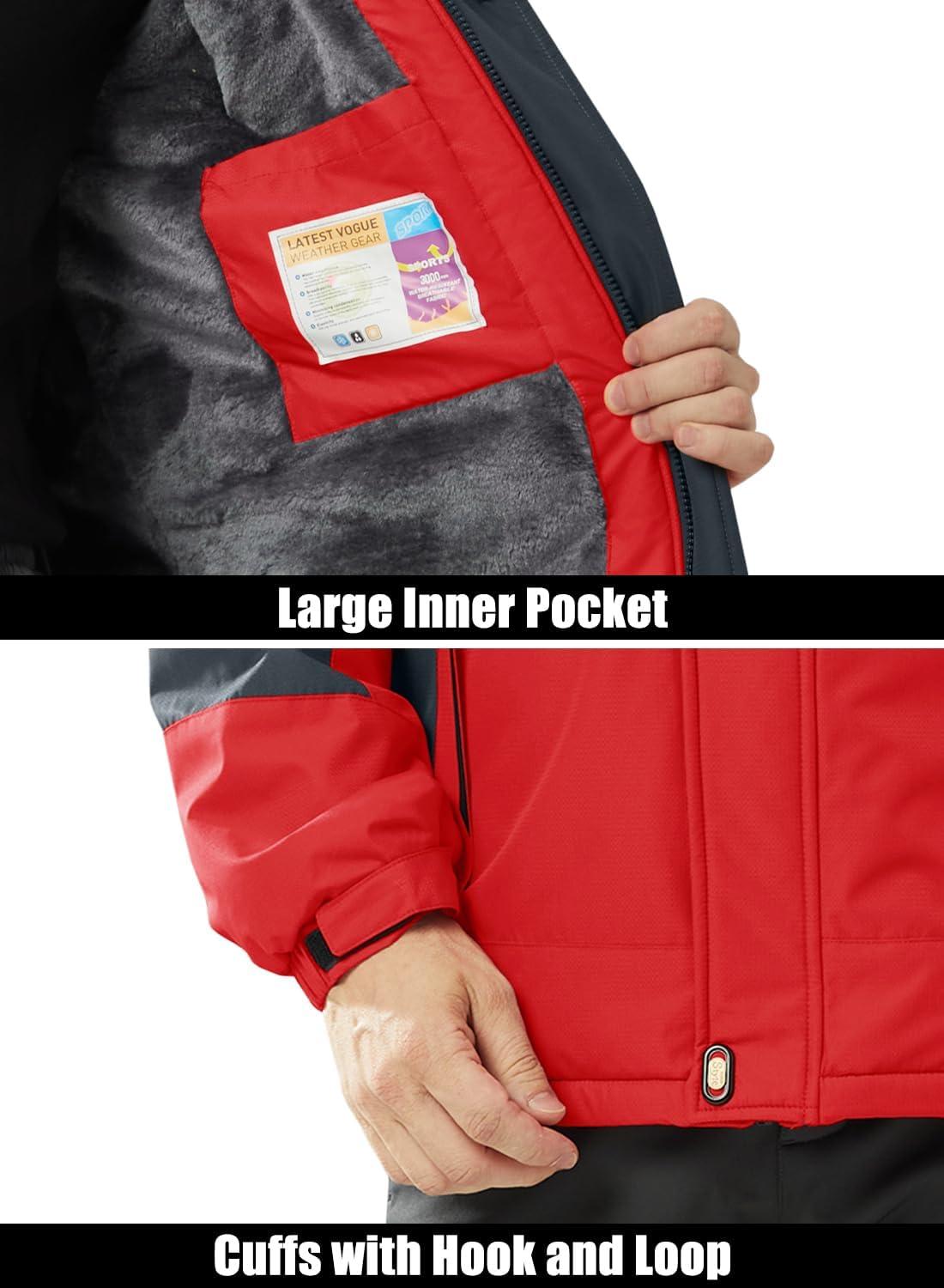 MAGCOMSEN Men’s Winter Jacket Water Resistant Ski Snow Coat Warm Fleece Parka Raincoats with Hood Multi-Pockets(Red)