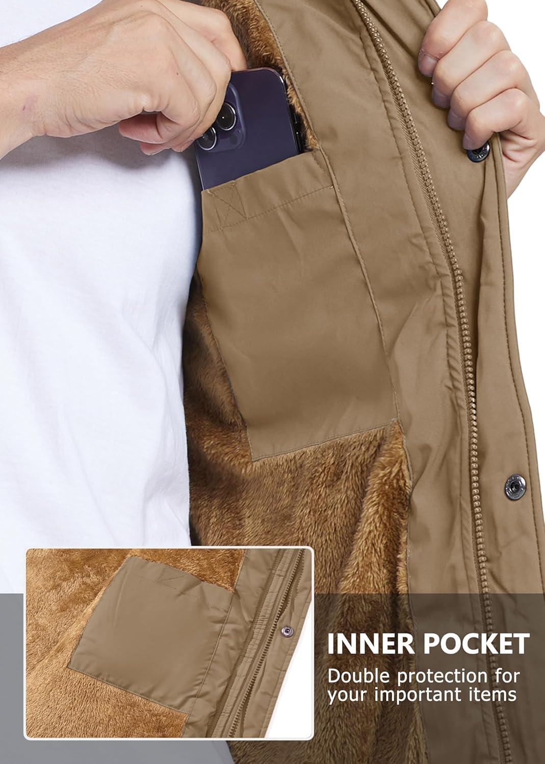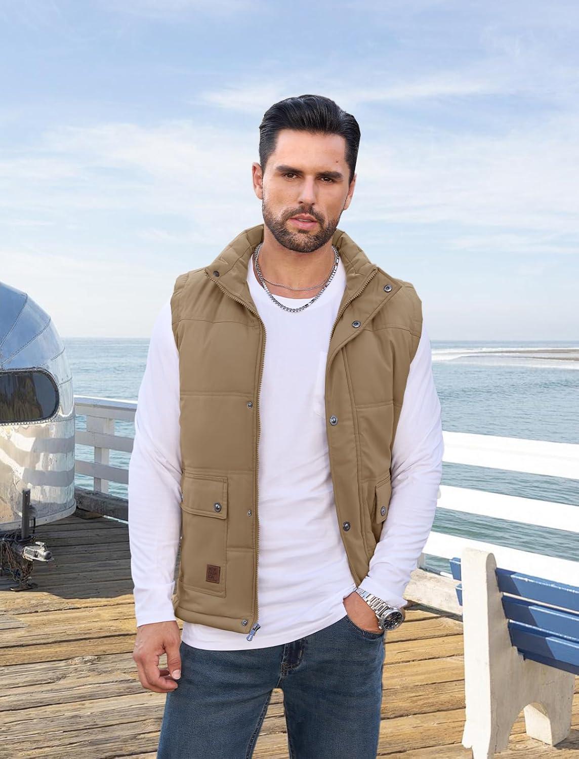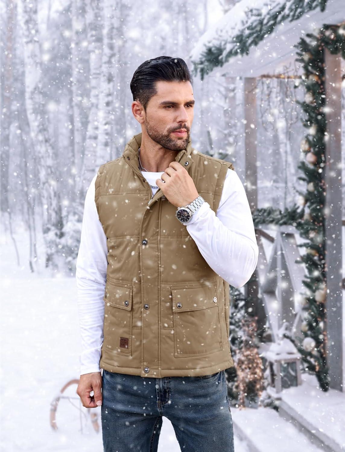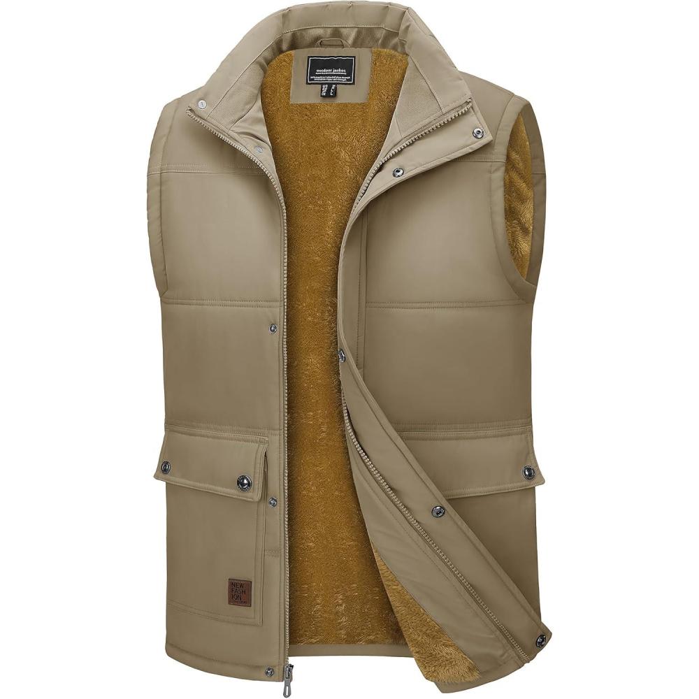 MAGCOMSEN Men’s Winter Vest Outerwear Fleece Lined Outdoor Vest Warm Sleeveless Jacket(Khaki)