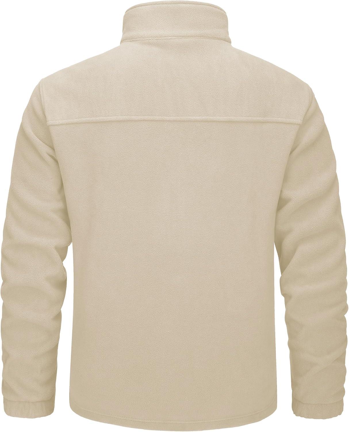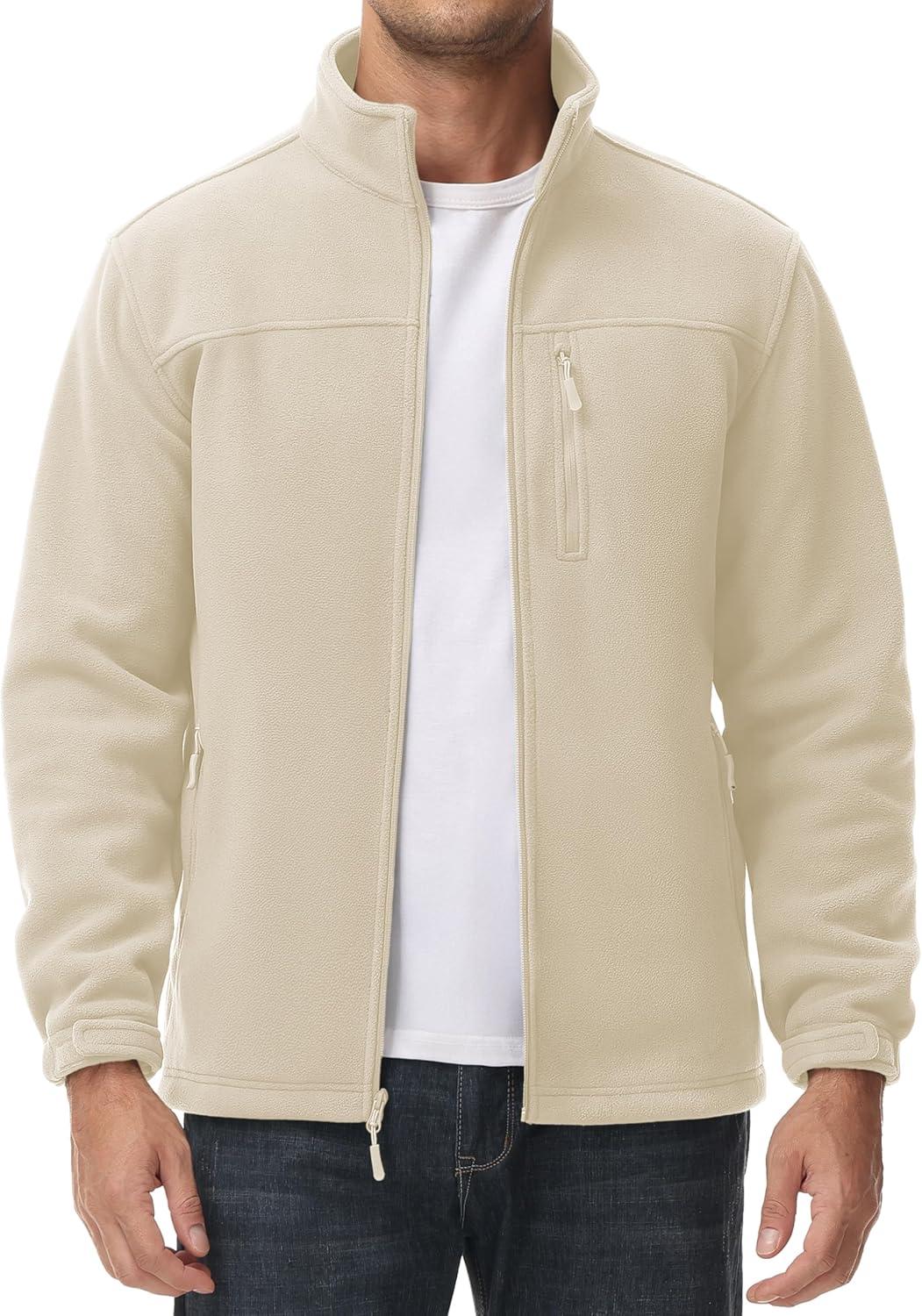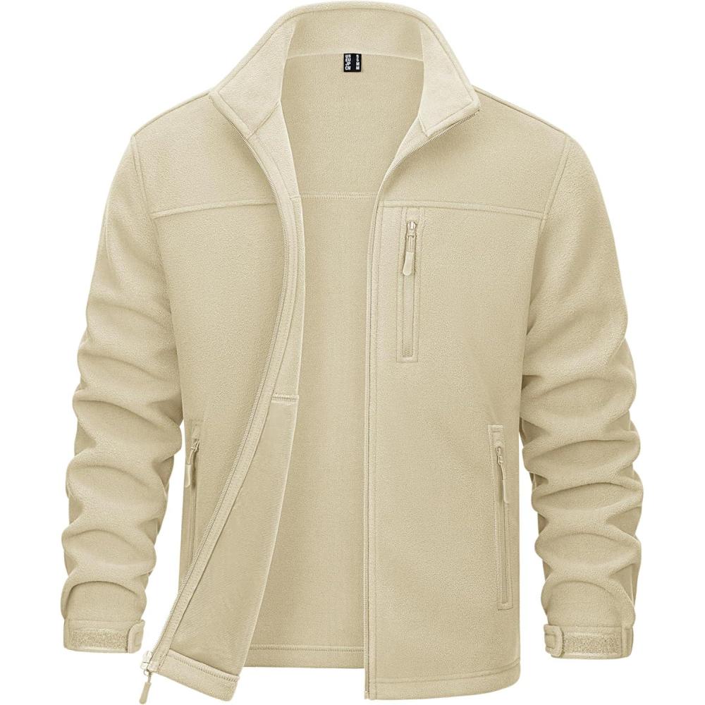 MAGCOMSEN Men’s Winter Zip Up Polar Fleece Jacket Athletic Tactical Hiking Outdoor Jackets with 3 Pockets(Cream)