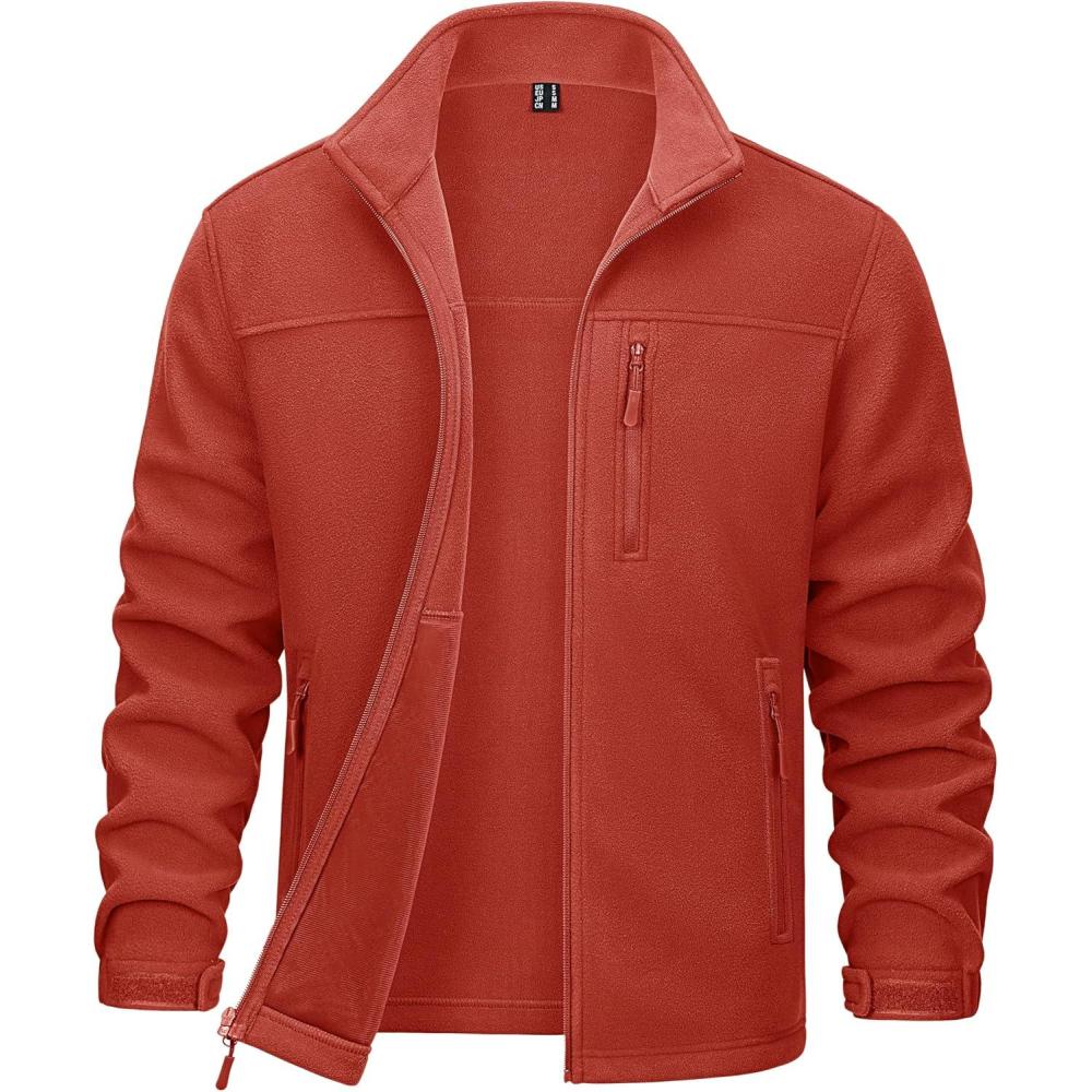 MAGCOMSEN Men’s Winter Zip Up Polar Fleece Jacket Athletic Tactical Hiking Outdoor Jackets with 3 Pockets(Orange Red)