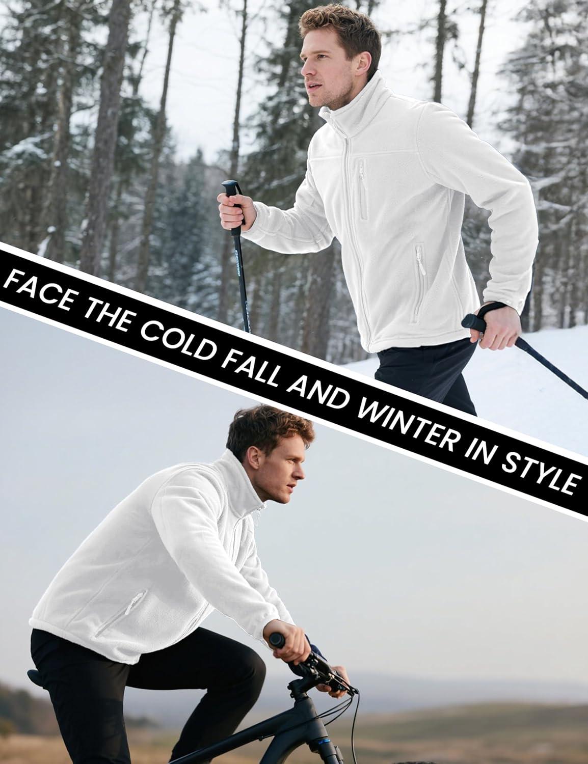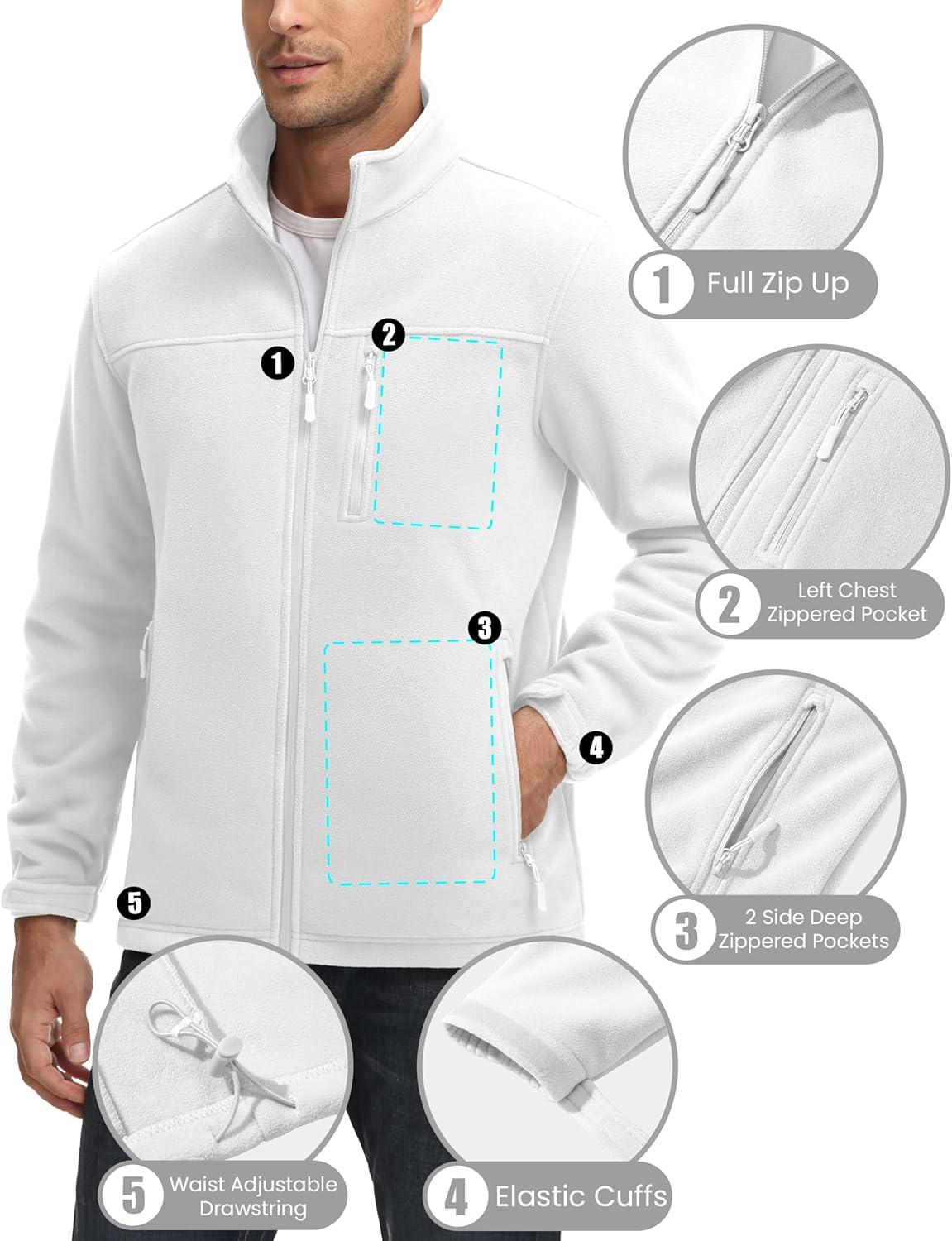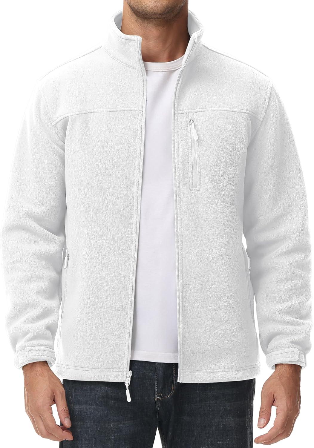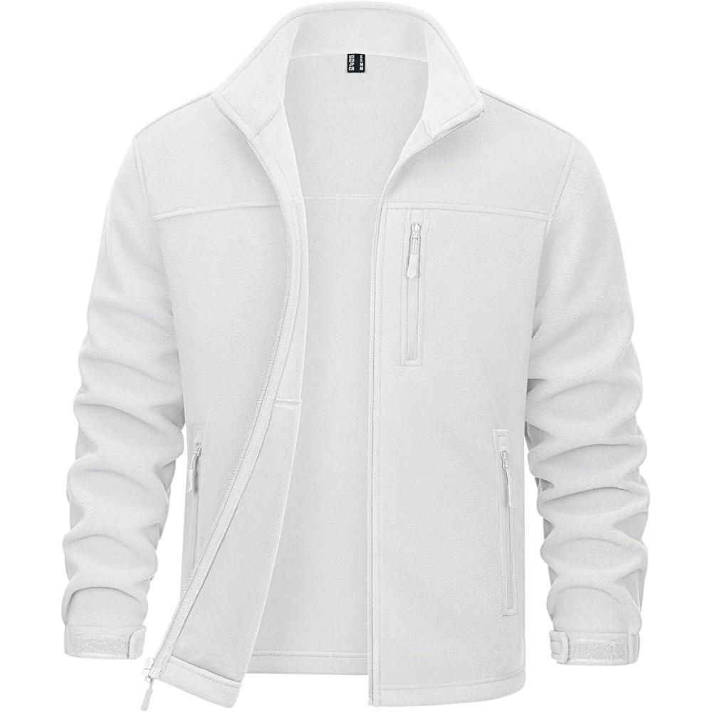 MAGCOMSEN Men’s Winter Zip Up Polar Fleece Jacket Athletic Tactical Hiking Outdoor Jackets with 3 Pockets(White)