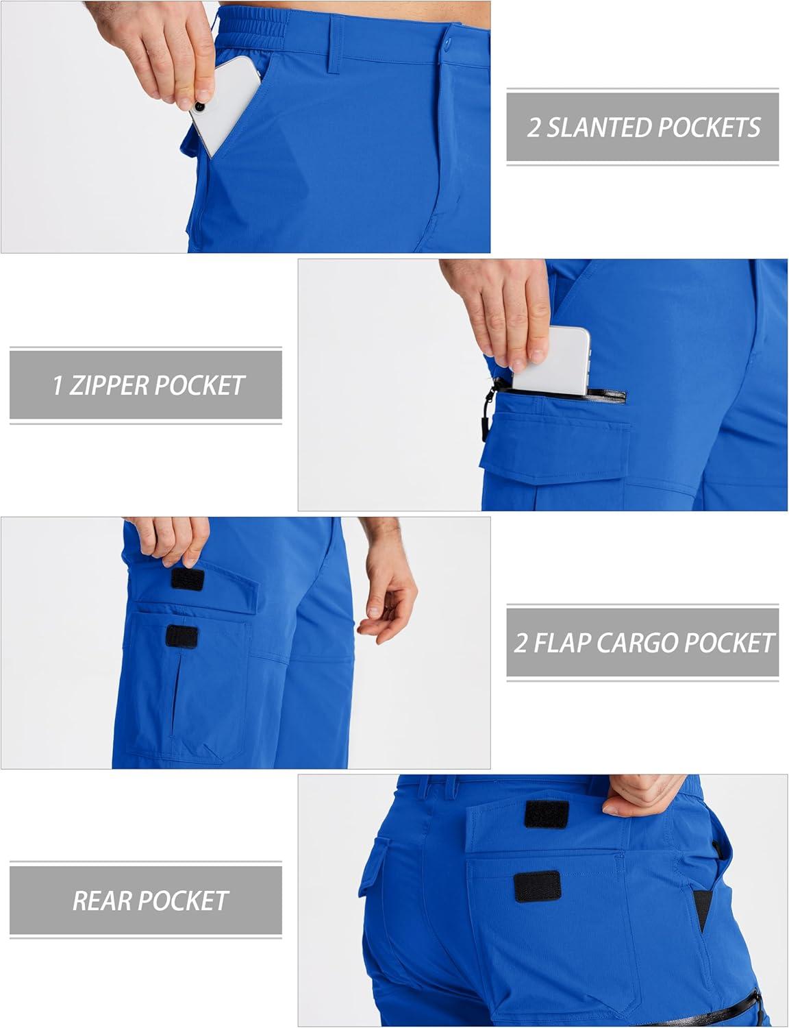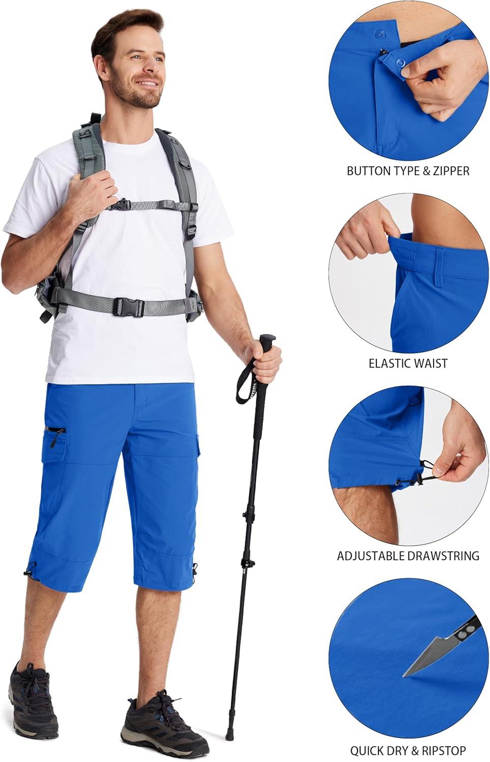 MAGCOMSEN Men’s Workout Shorts 7 Pockets Quick Dry 3/4 Capri Pants Zipper Pockets Hiking Athletic Shorts(Bright Blue)