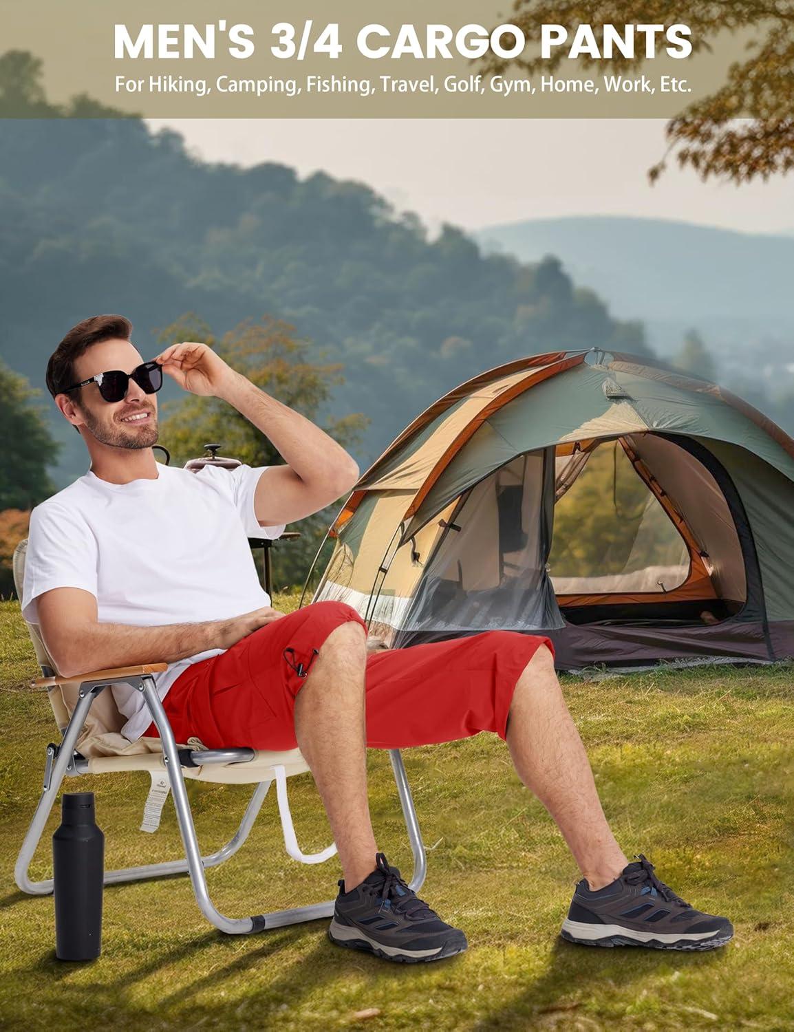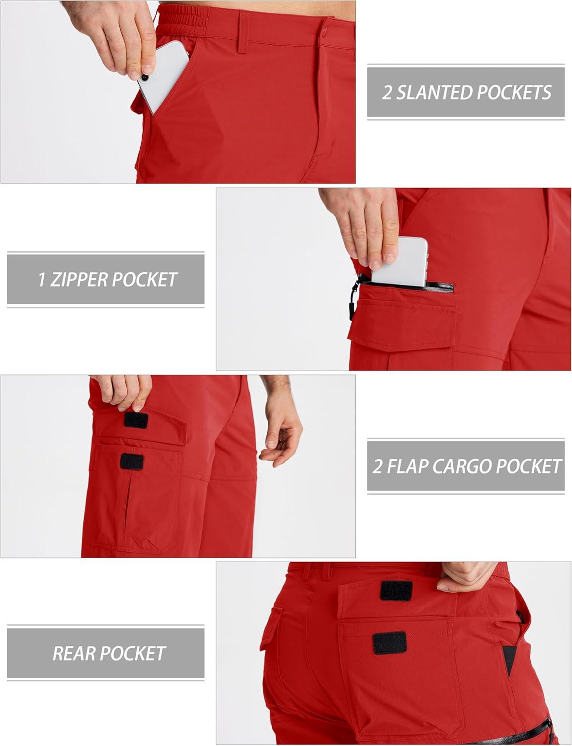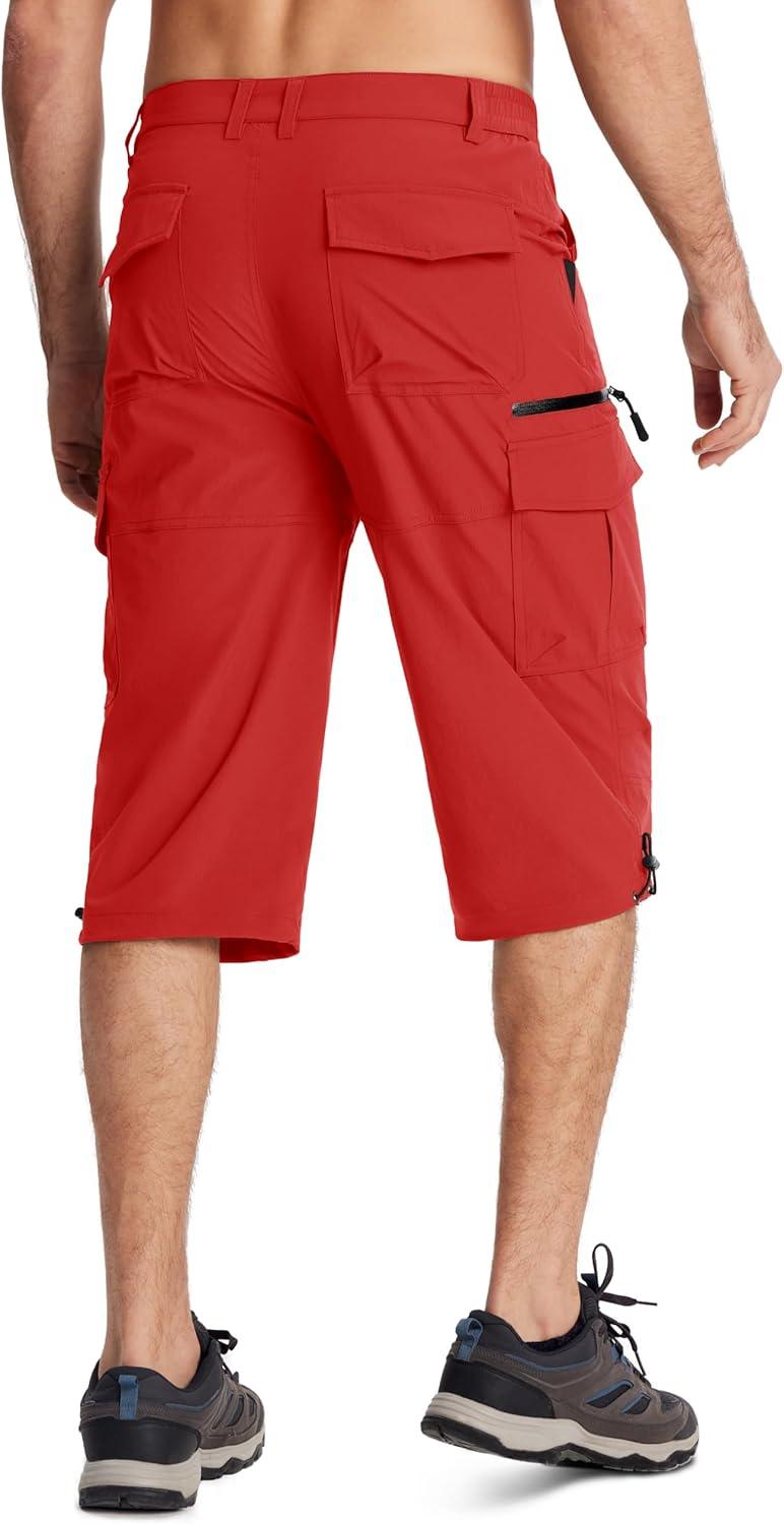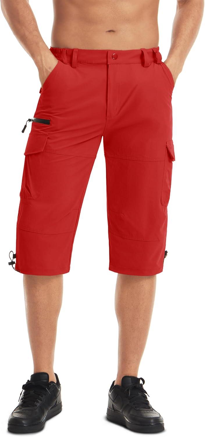 MAGCOMSEN Men’s Workout Shorts 7 Pockets Quick Dry 3/4 Capri Pants Zipper Pockets Hiking Athletic Shorts(Tomato Red)