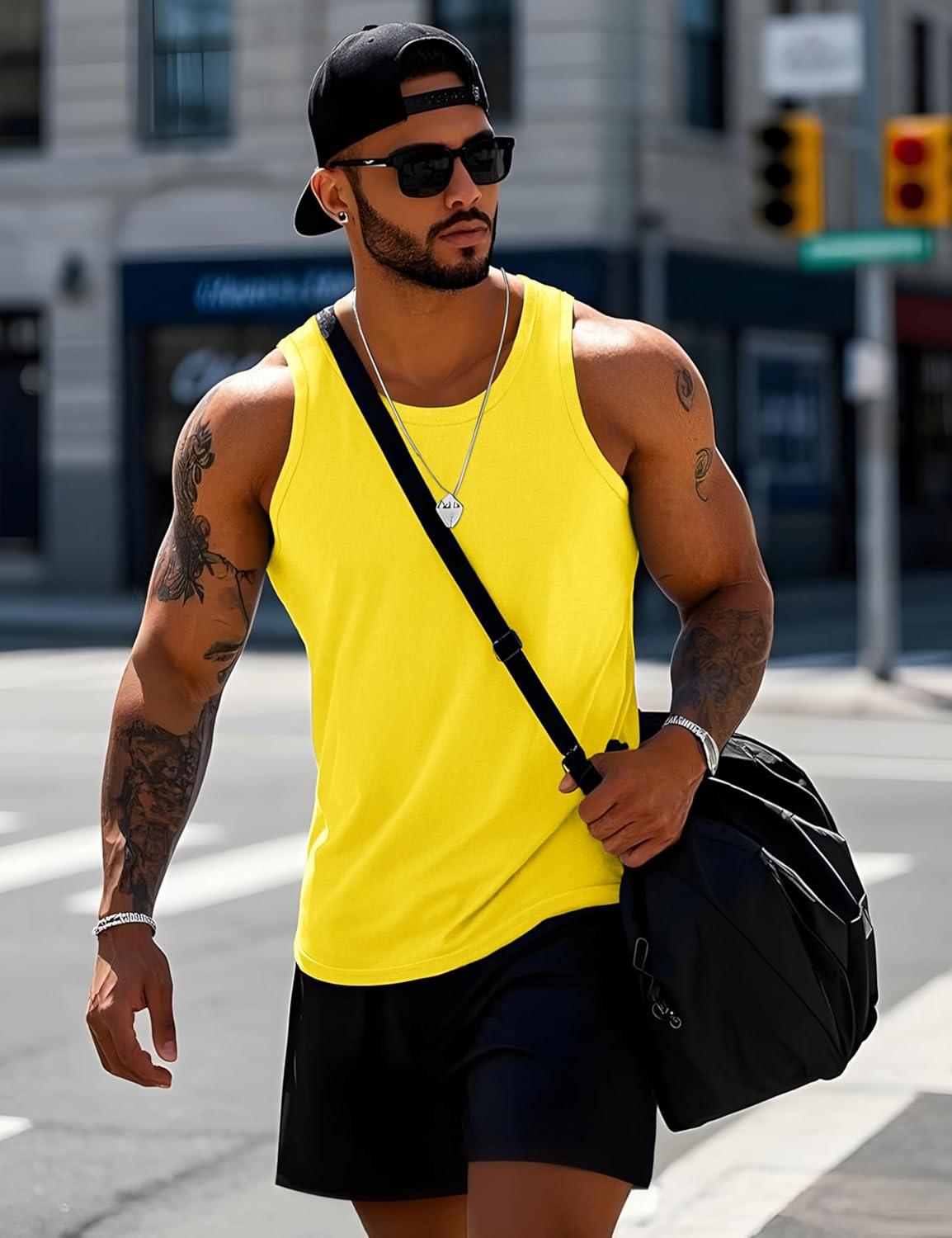 MAGCOMSEN Mens Workout Tank Tops Undershirt Cotton Muscle Athletic Sleeveless Shirts for Gym(#07-yellow)