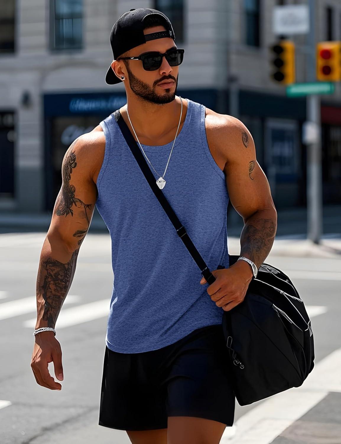 Get your hands on our exclusive MAGCOMSEN Mens Workout Tank Tops Undershirt Cotton Muscle Athletic Sleeveless Shirts for Gym(#14-grey Blue) collection, now at a discounted price.