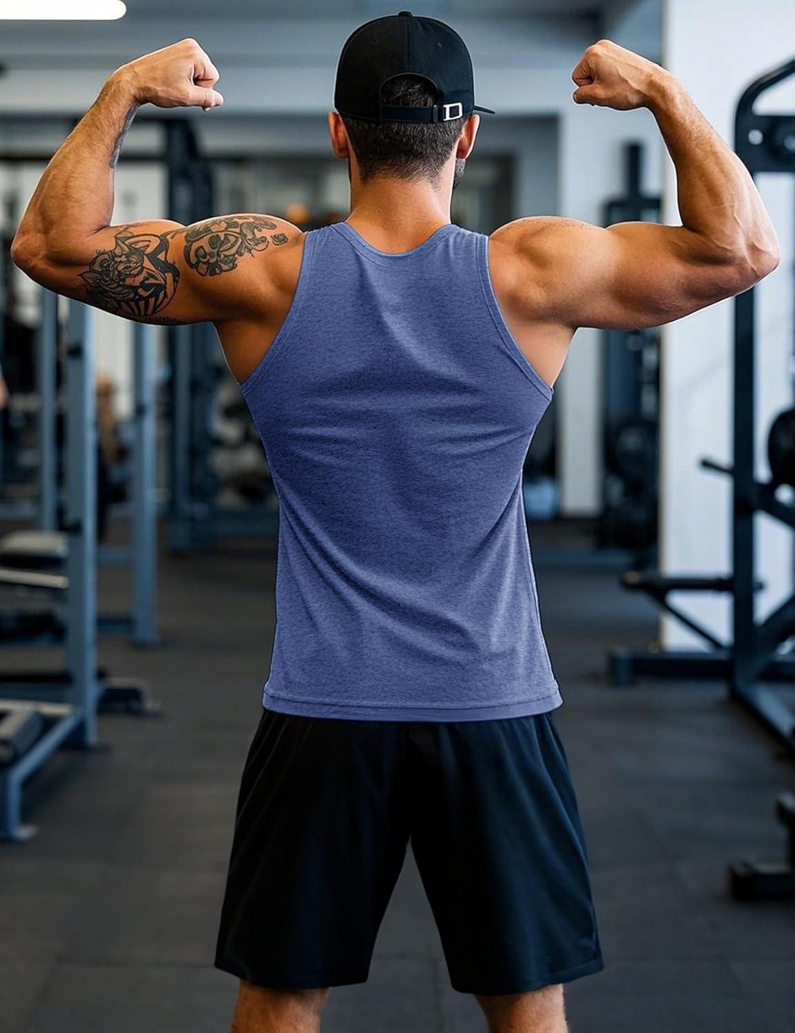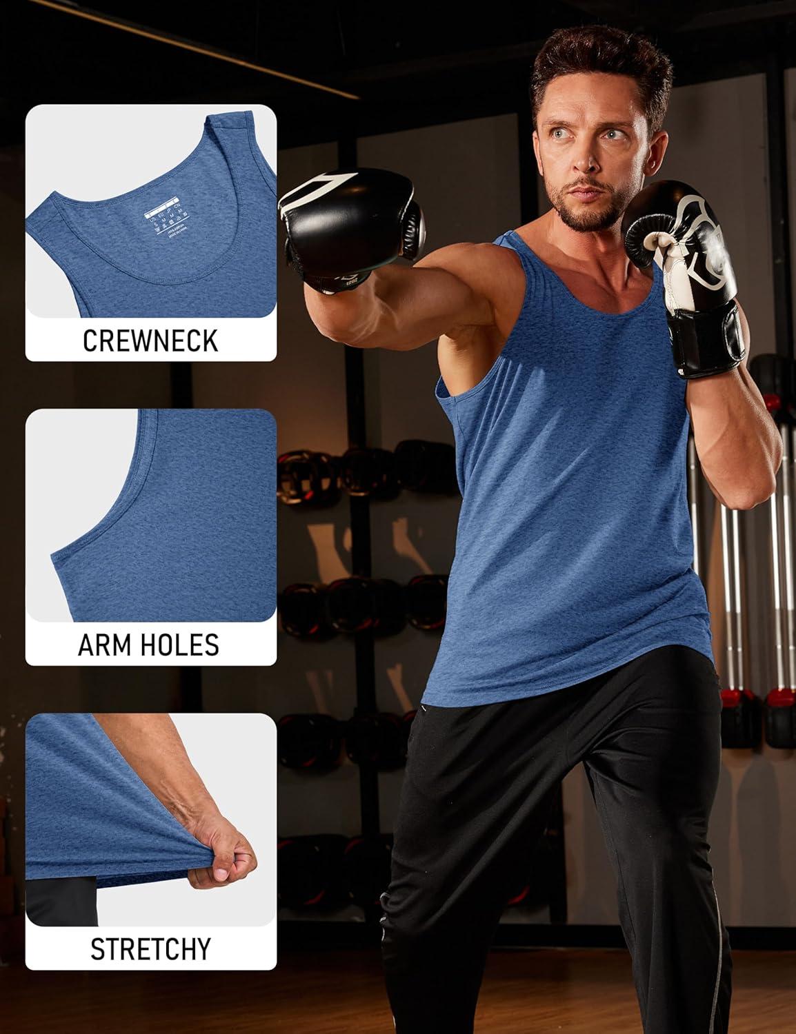 MAGCOMSEN Mens Workout Tank Tops Undershirt Cotton Muscle Athletic Sleeveless Shirts for Gym(#23-color Blue)