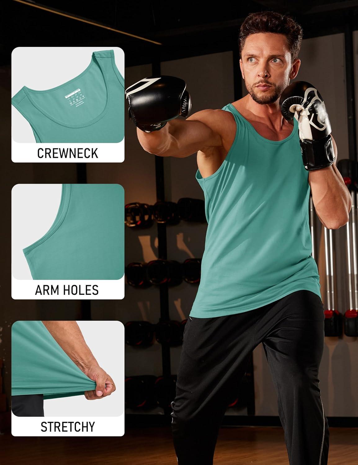 MAGCOMSEN Mens Workout Tank Tops Undershirt Cotton Muscle Athletic Sleeveless Shirts for Gym(#20-dark Green)