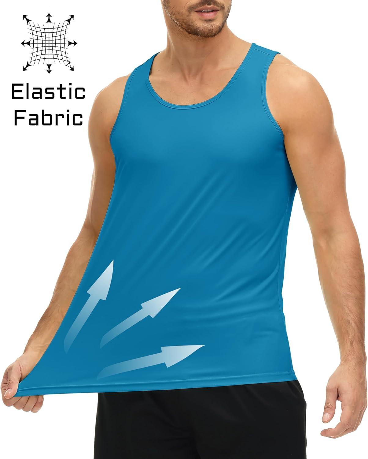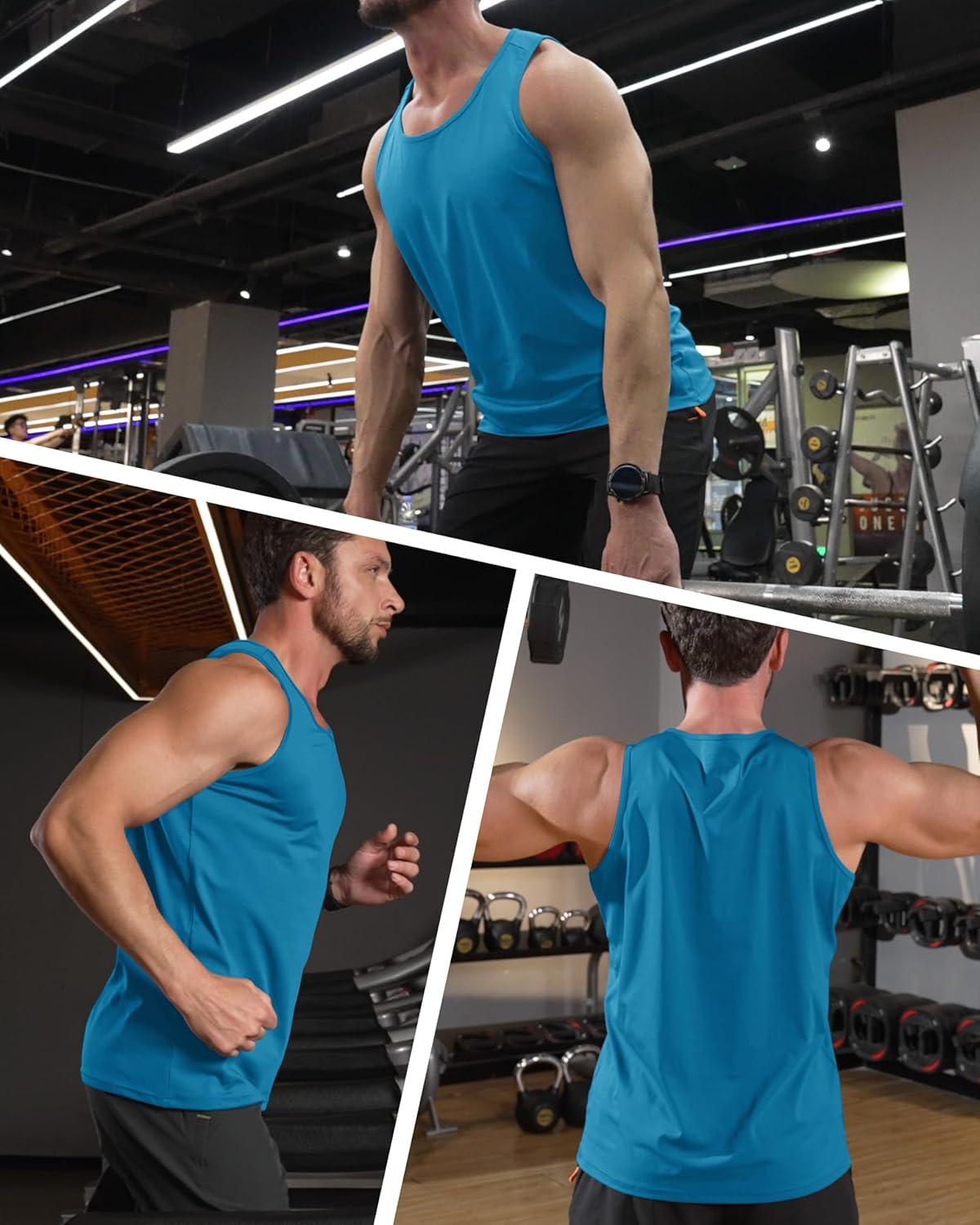 MAGCOMSEN Mens Workout Tank Tops Undershirt Cotton Muscle Athletic Sleeveless Shirts for Gym(Waterfall Blue)